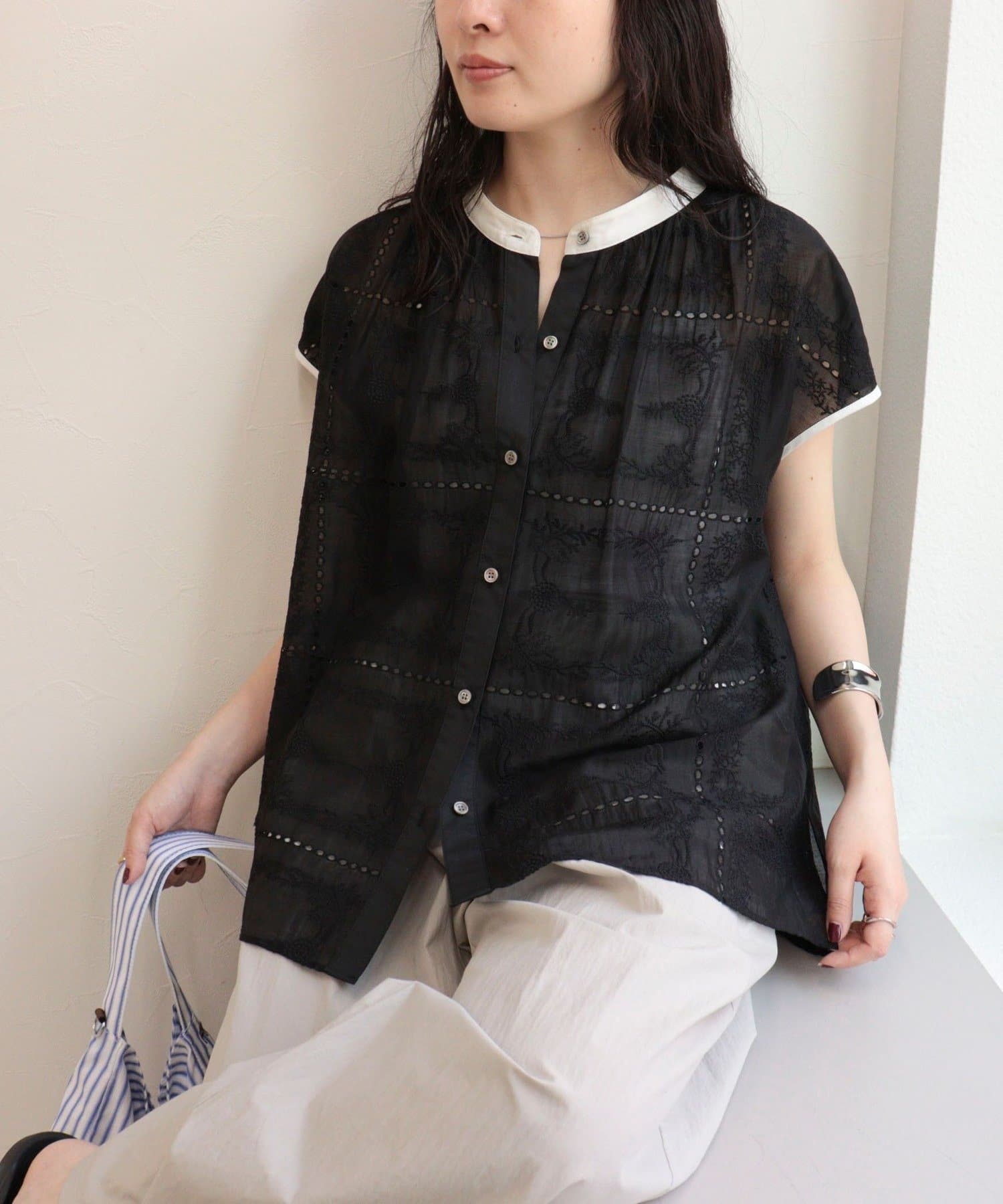 TOP > FREDY & GLOSTER > レディース > トップス > シャツ/ブラウス(ボタン) > 刺しゅうレースフレンチスリーブブラウス