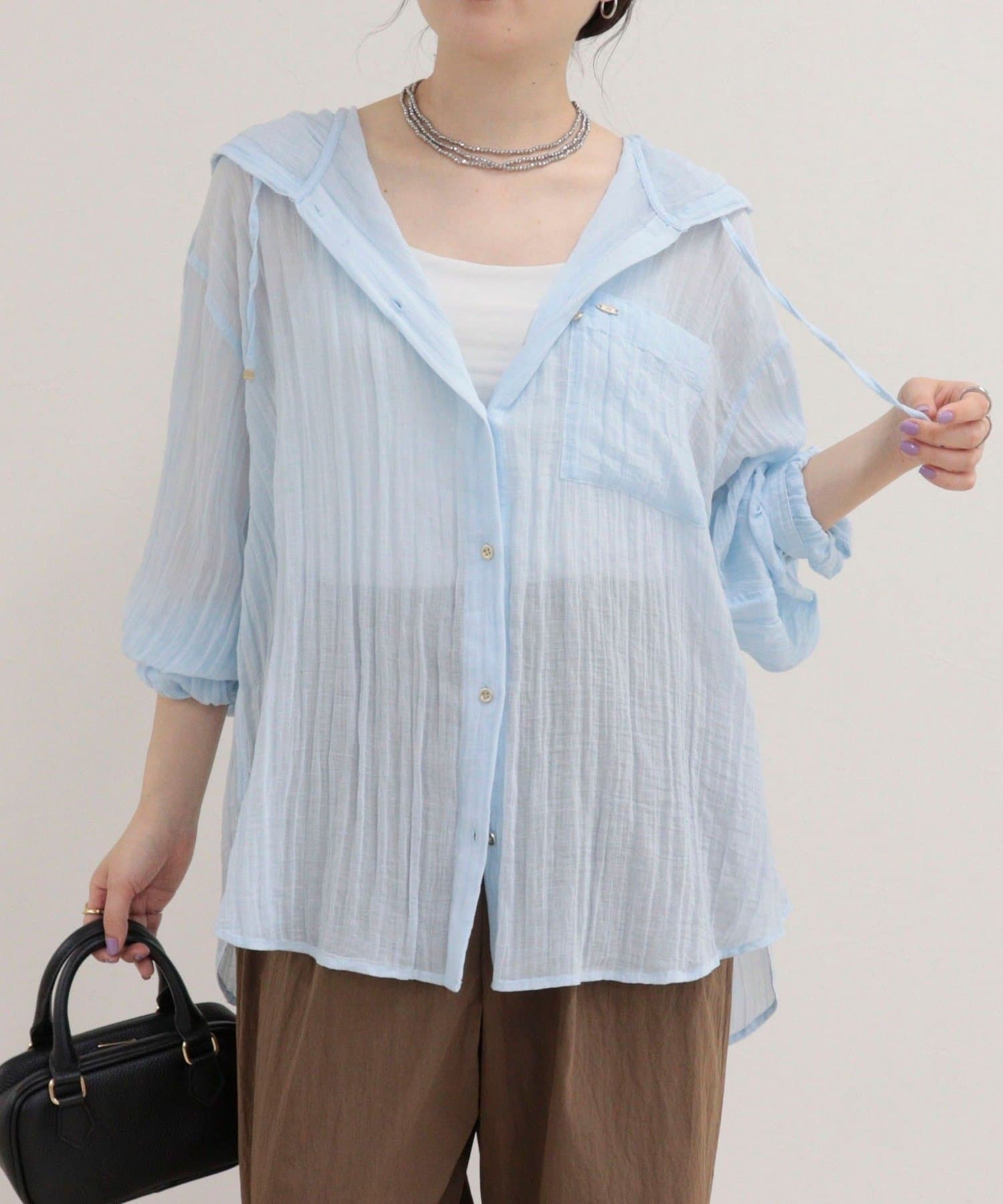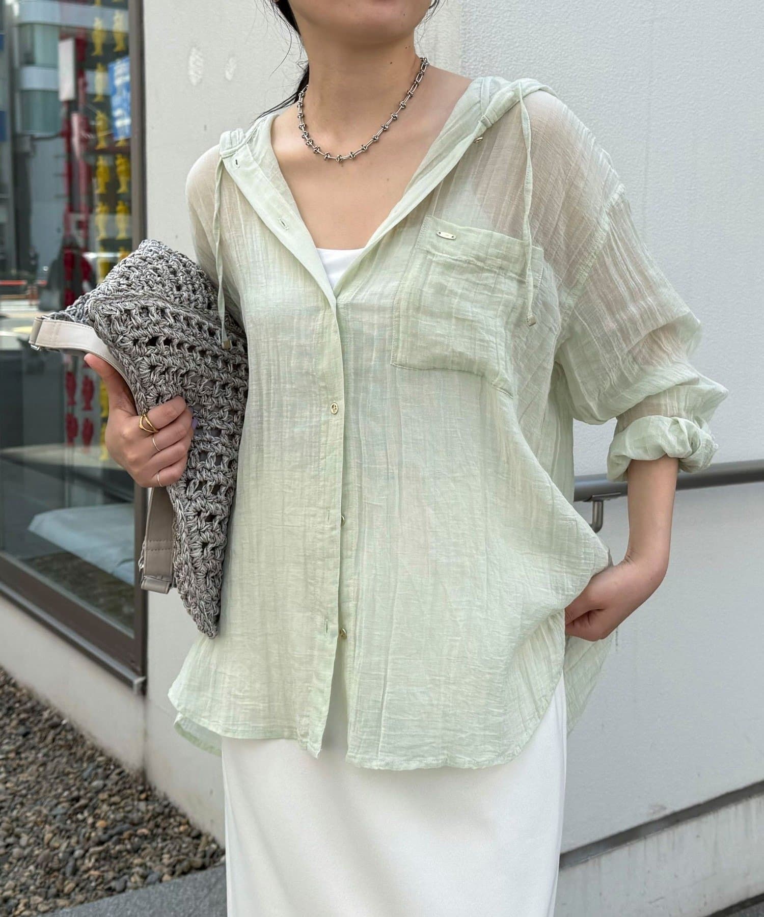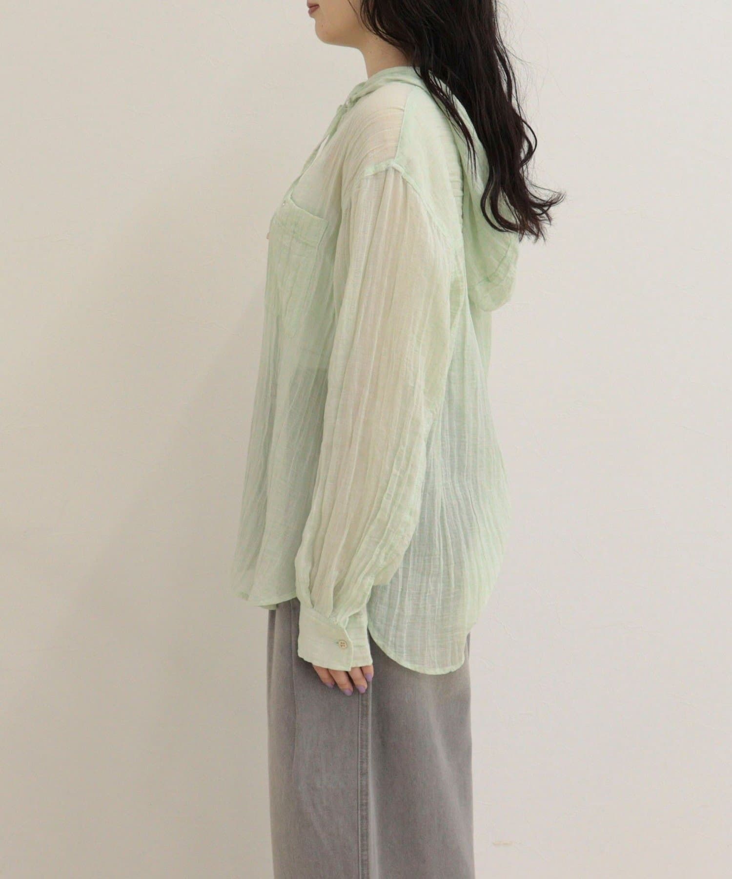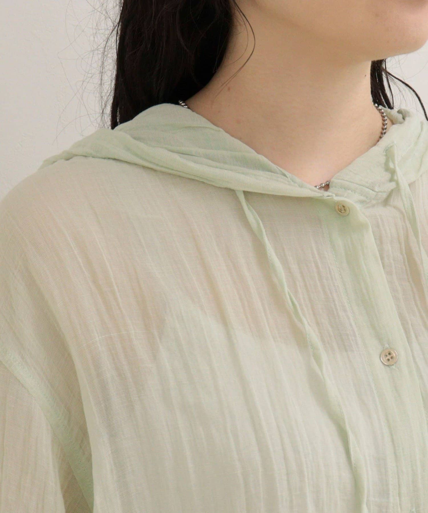 ・リネン混の楊柳素材を使用した軽やかな着心地のフーディーシャツ