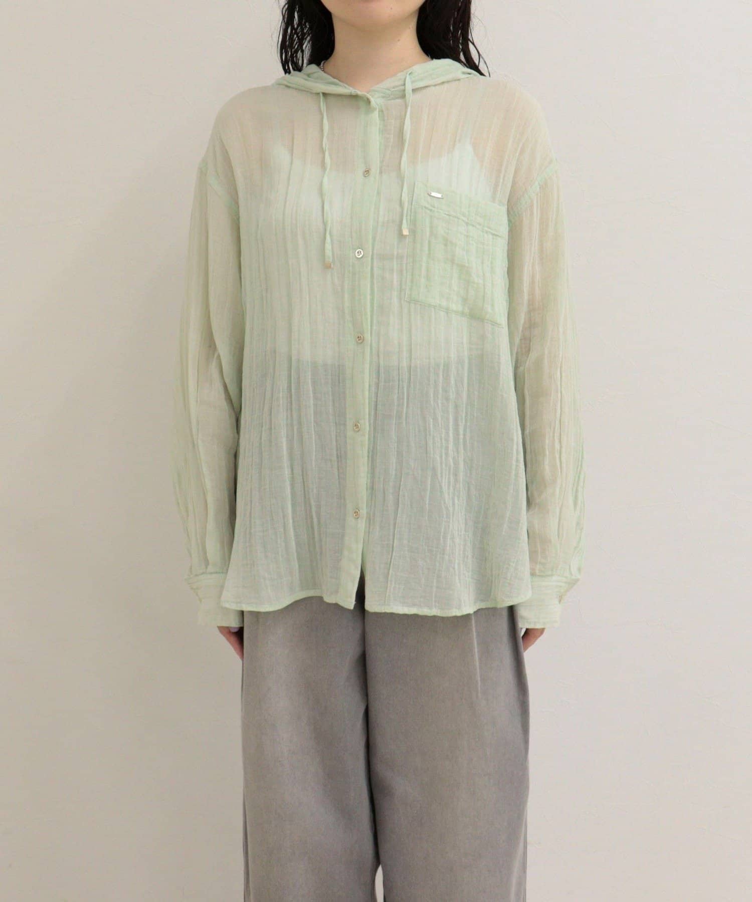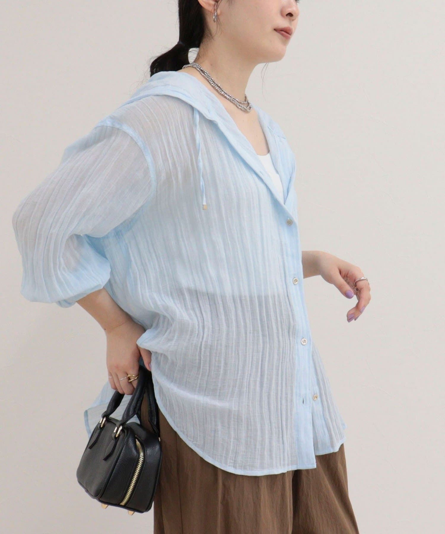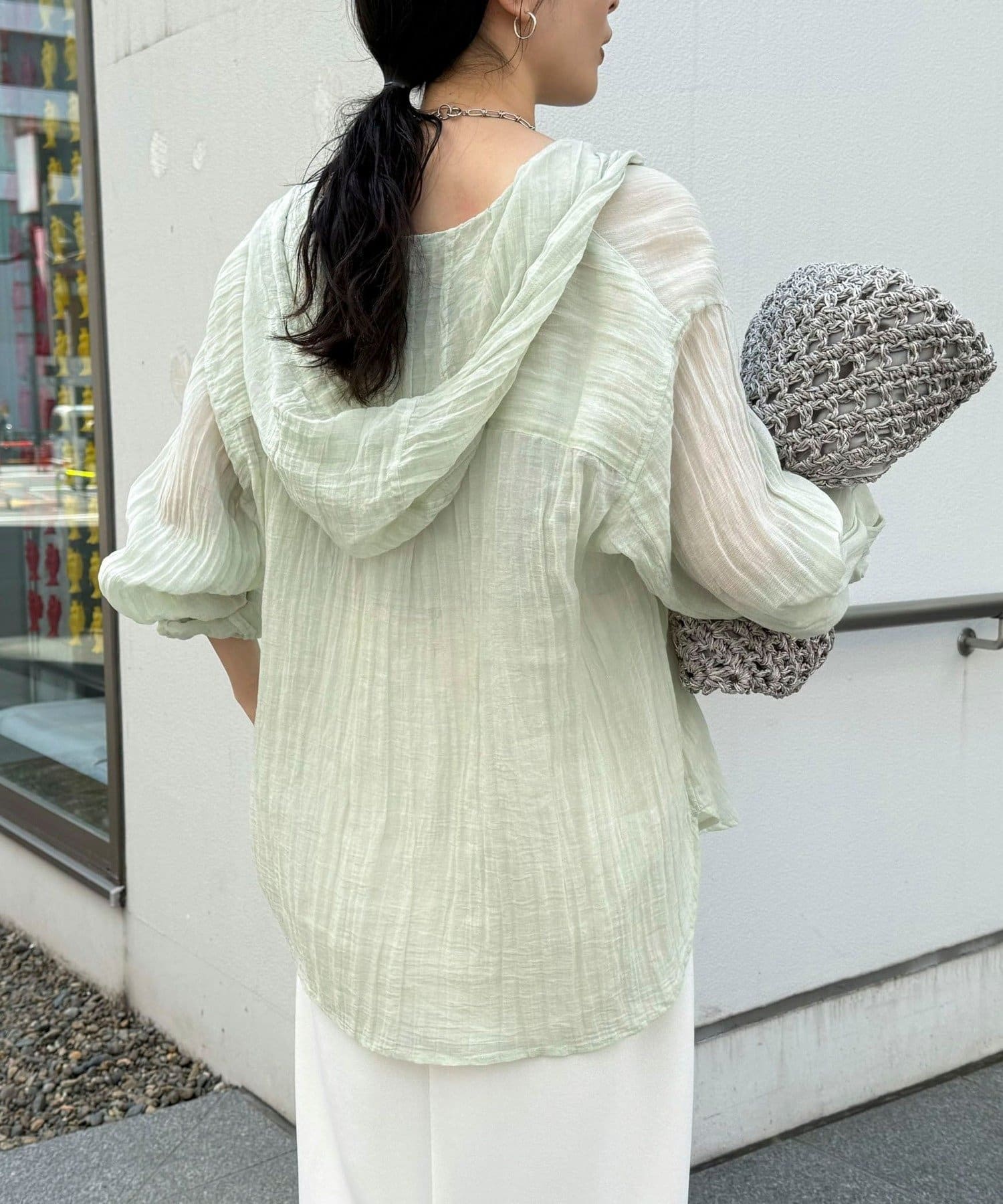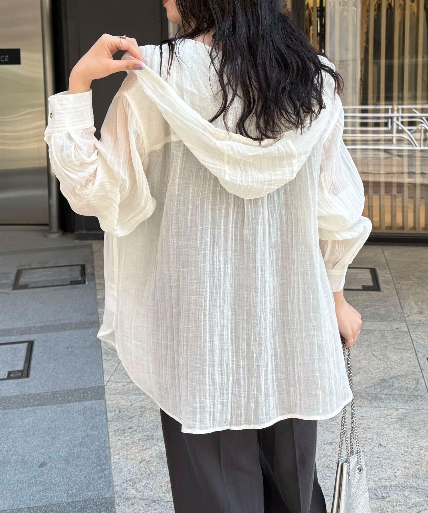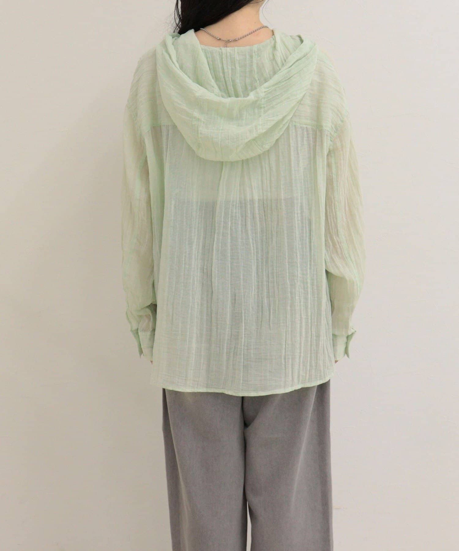 ・リネン混の楊柳素材を使用した軽やかな着心地のフーディーシャツ