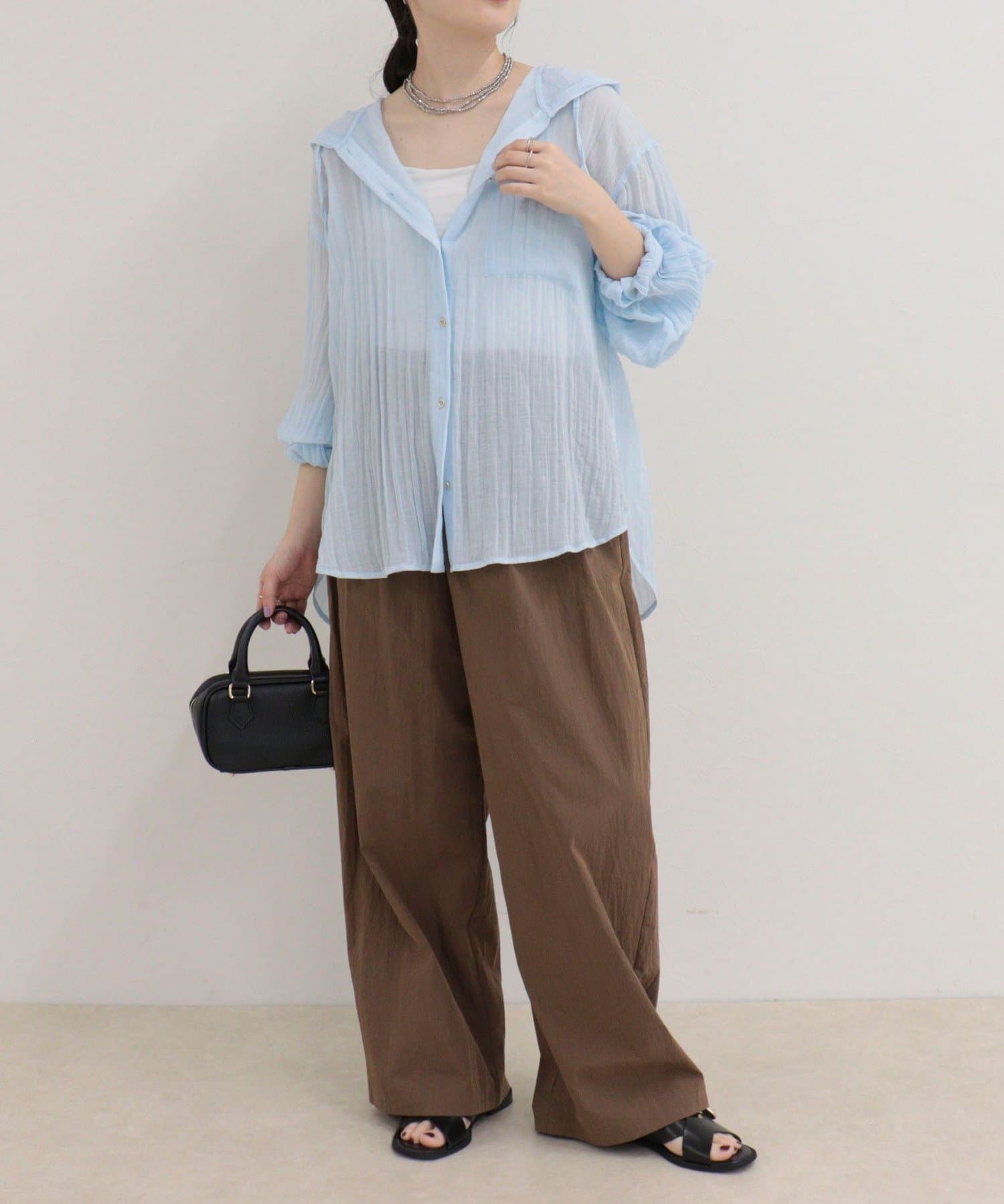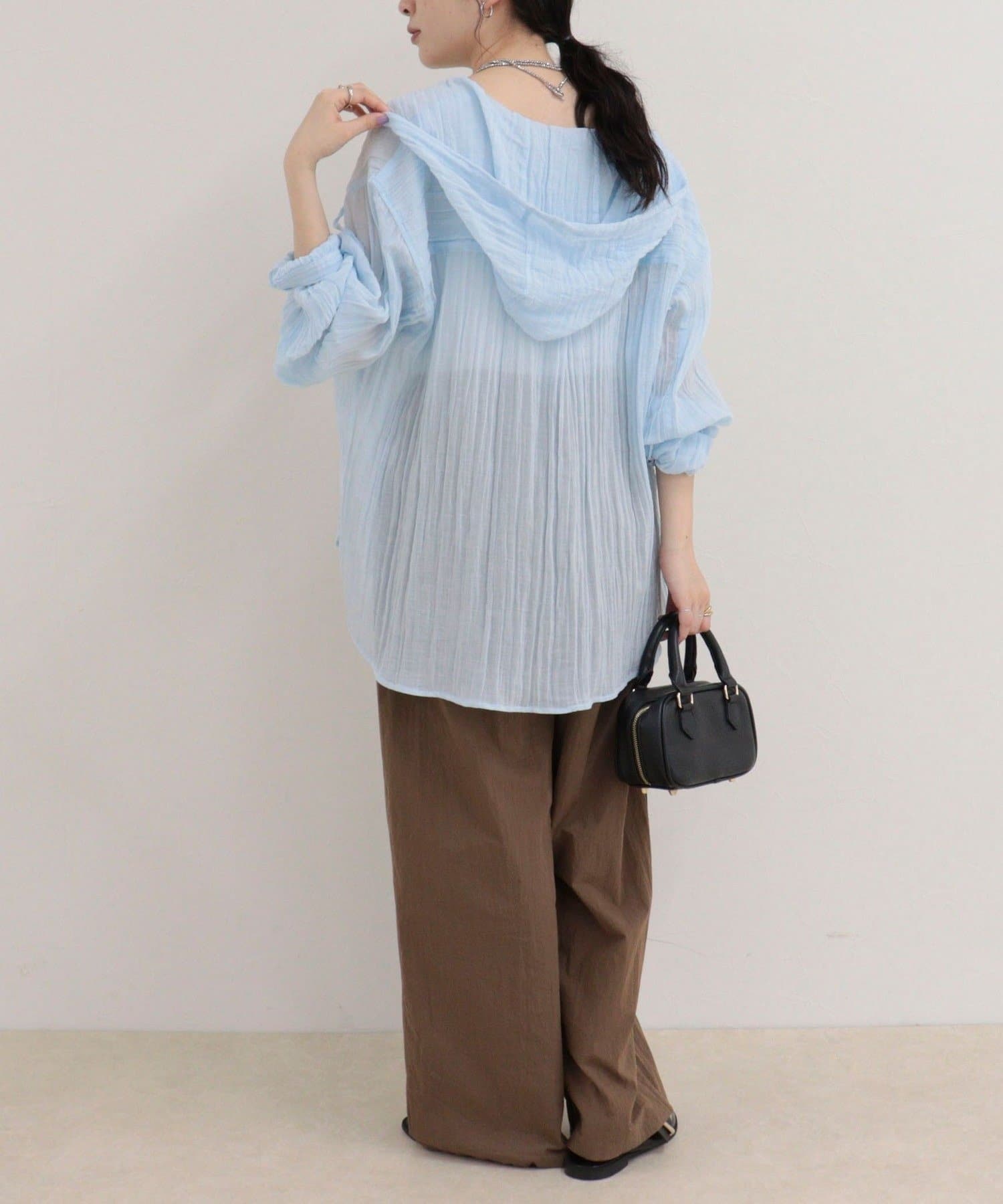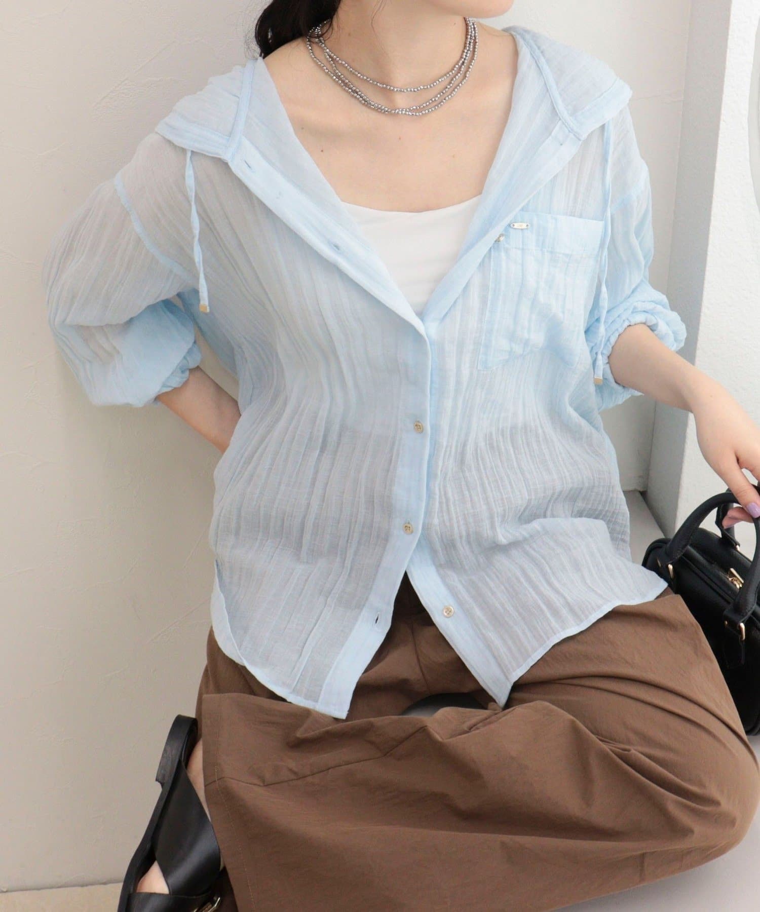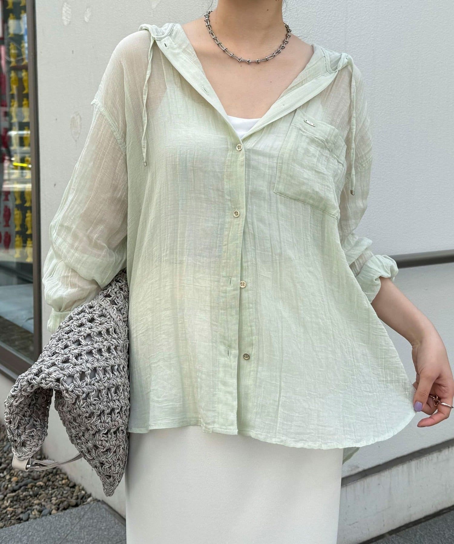 ・リネン混の楊柳素材を使用した軽やかな着心地のフーディーシャツ