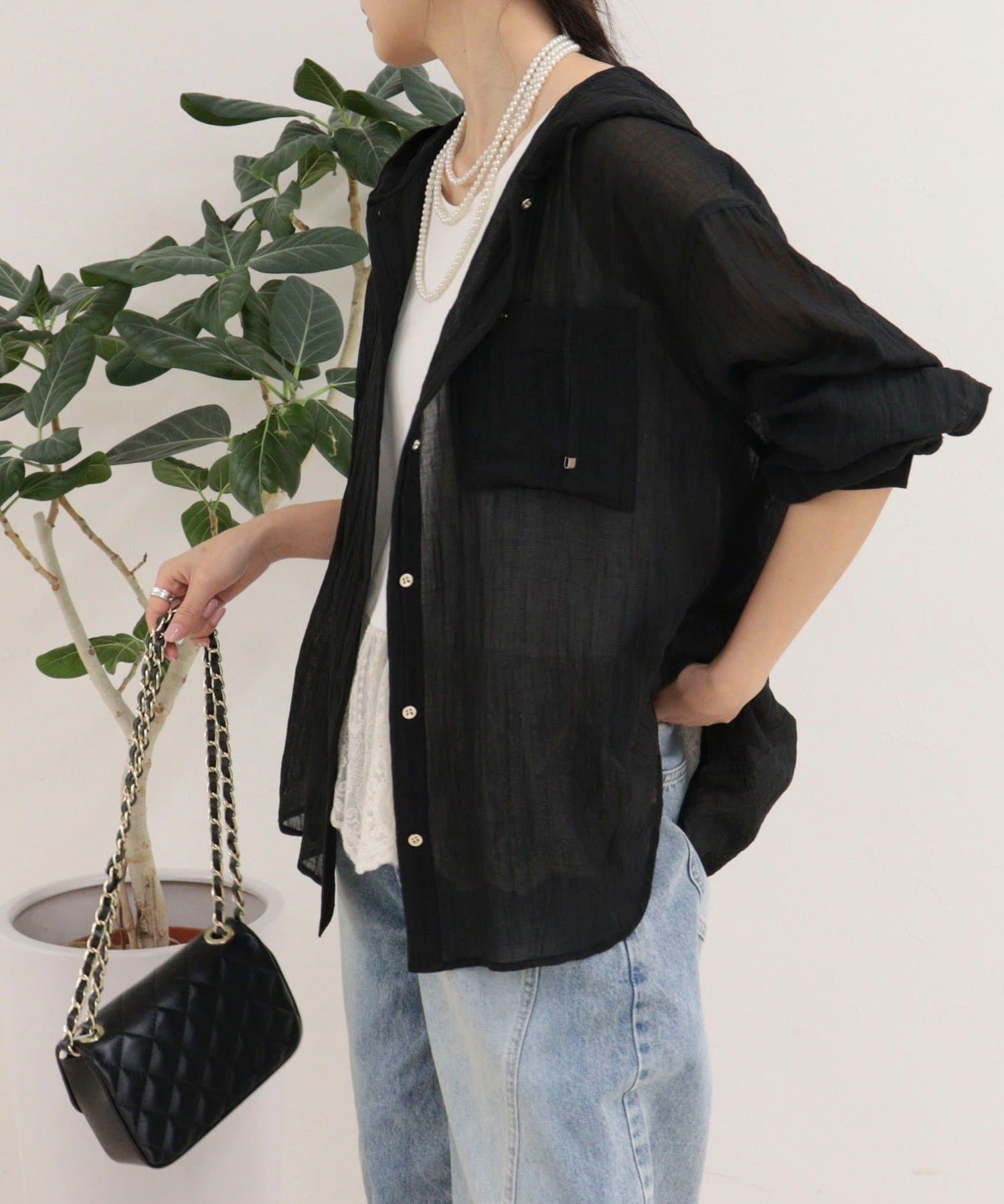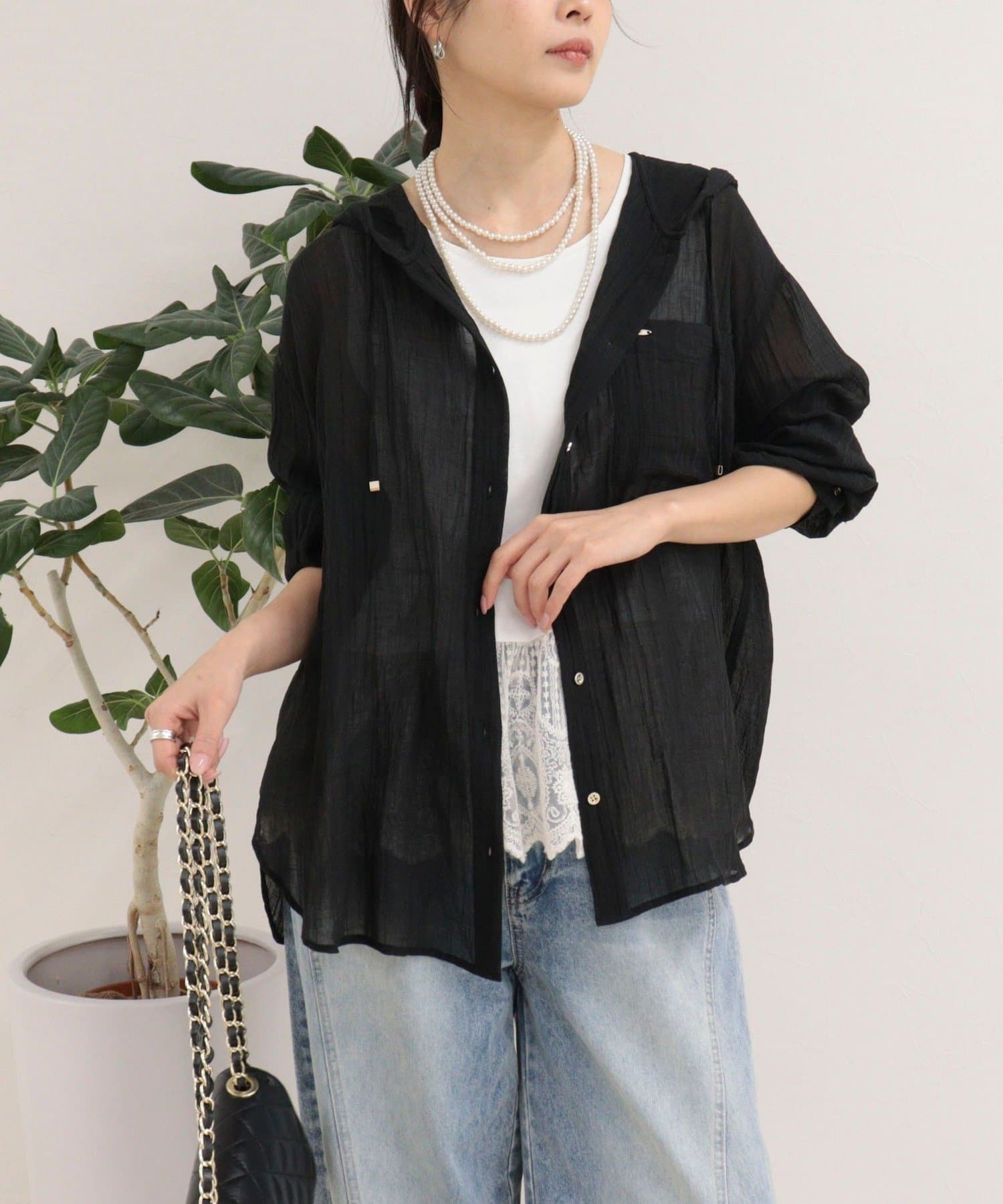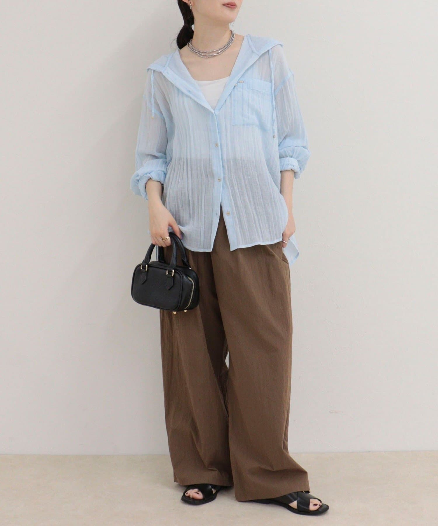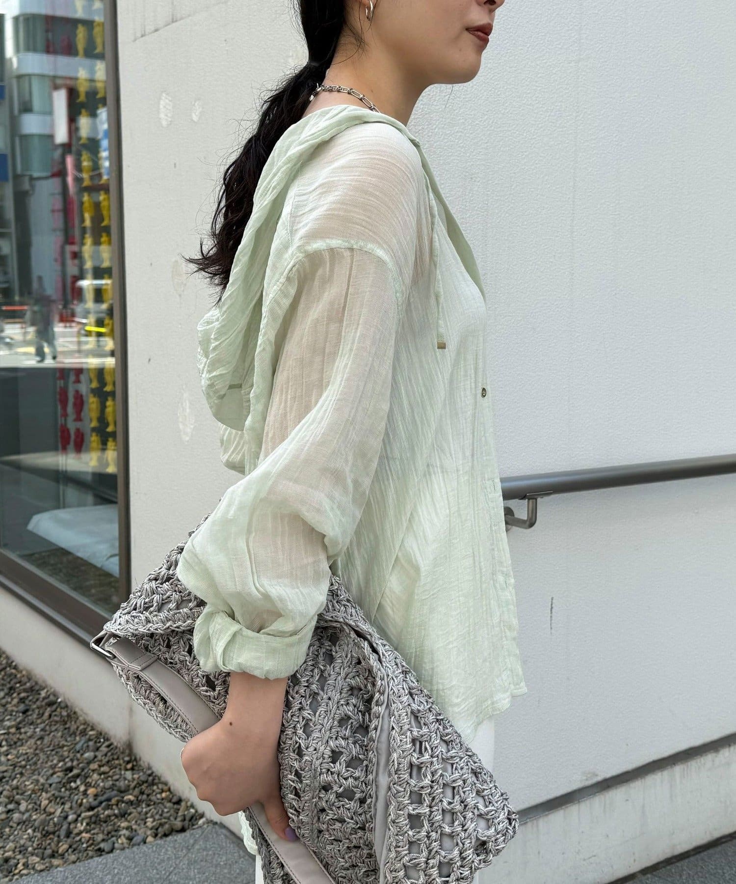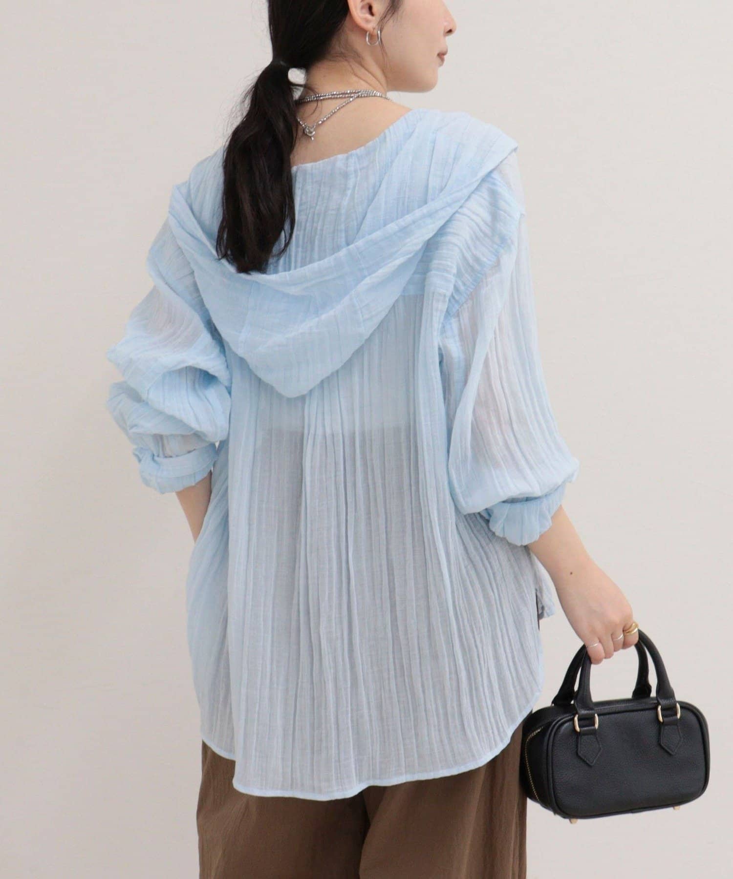 ・リネン混の楊柳素材を使用した軽やかな着心地のフーディーシャツ
