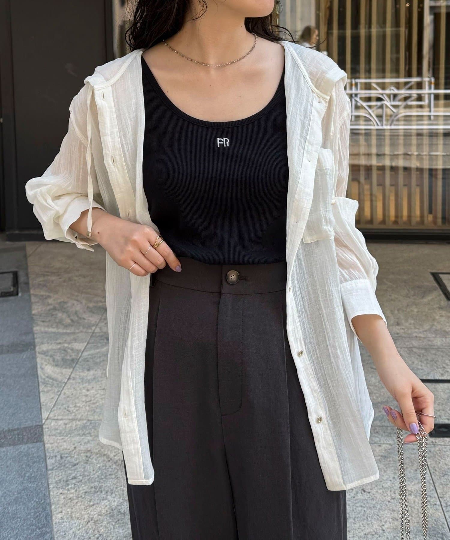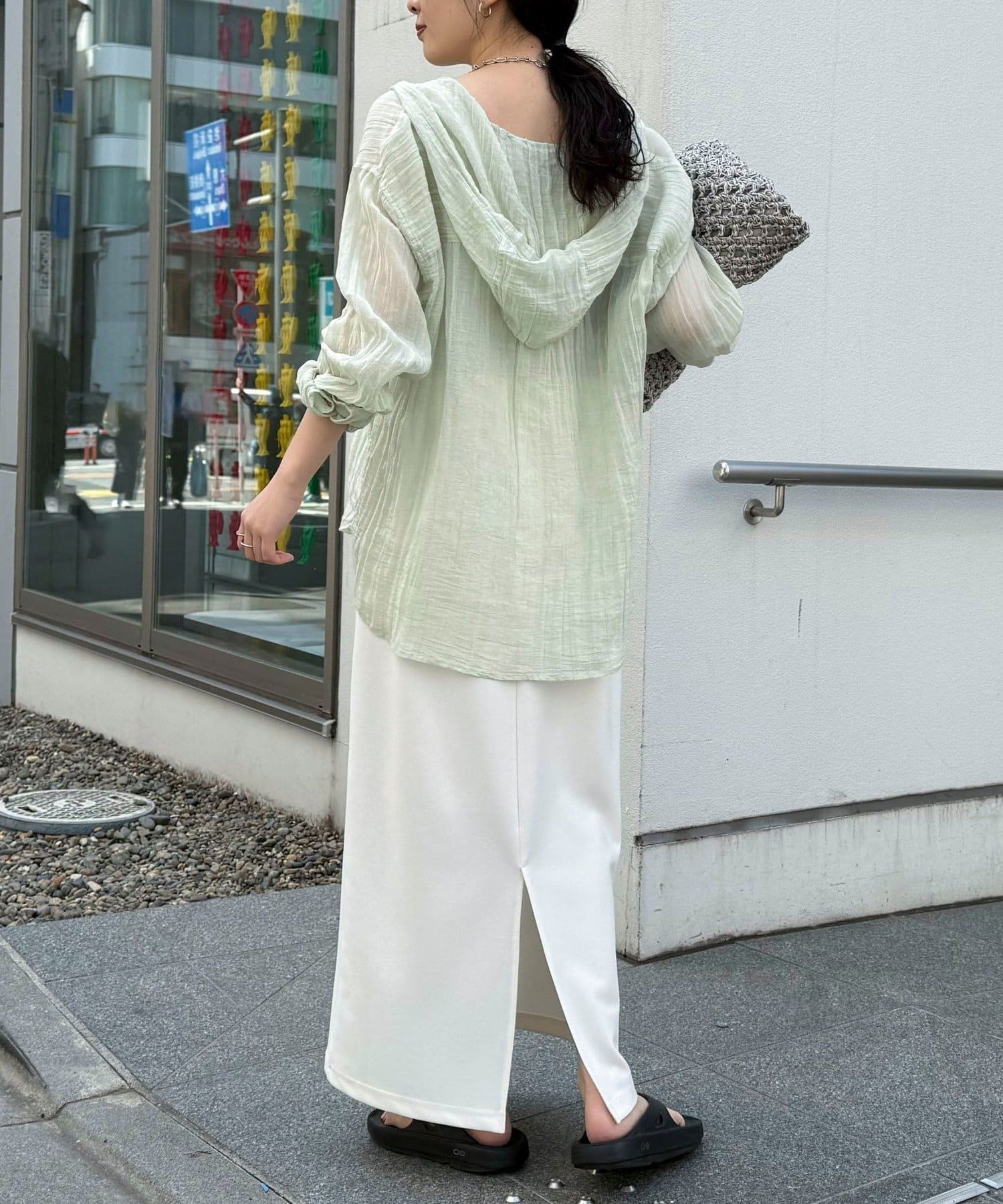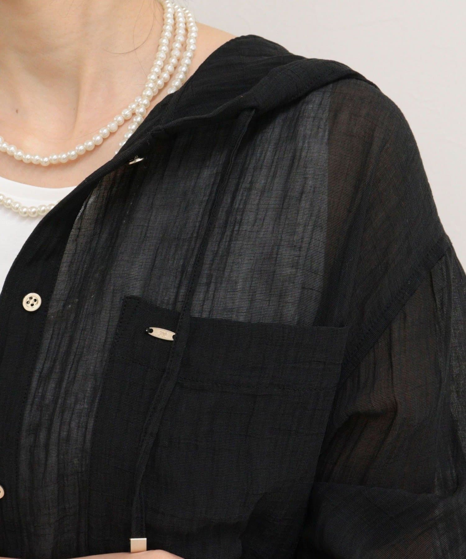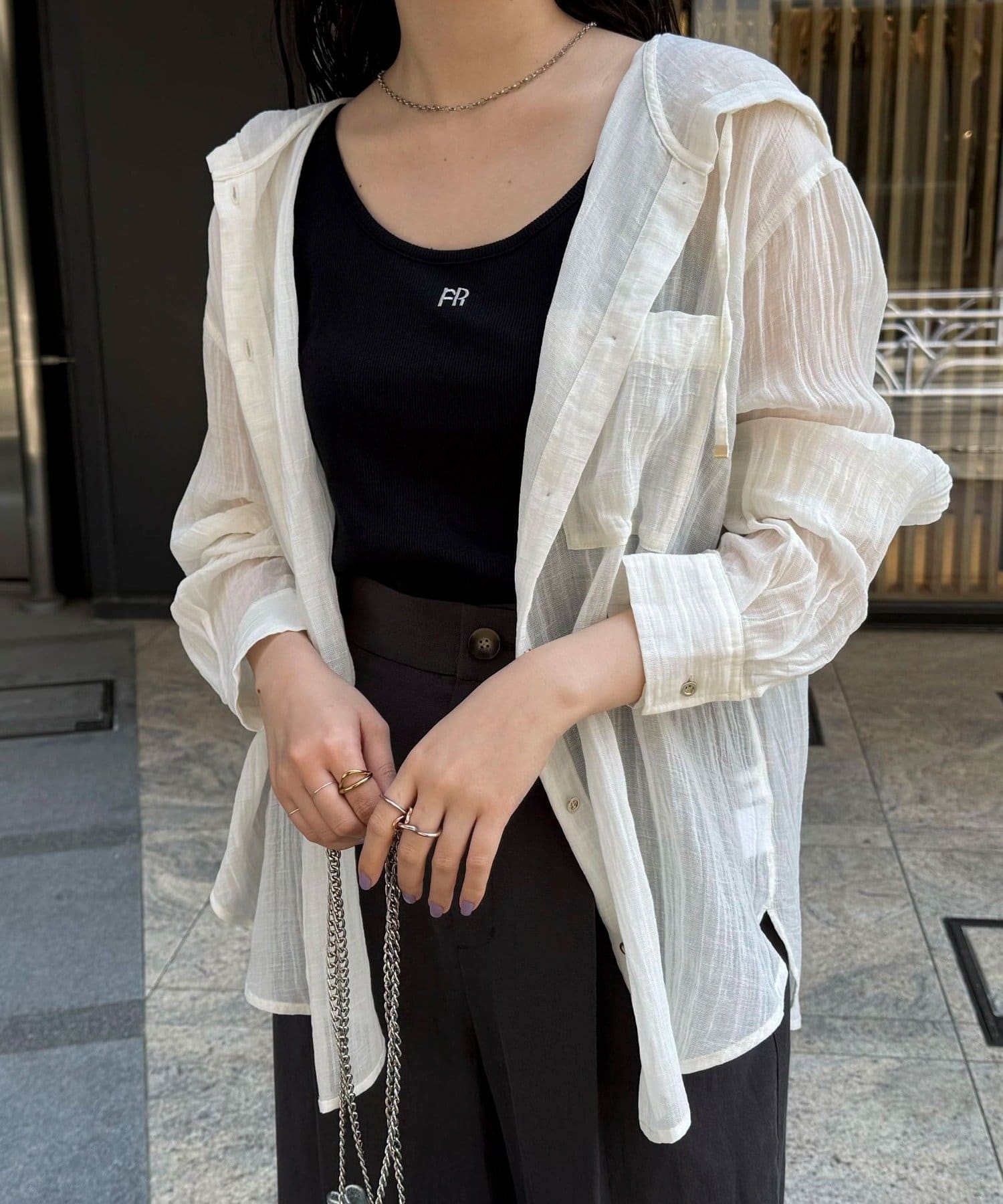 ・リネン混の楊柳素材を使用した軽やかな着心地のフーディーシャツ