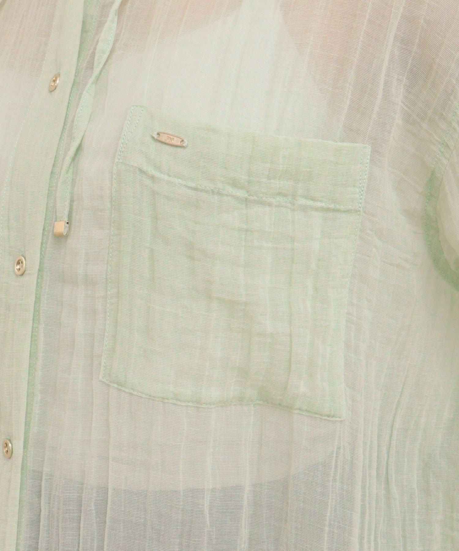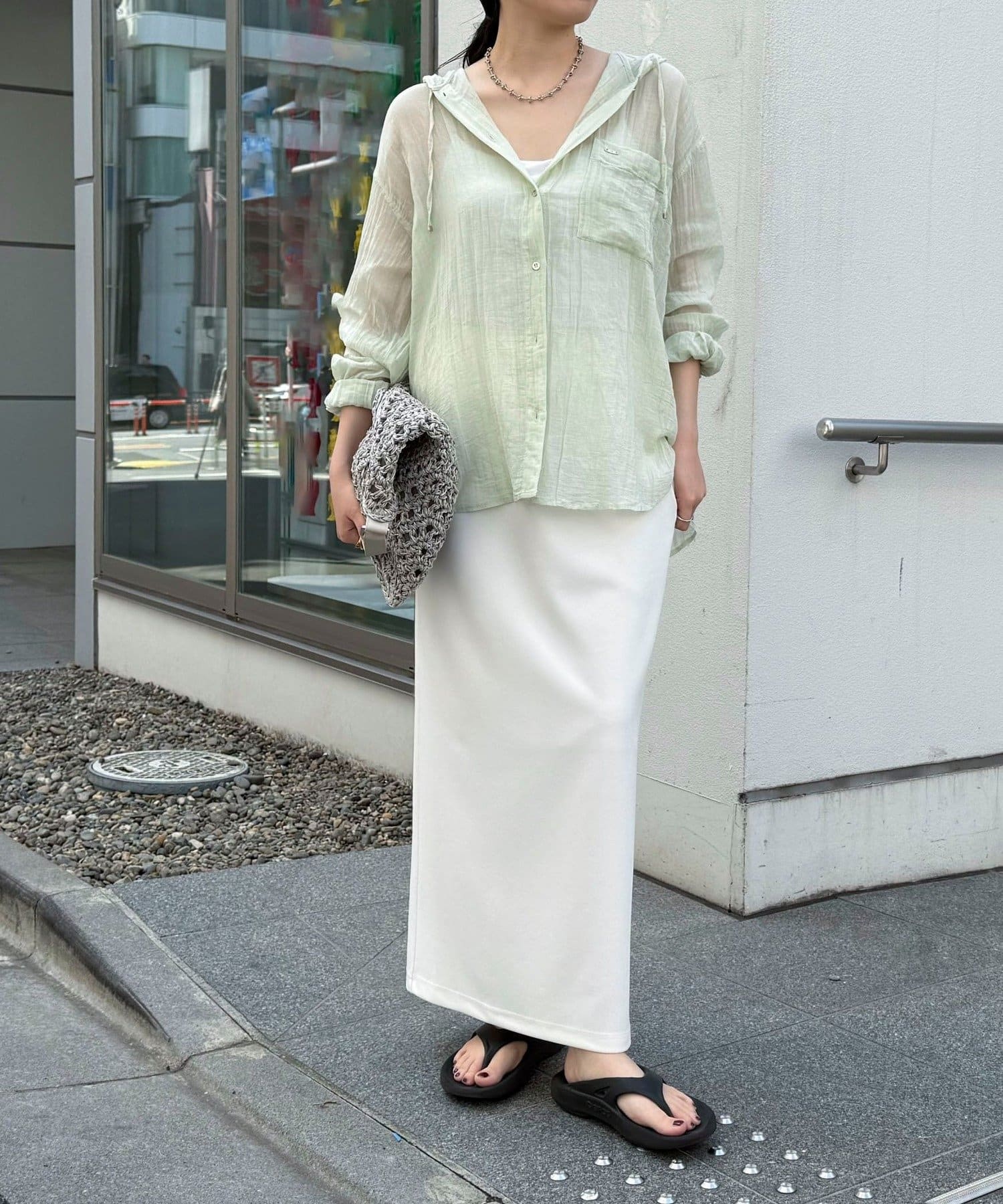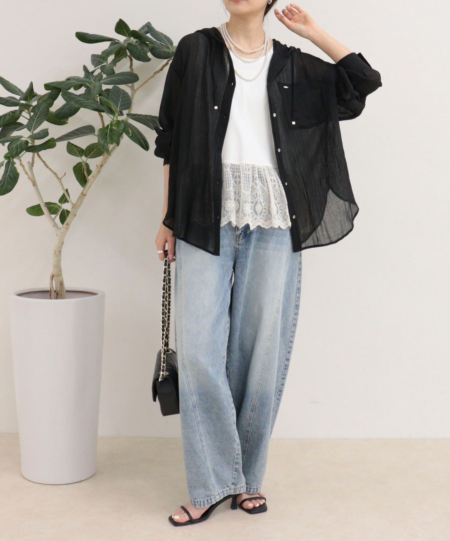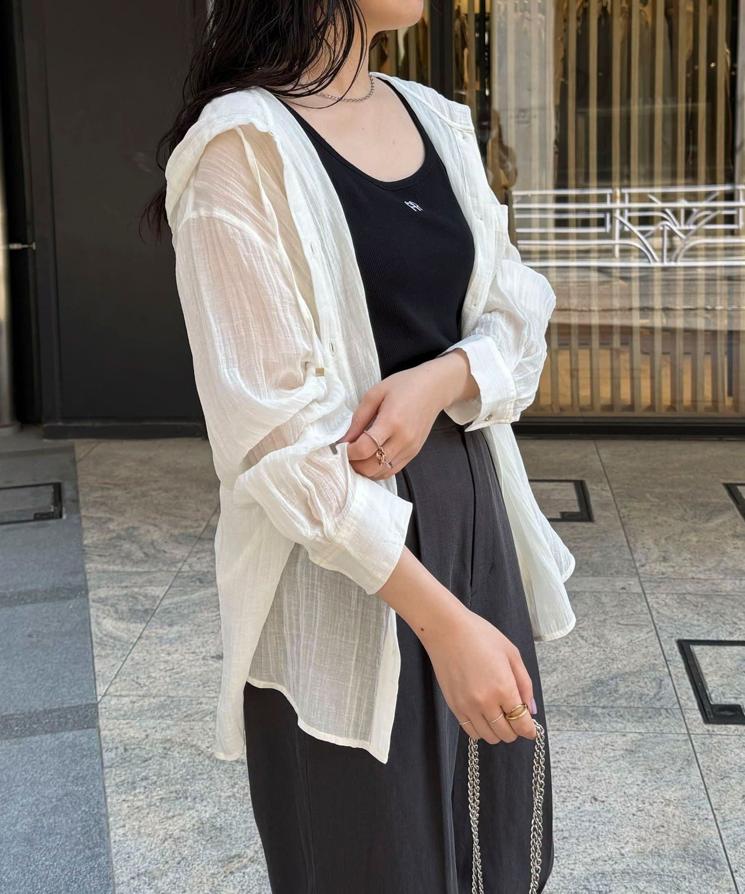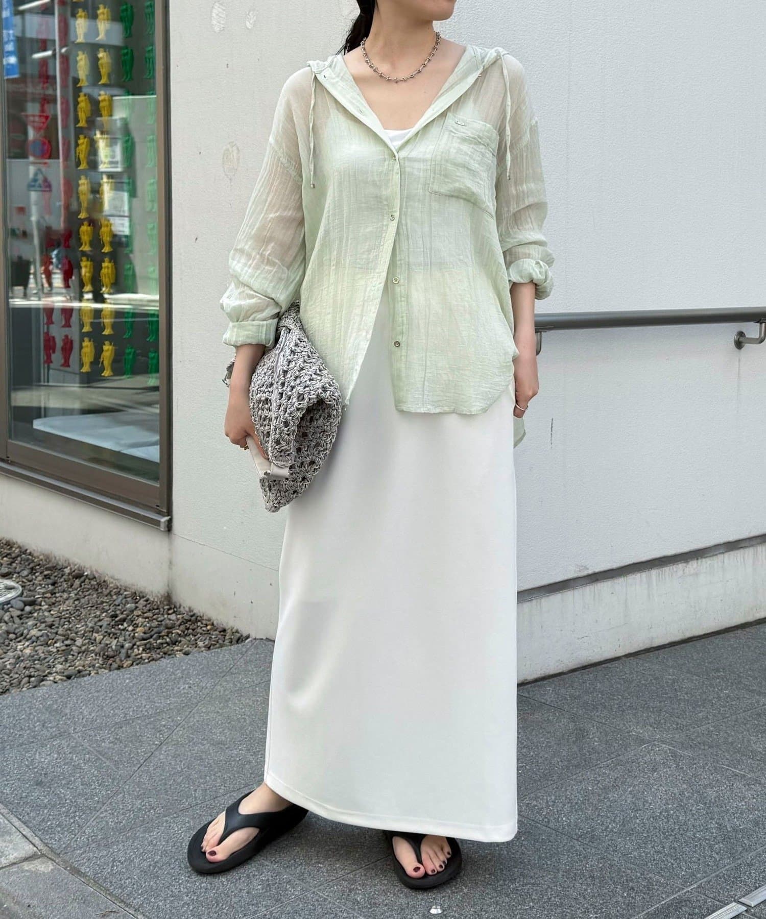 ・リネン混の楊柳素材を使用した軽やかな着心地のフーディーシャツ