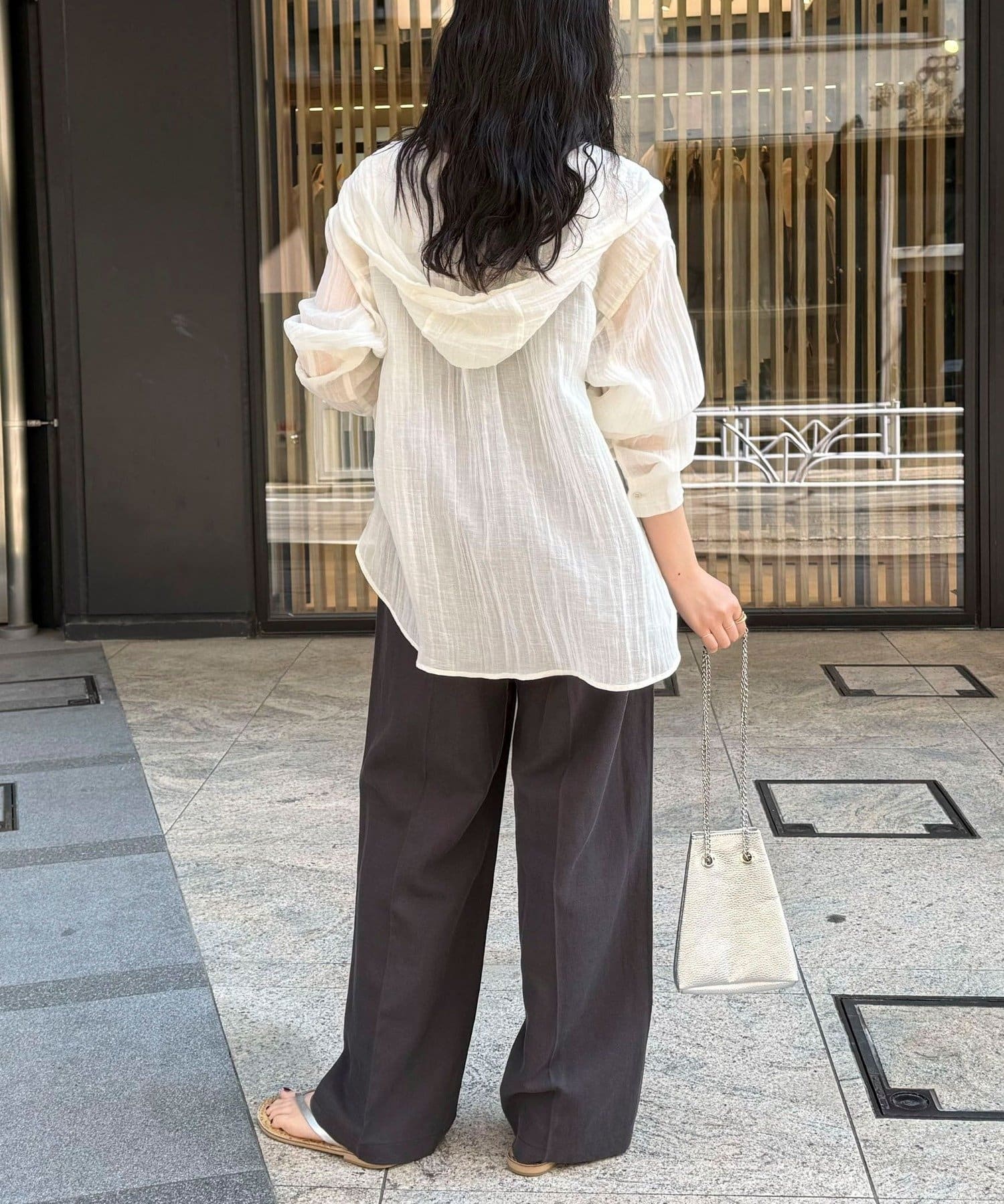 ・フード付きデザインが程よいカジュアルさを加えつつ、抜け感のある印象に