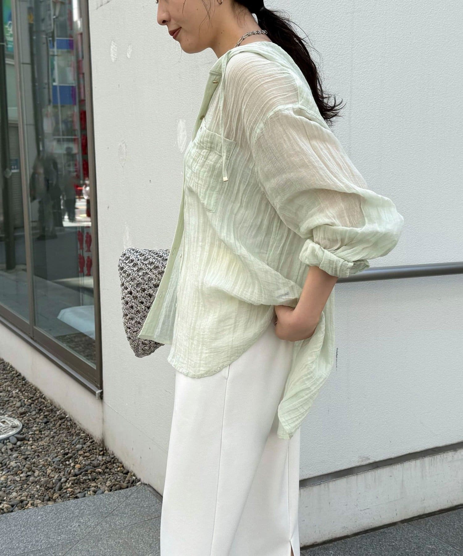 【6-0021-5-21-044】リネン混楊柳バンドカラーシャツ
