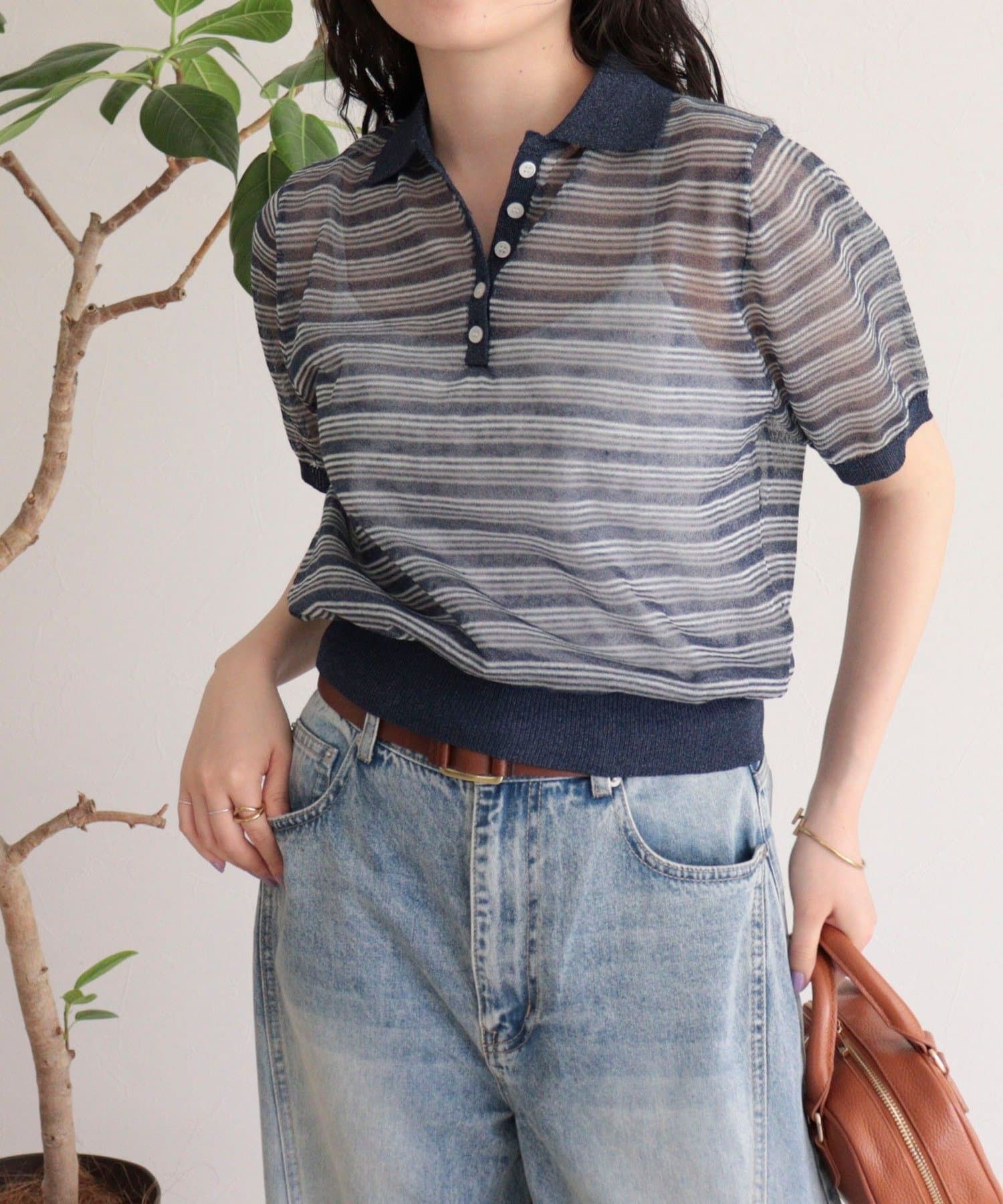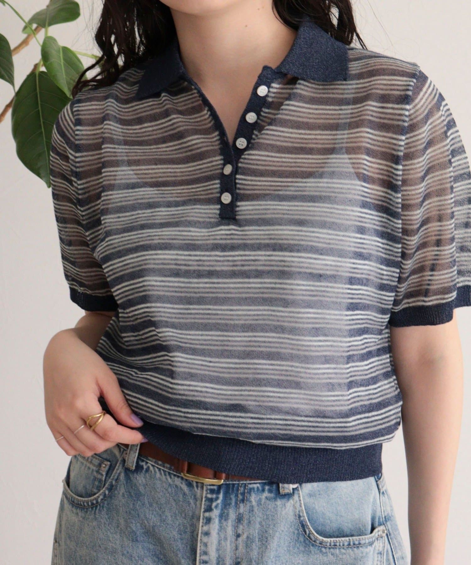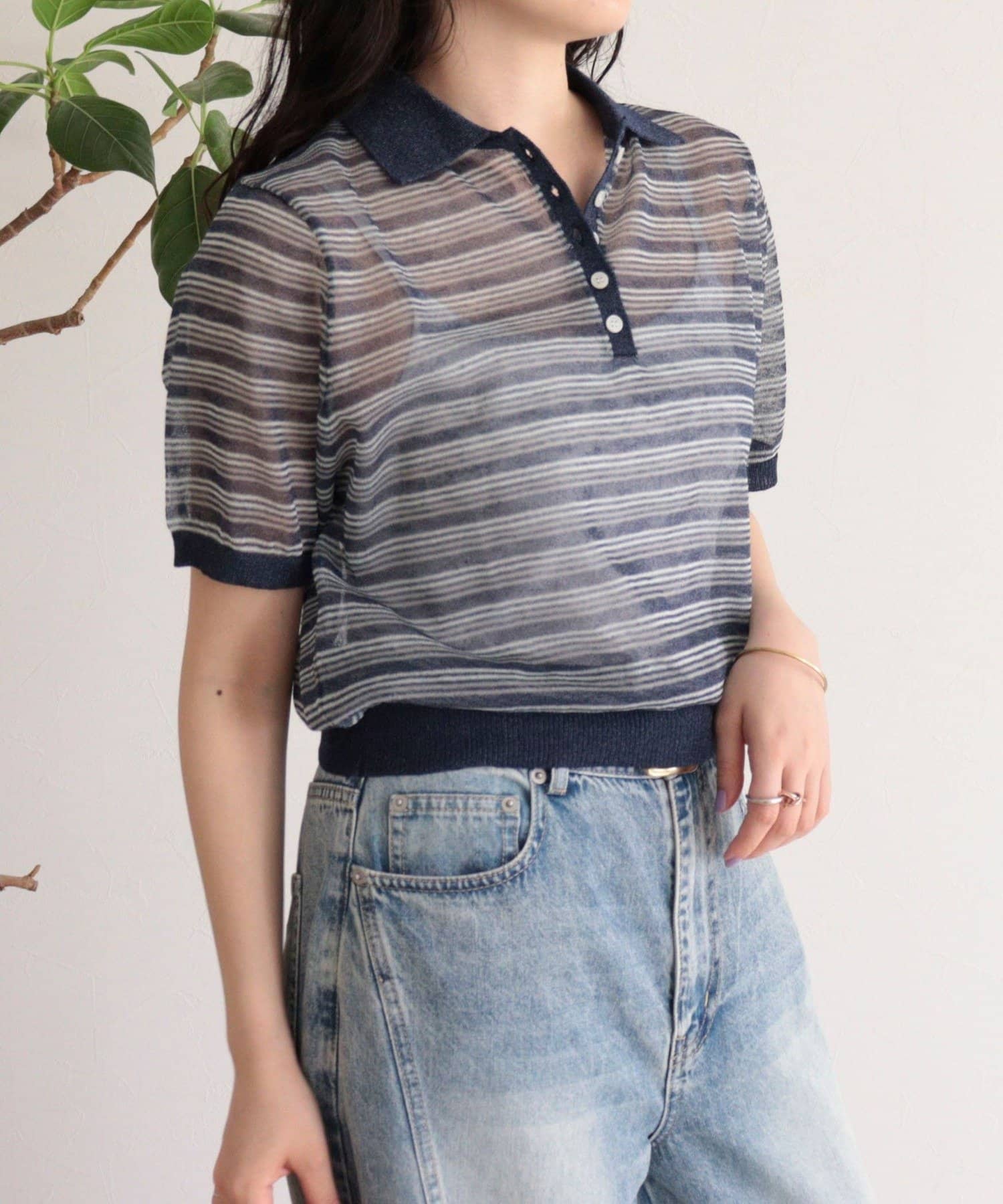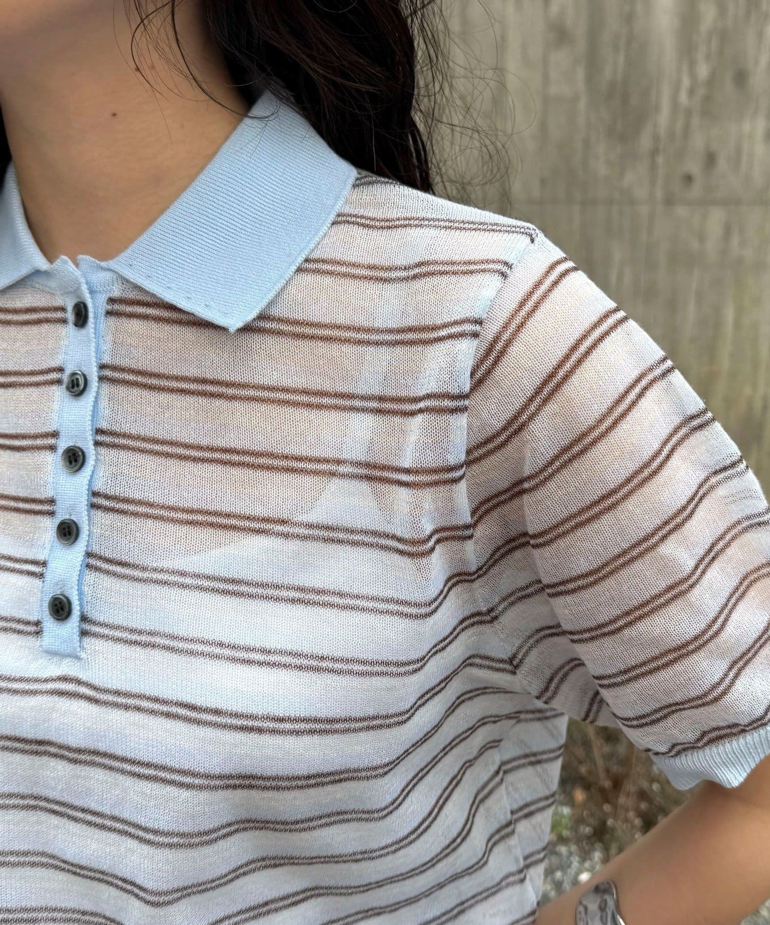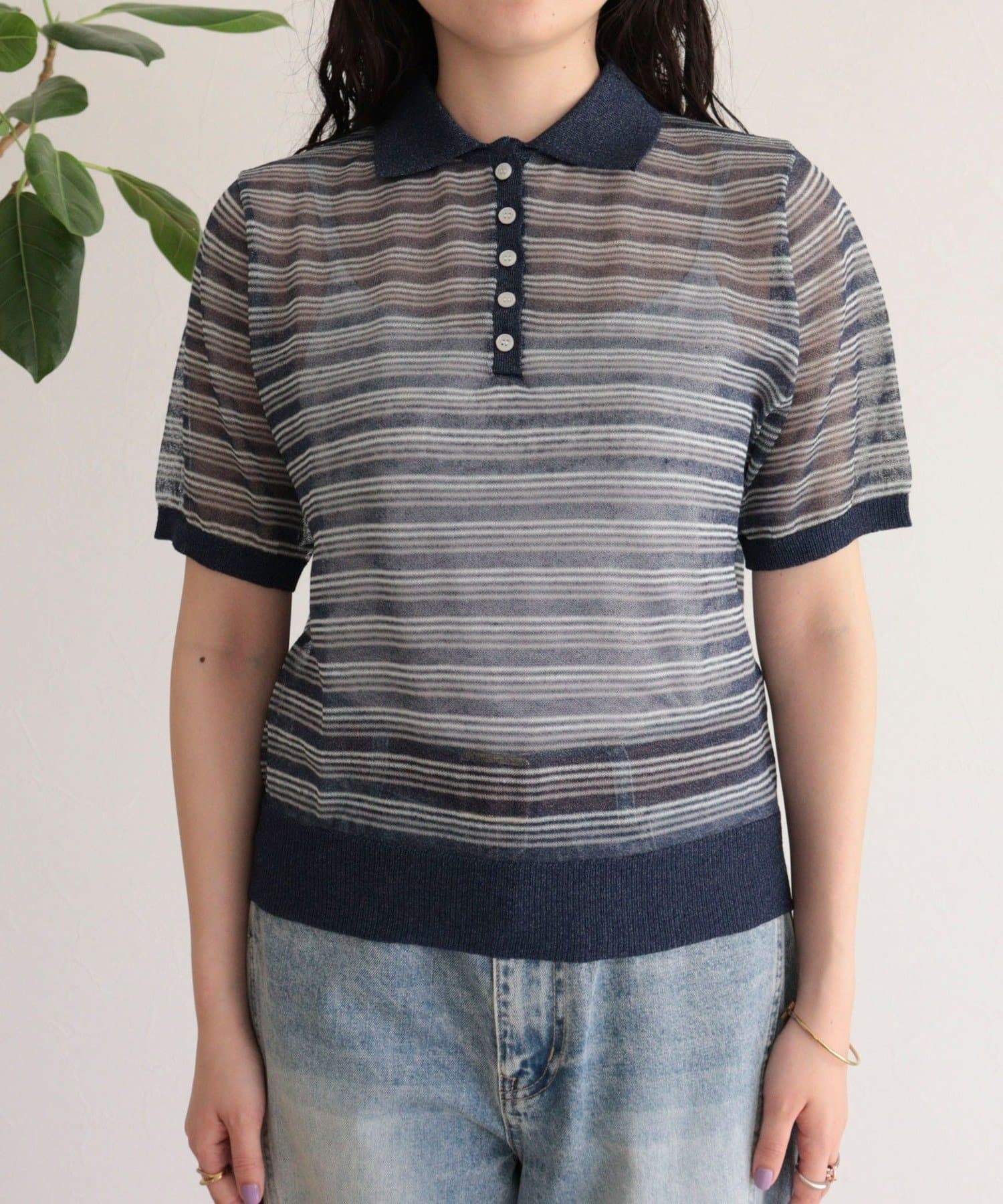 TOP > FREDY & GLOSTER > レディース > トップス > ニット/セーター > シアーボーダーポロニット