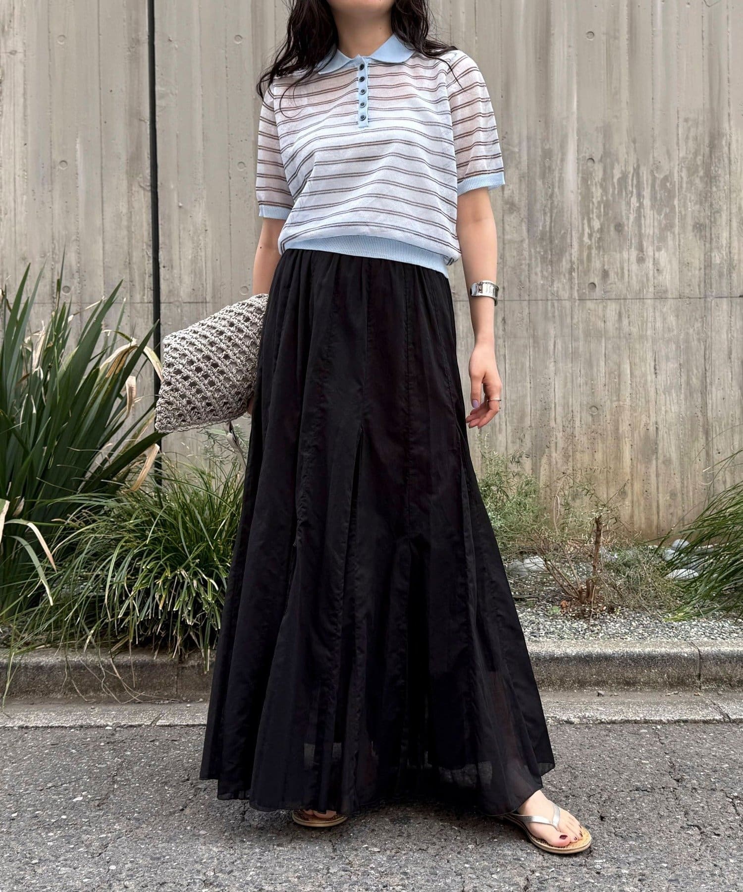 ・程よくハリ感のある、ほんのりラメ感を加えたシアー素材のポロニット