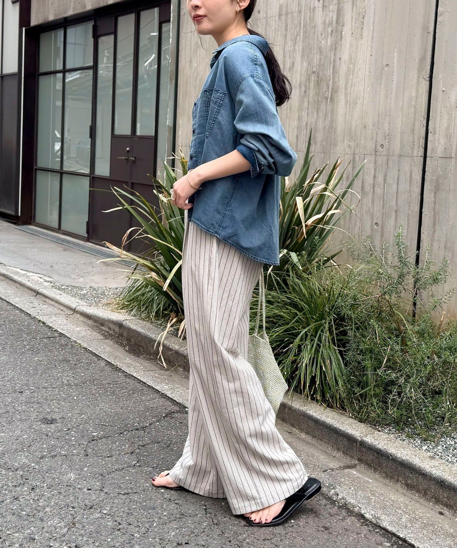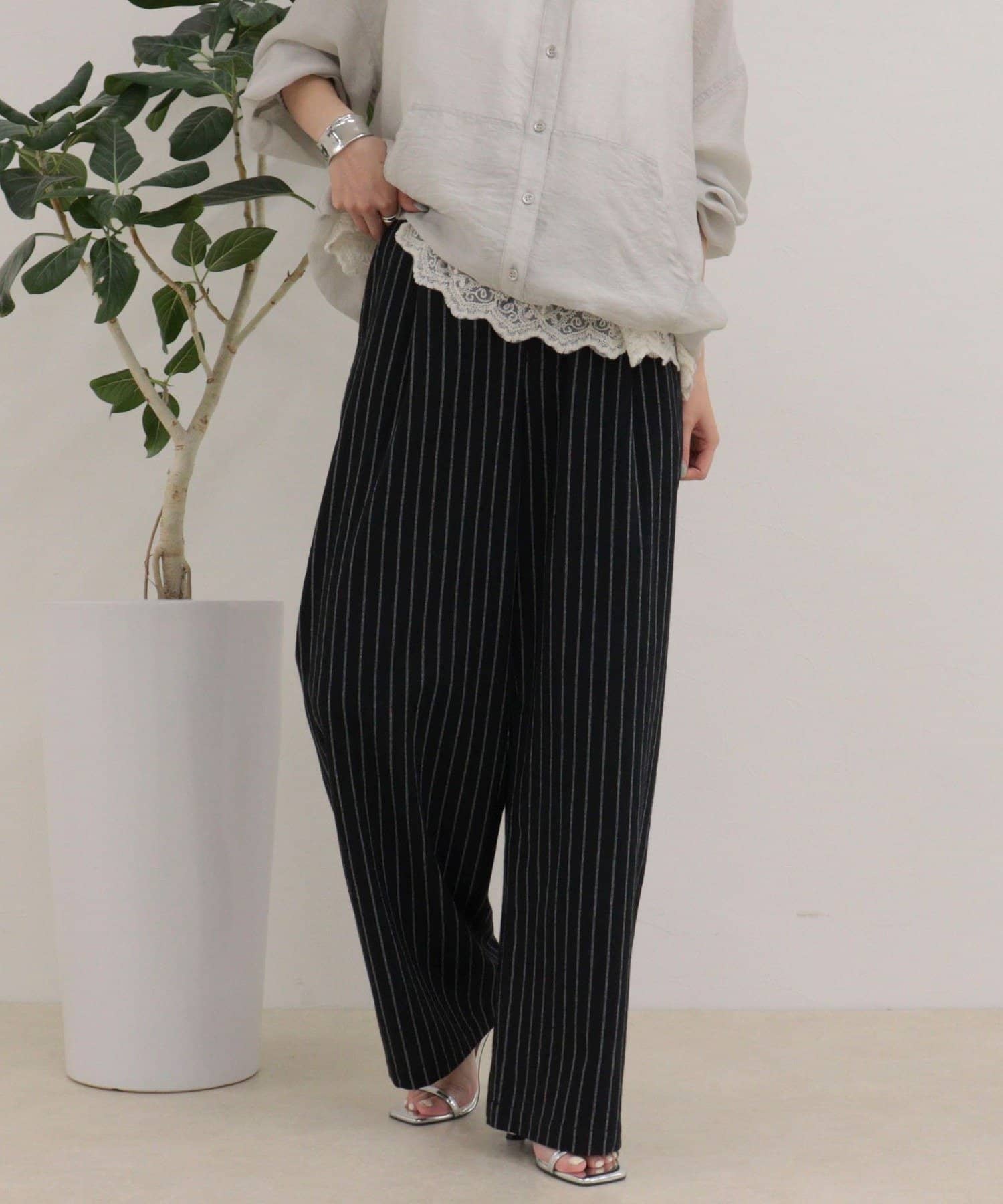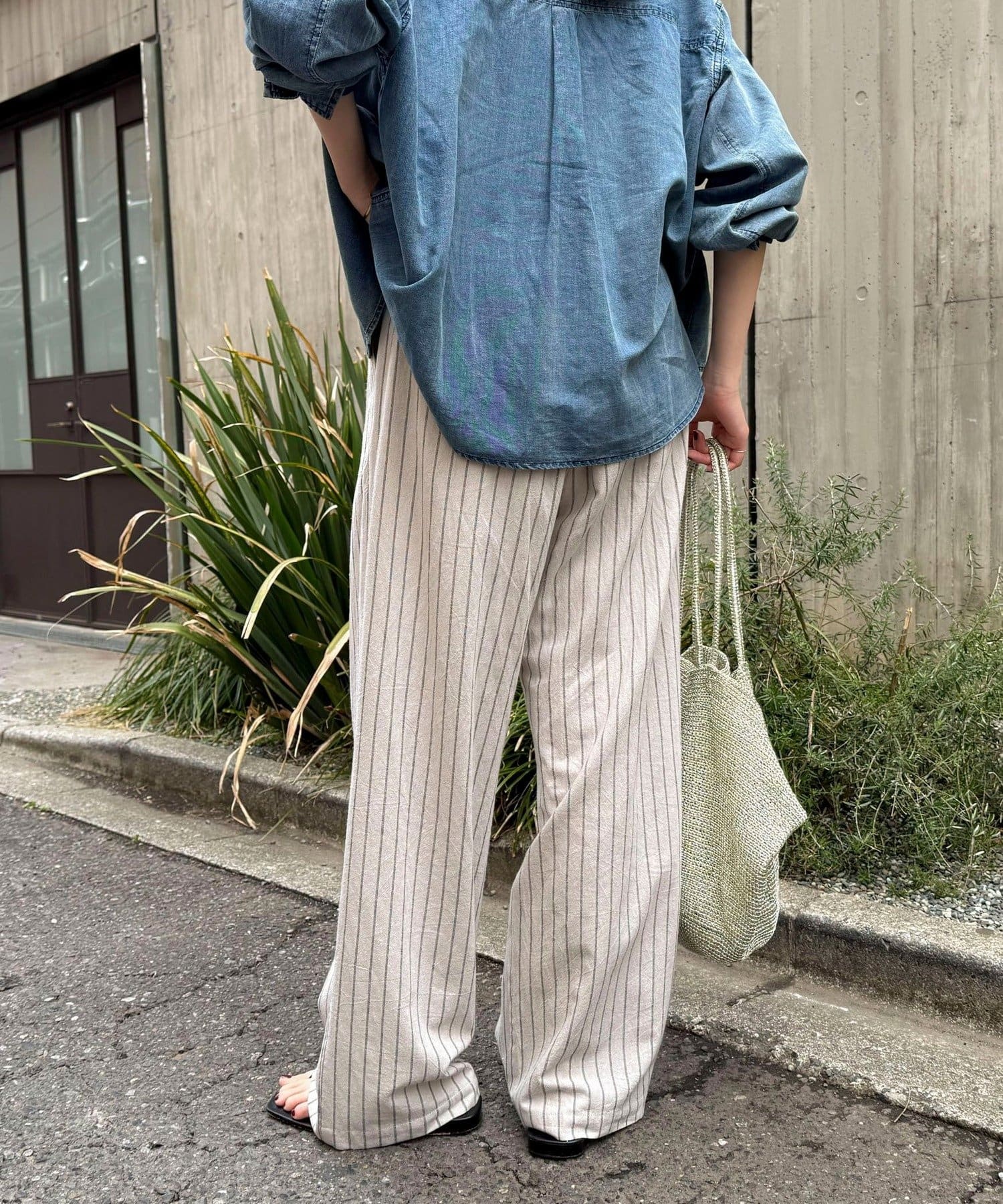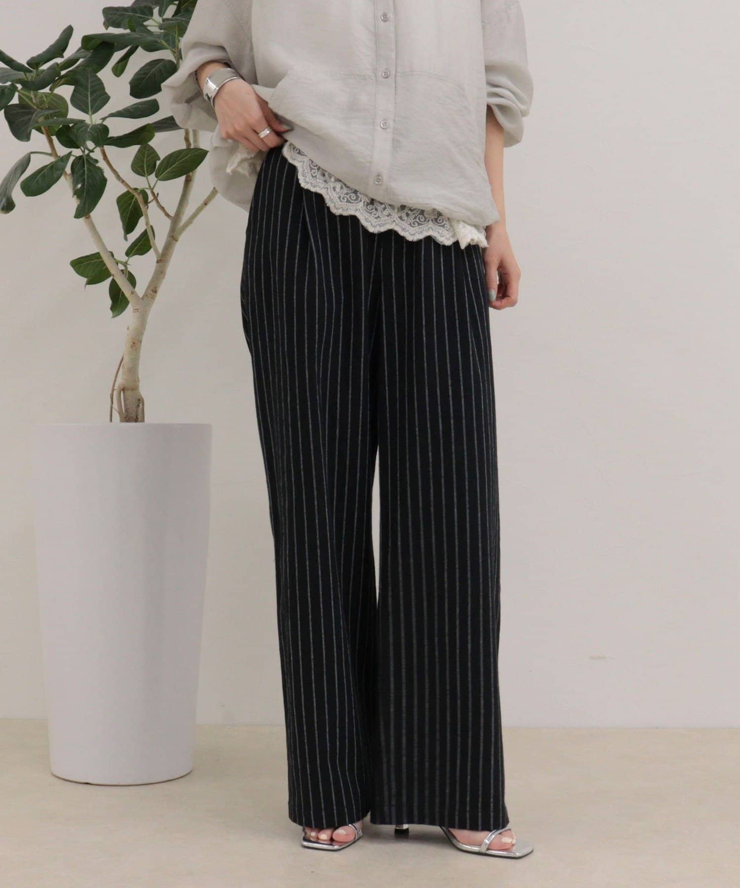 ・爽やかなストライプ柄が印象的なセミワイドパンツ