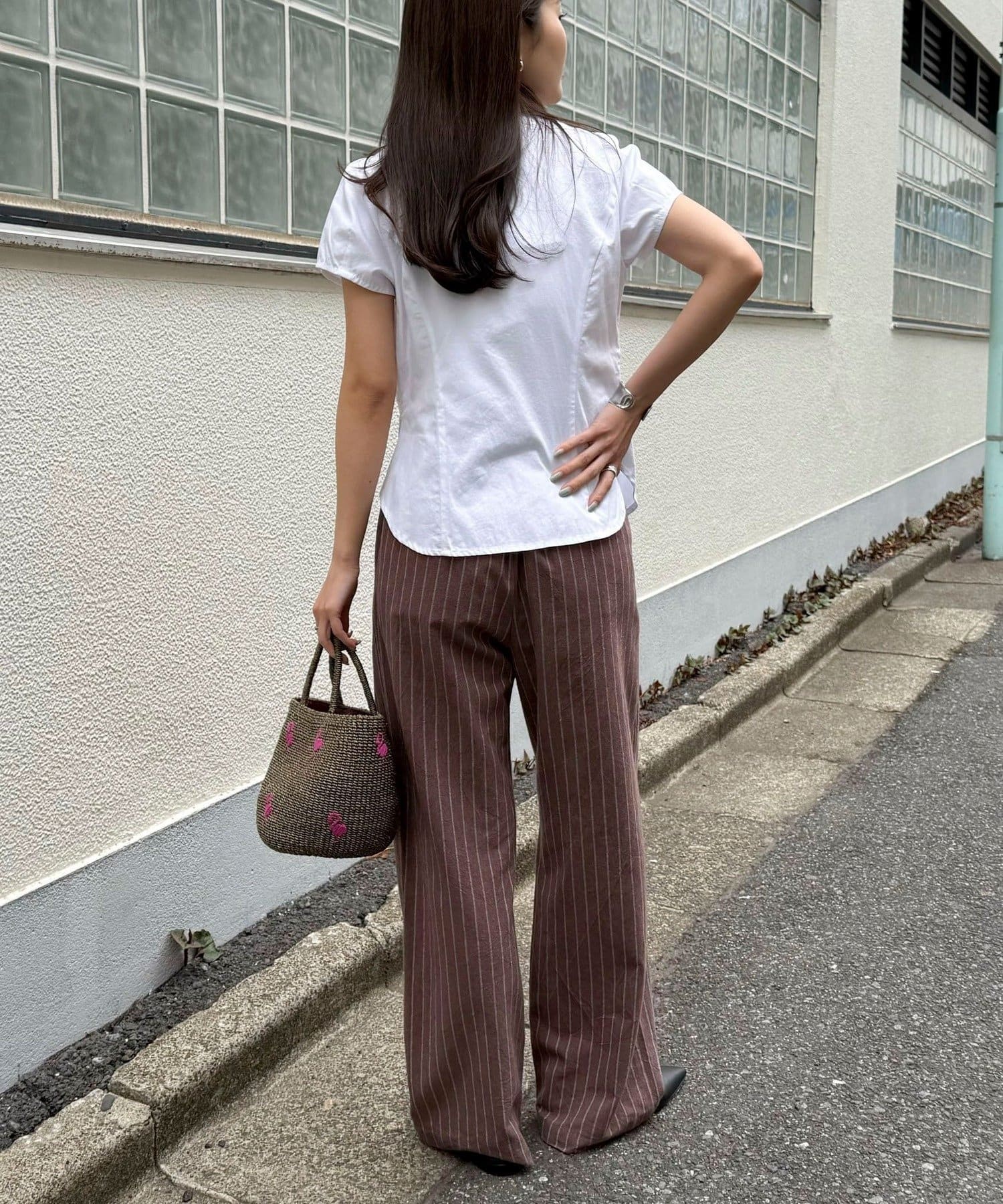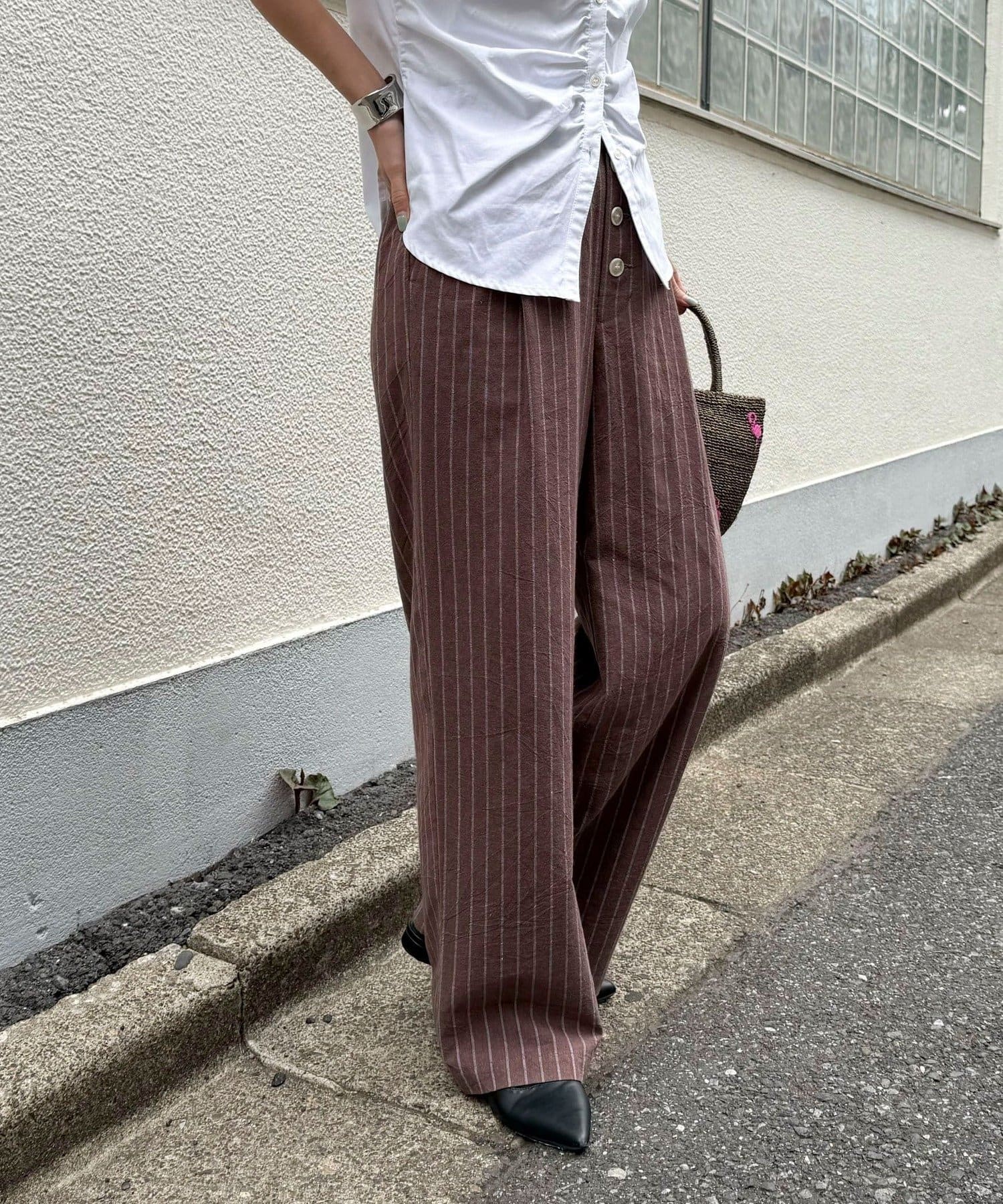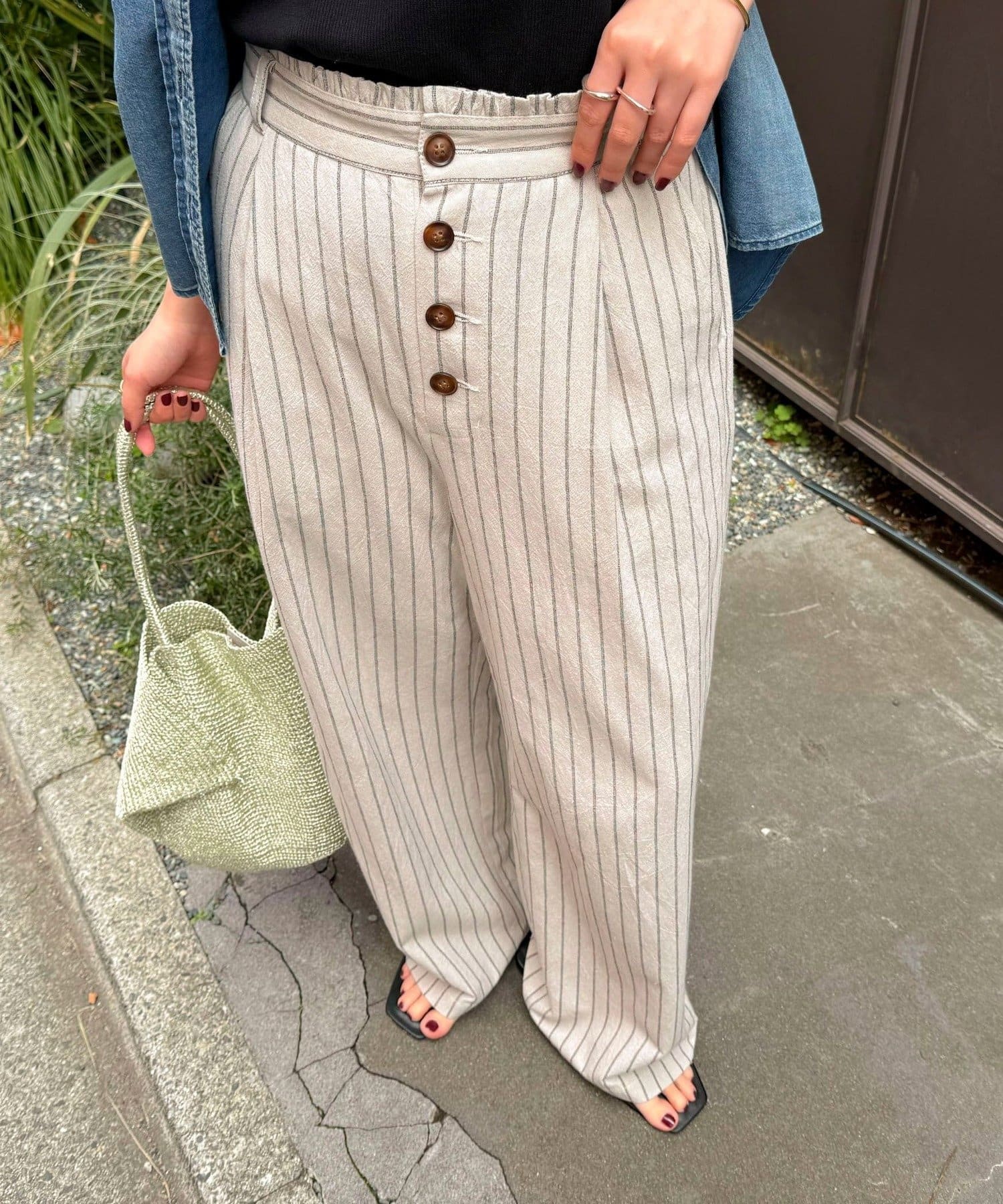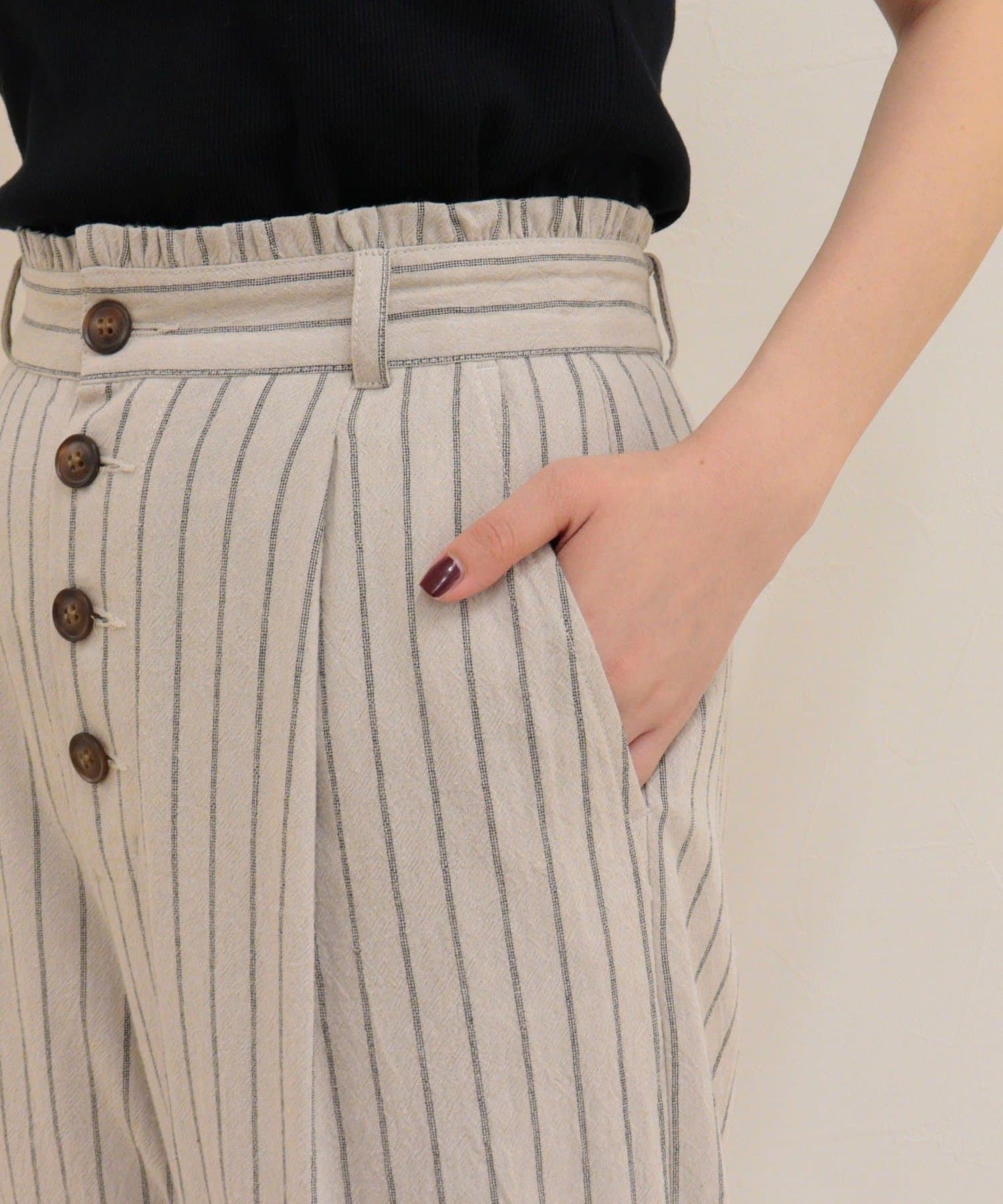 ・爽やかなストライプ柄が印象的なセミワイドパンツ