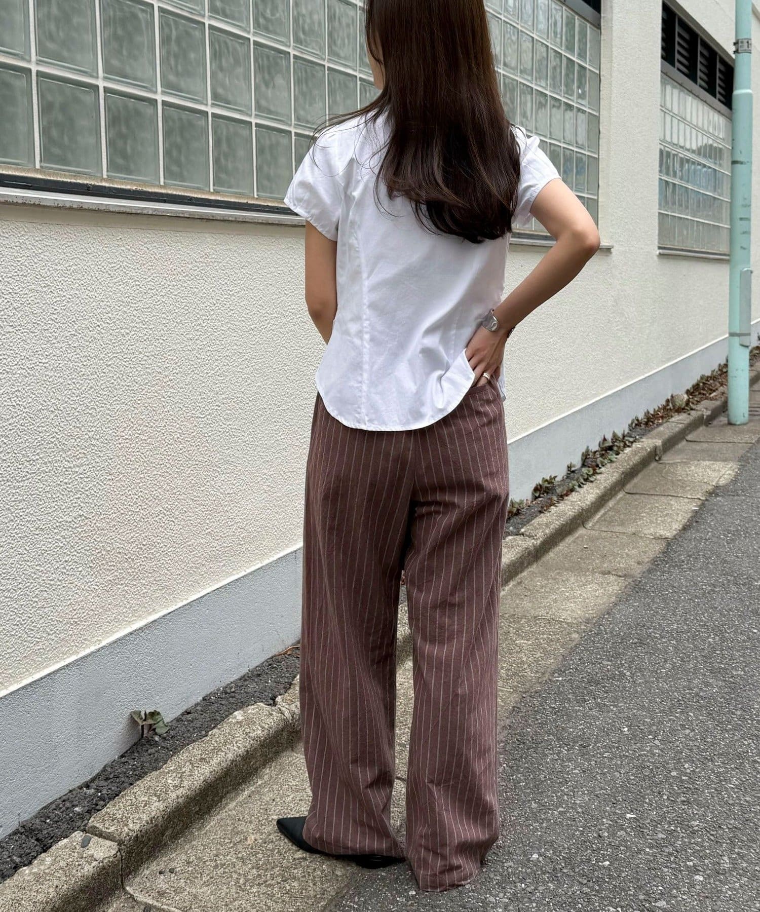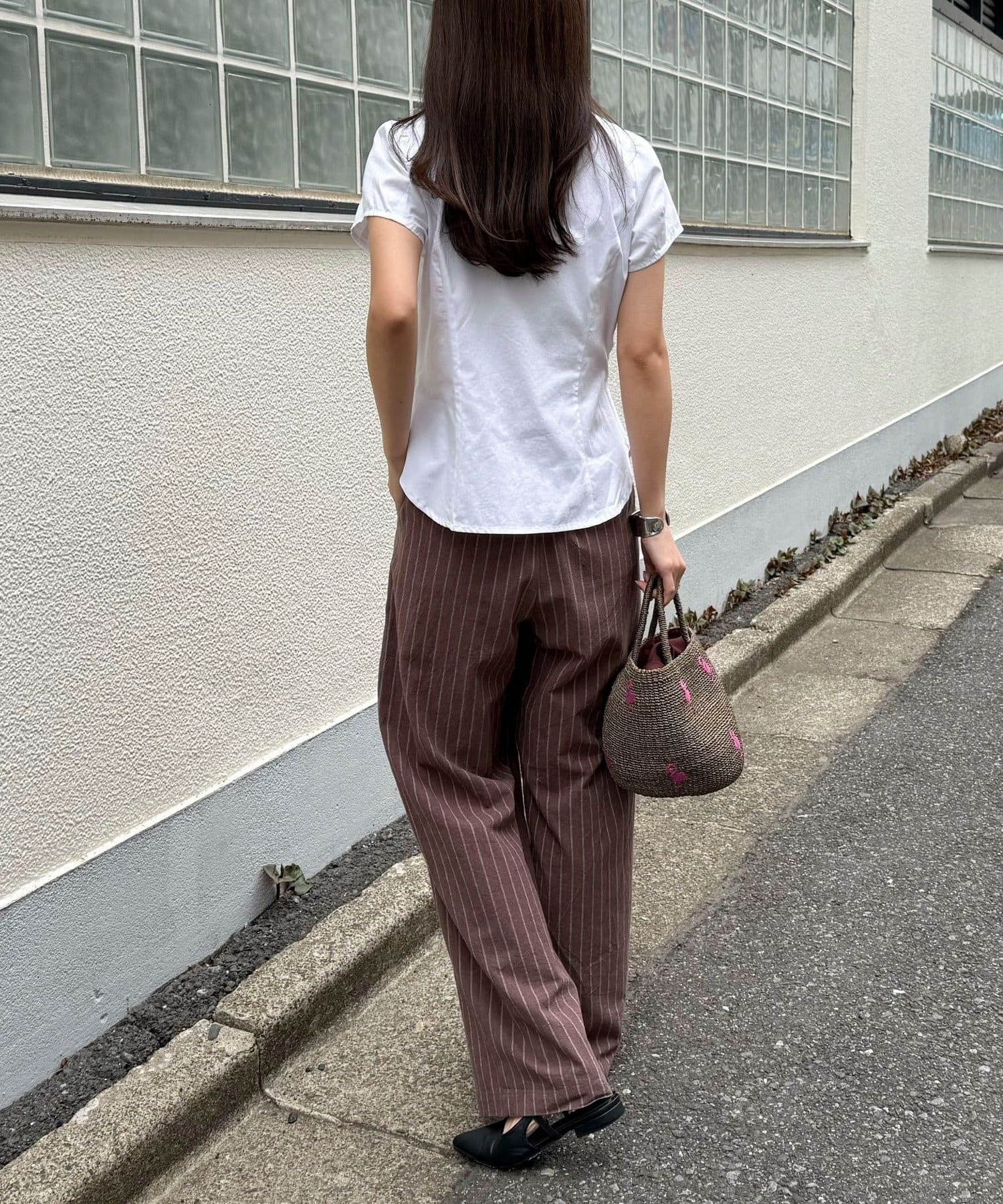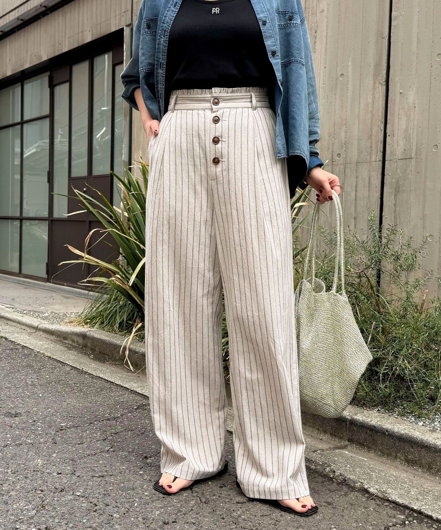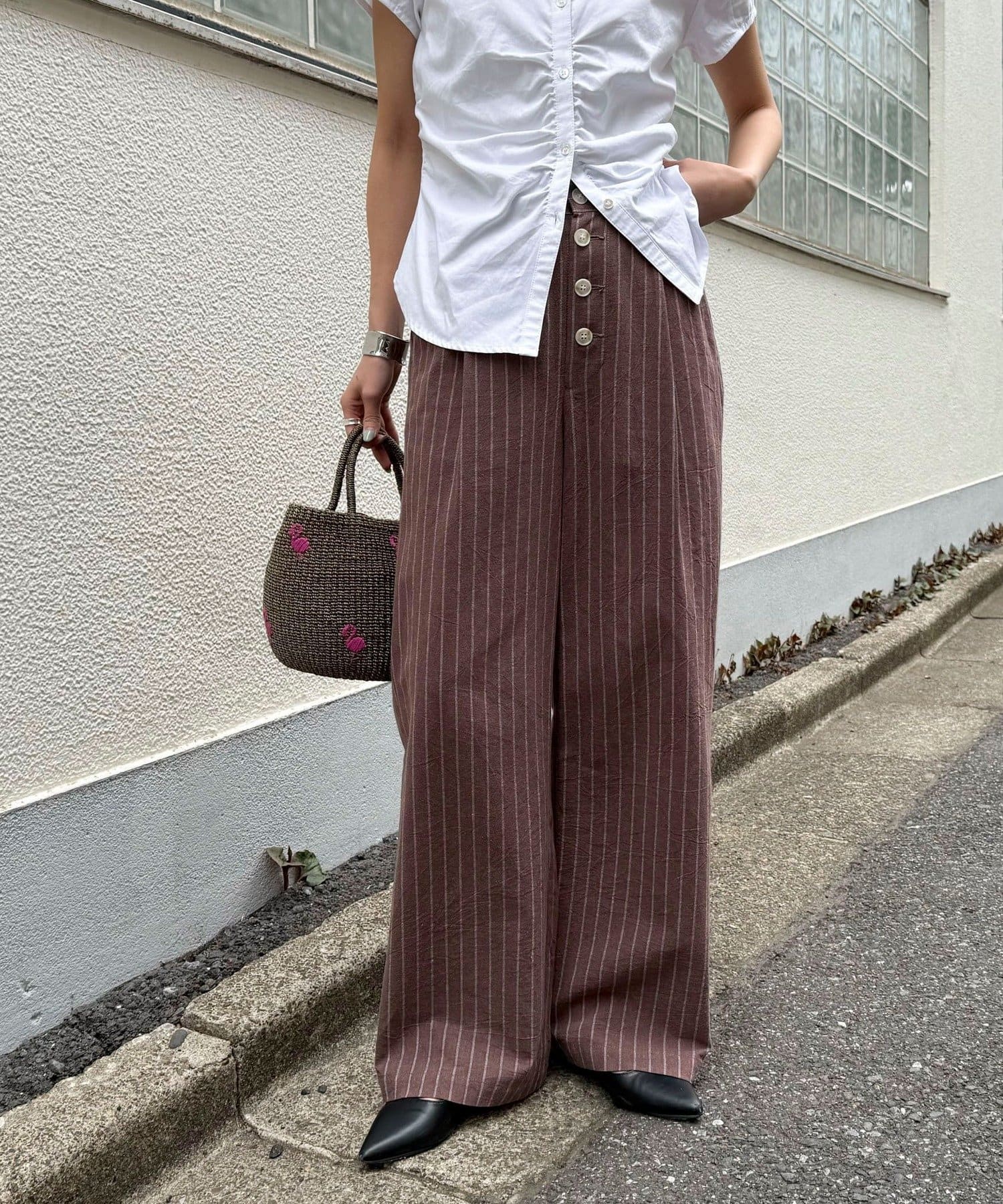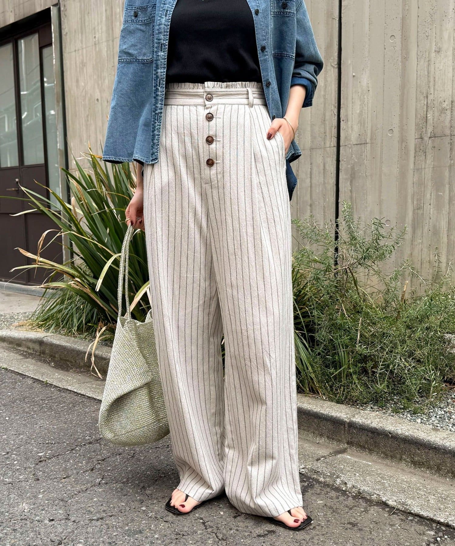 ・爽やかなストライプ柄が印象的なセミワイドパンツ