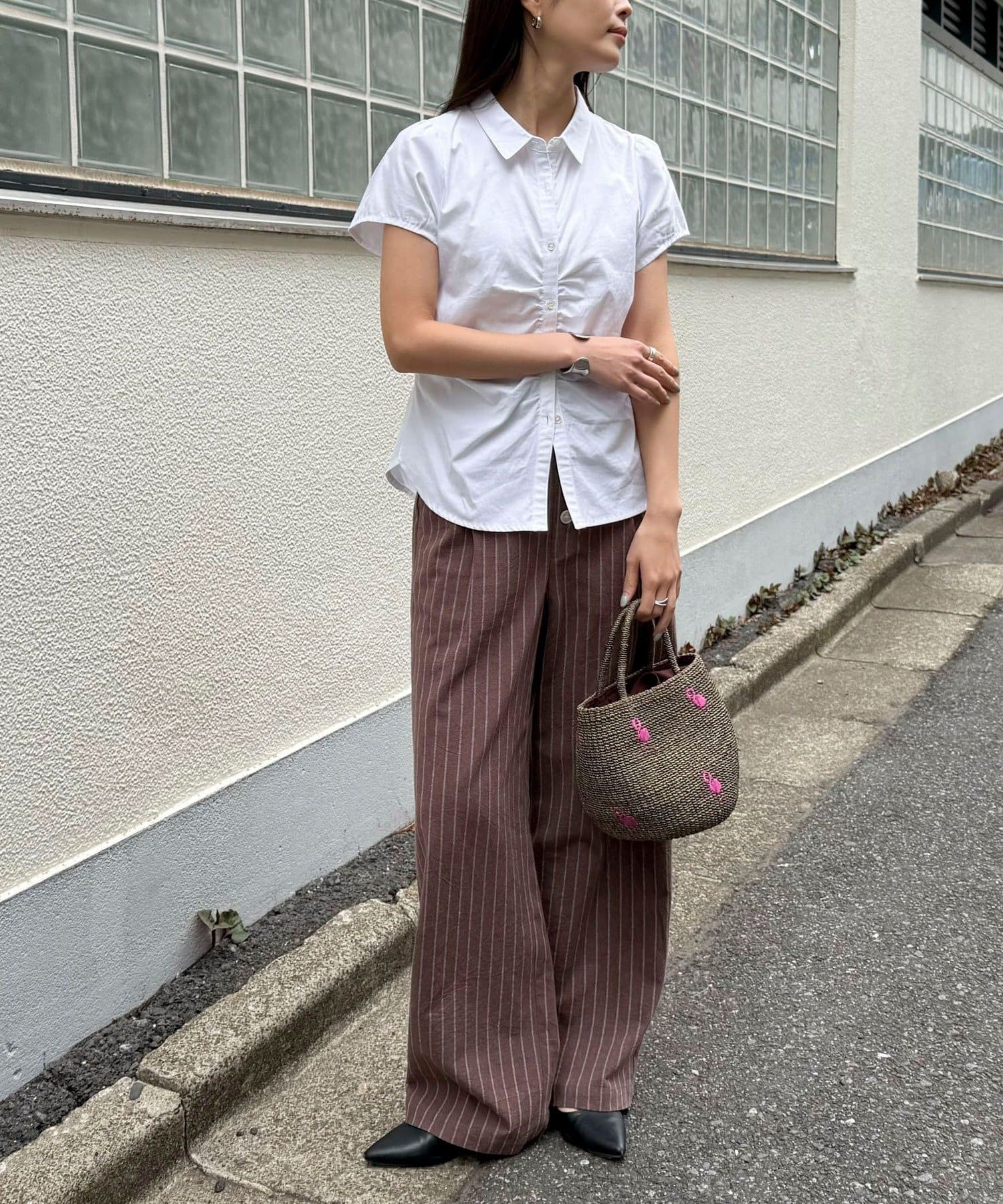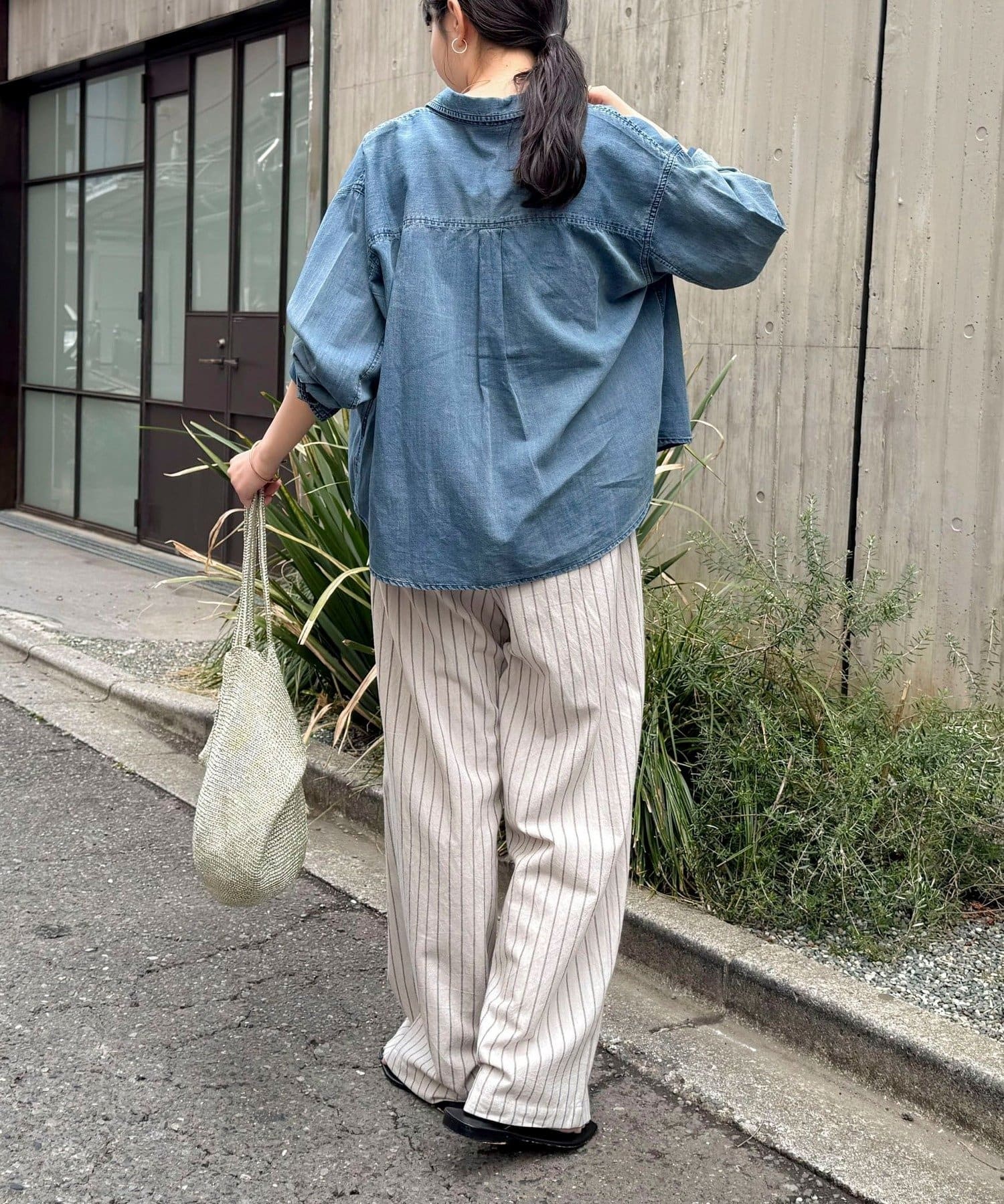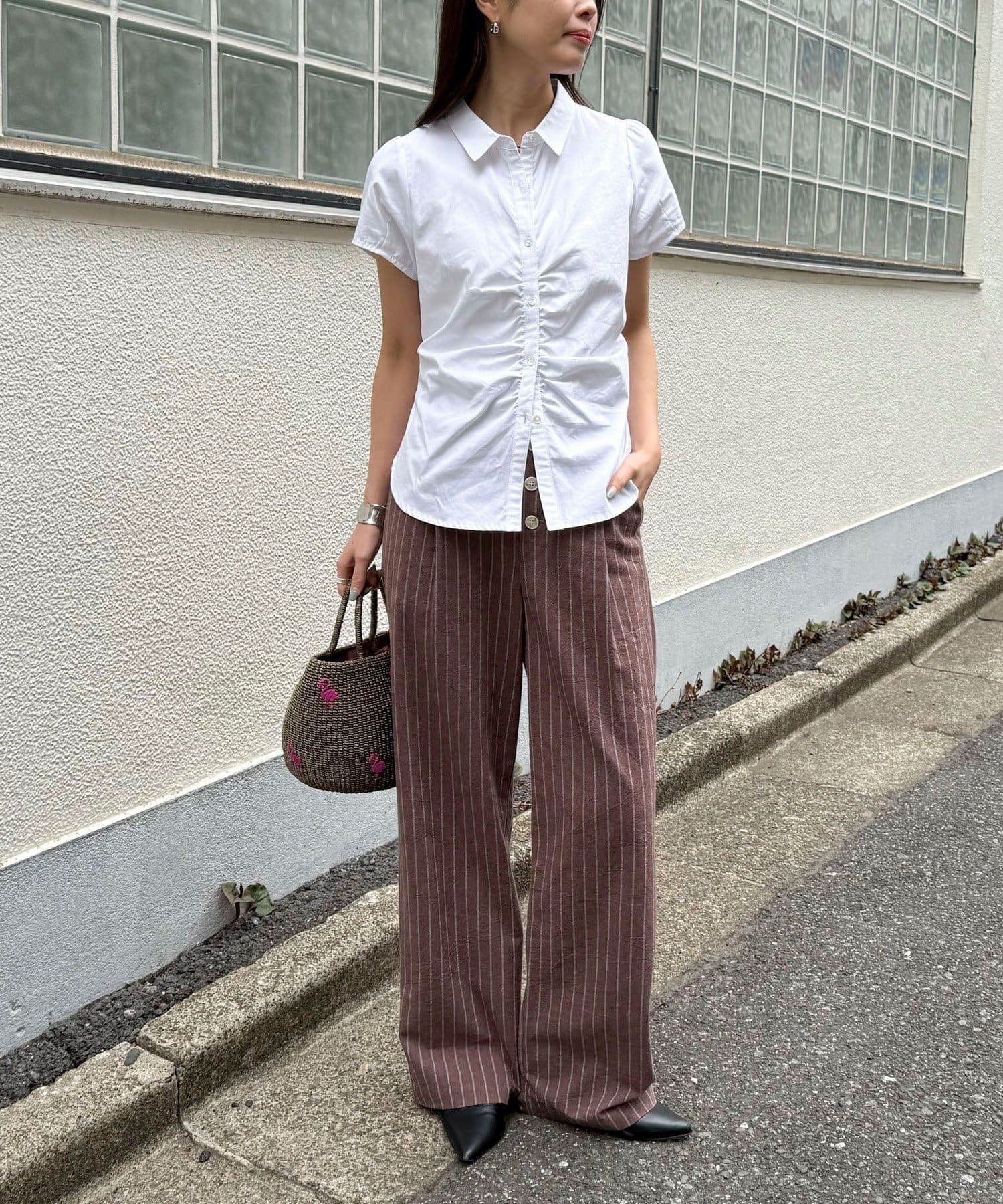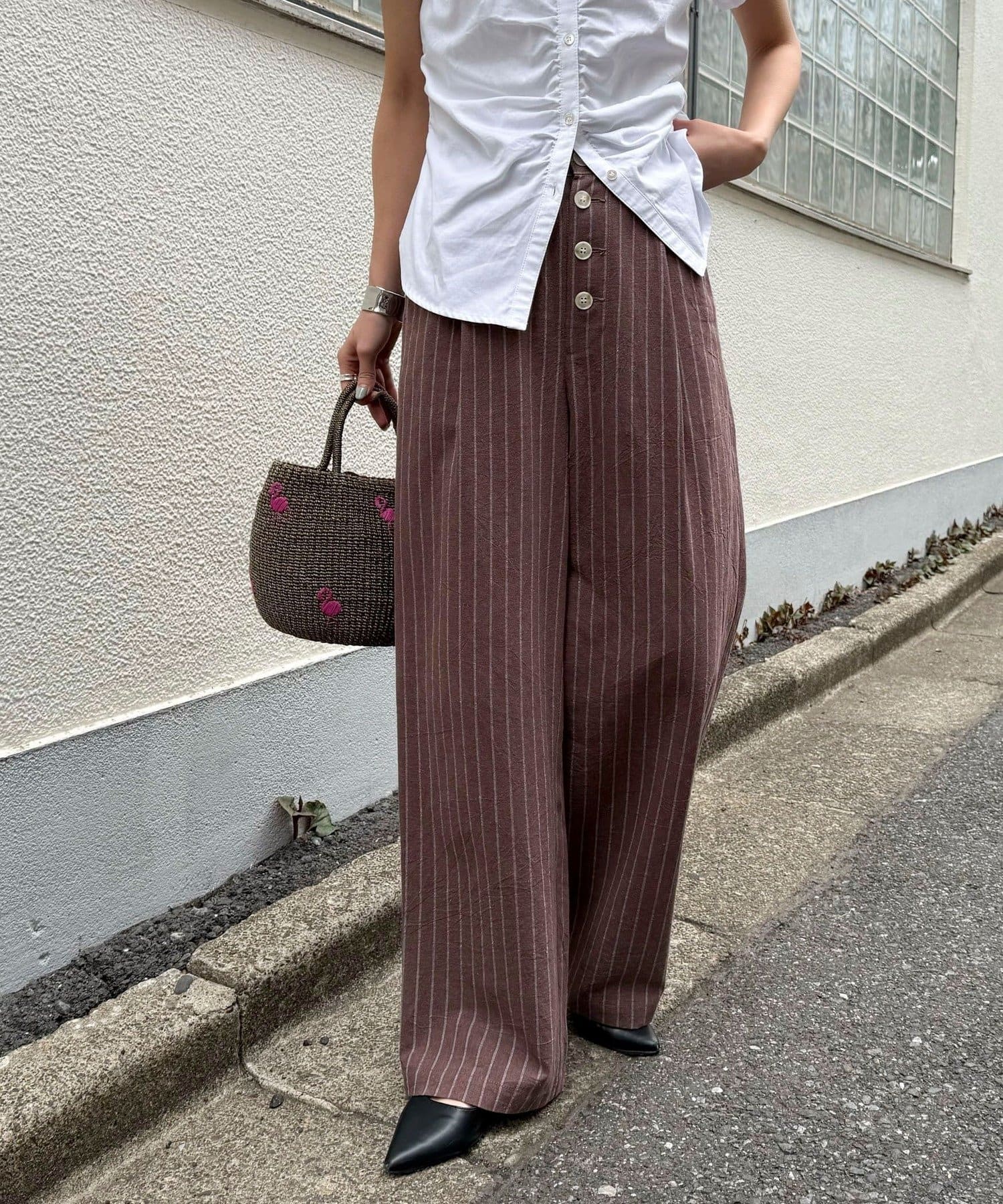 ・爽やかなストライプ柄が印象的なセミワイドパンツ