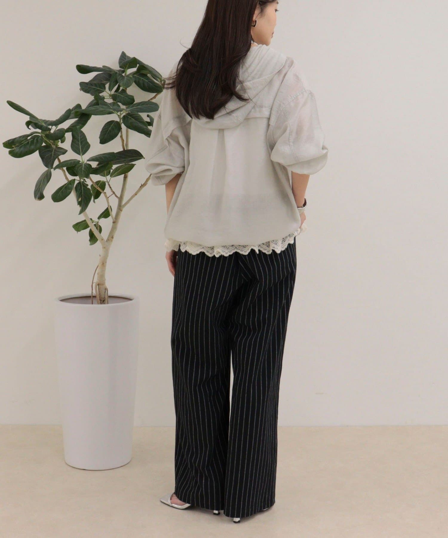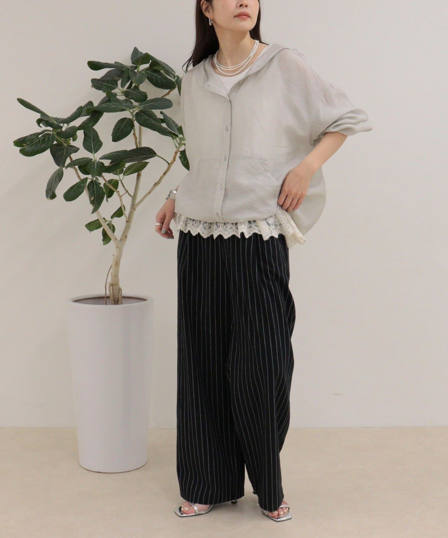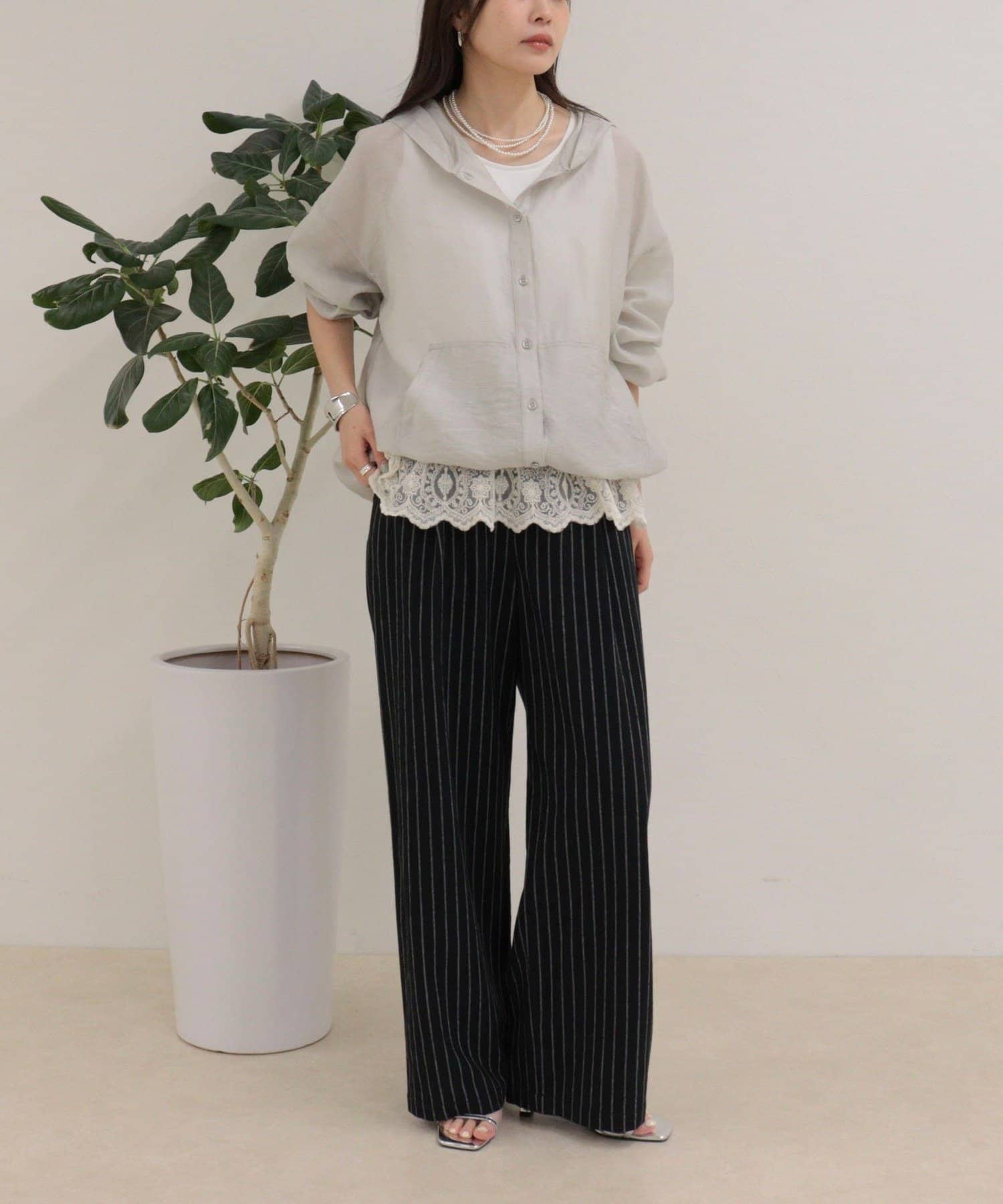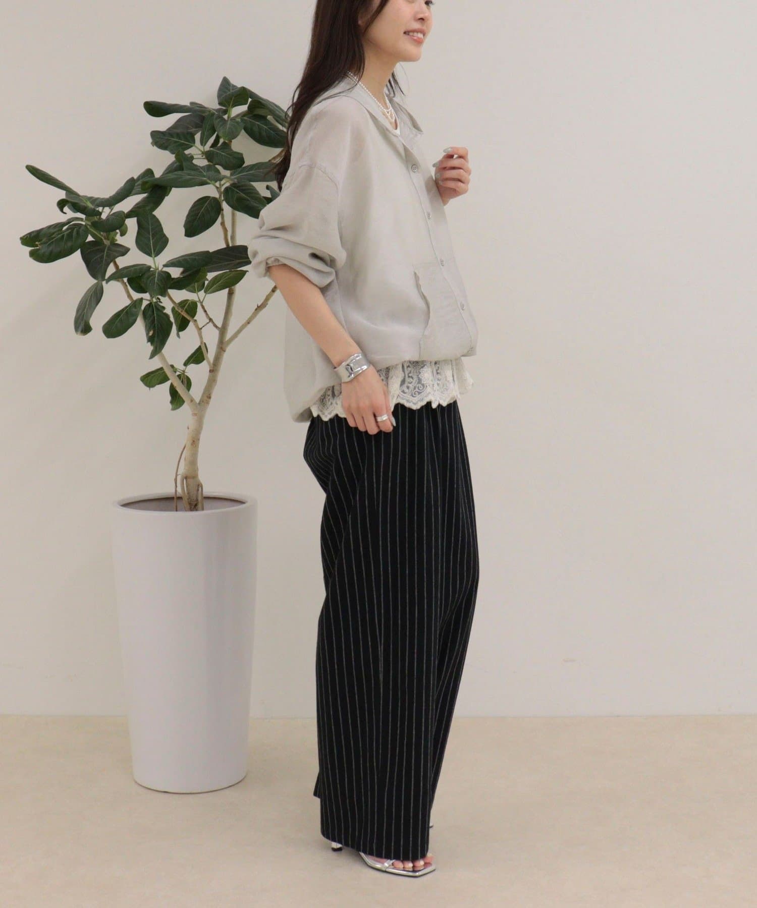 ・爽やかなストライプ柄が印象的なセミワイドパンツ
