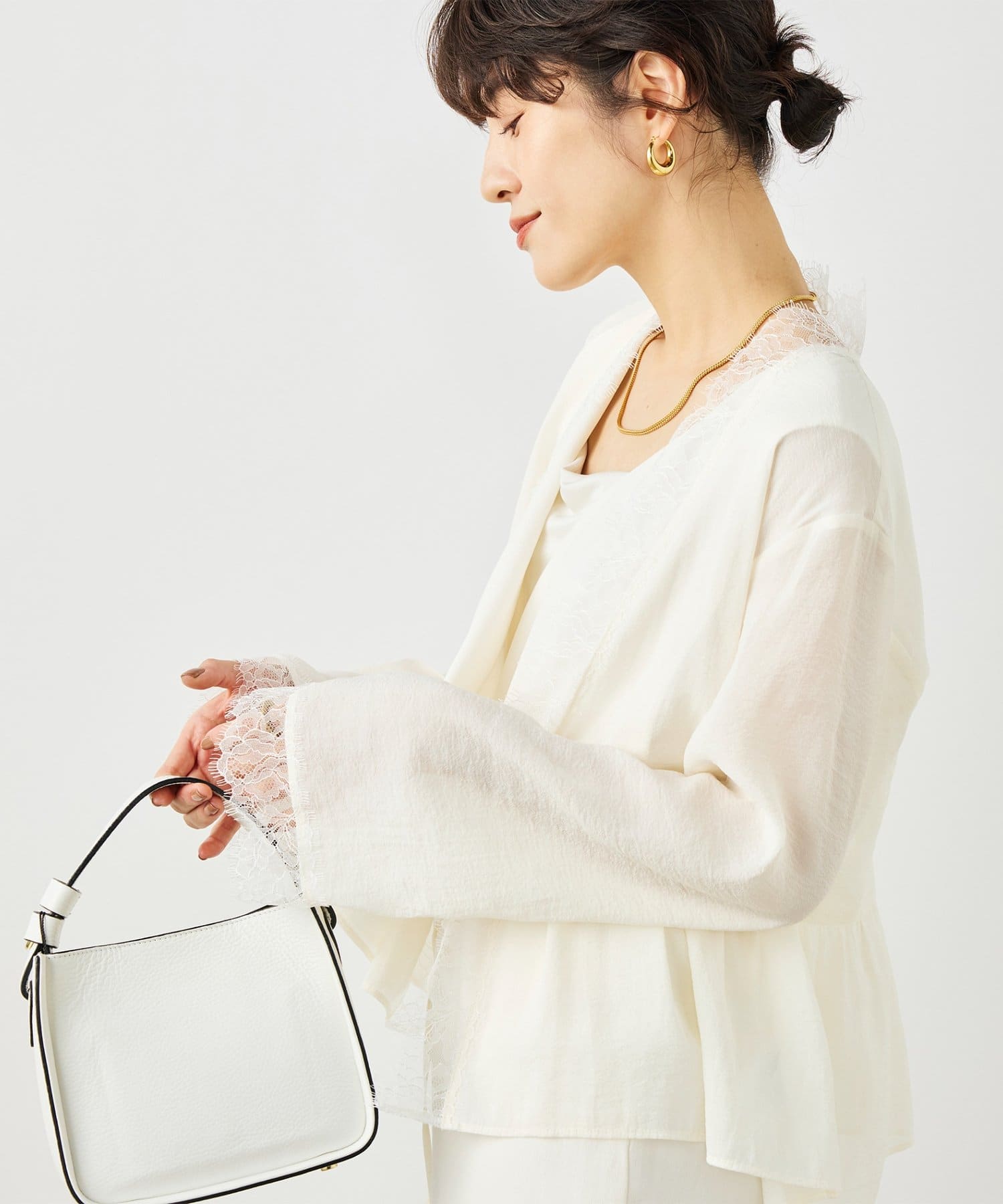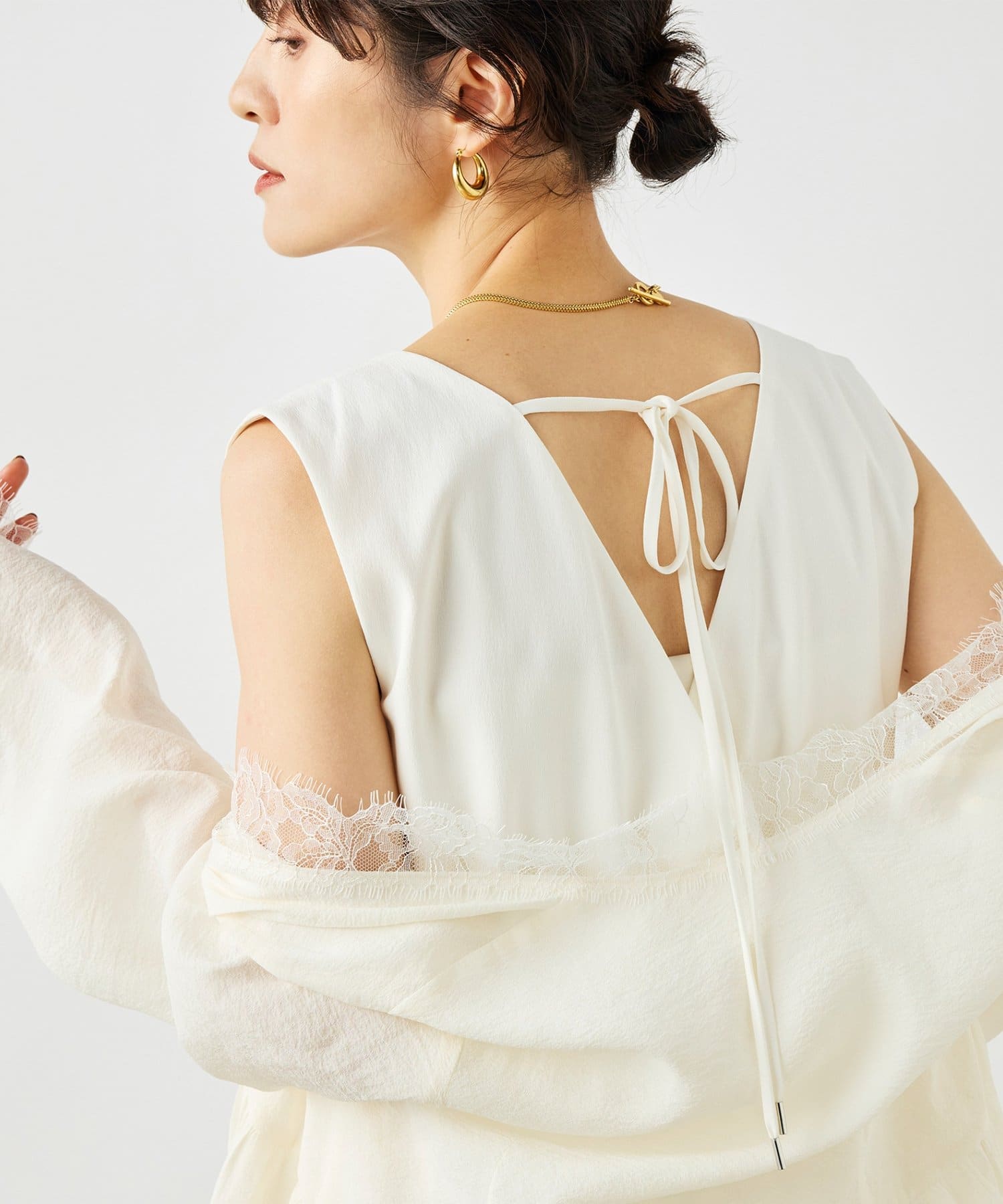 ・1枚着としてはもちろん、ジャケットやカーデの中に着て、レースをチラ見せするレイヤードスタイルにもおすすめ