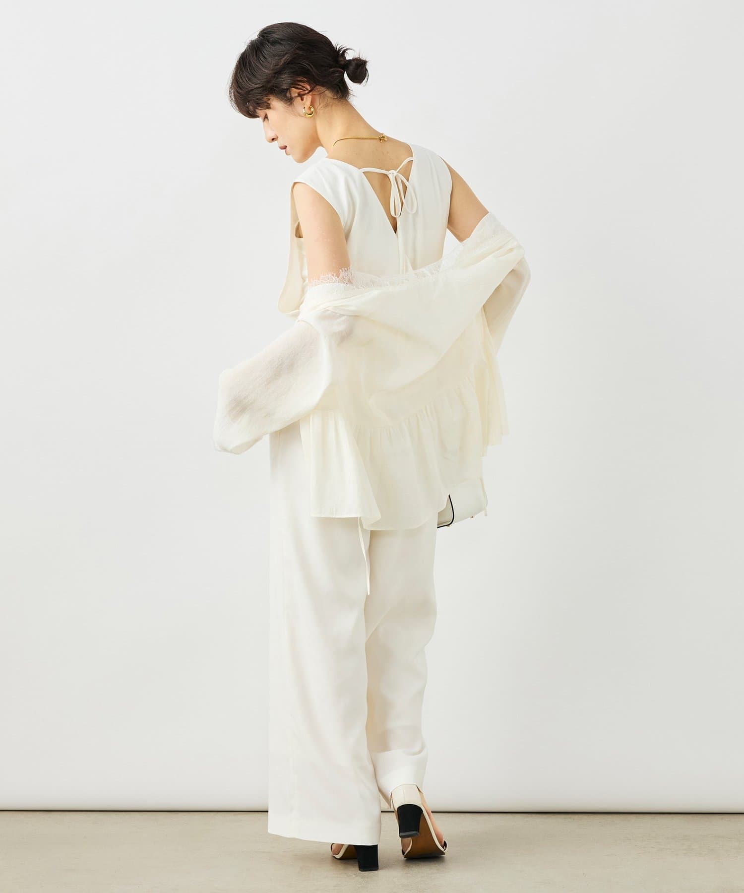 ・シルキーなきしみとシボ感のある表情が特徴のオーガンジー素材を使用