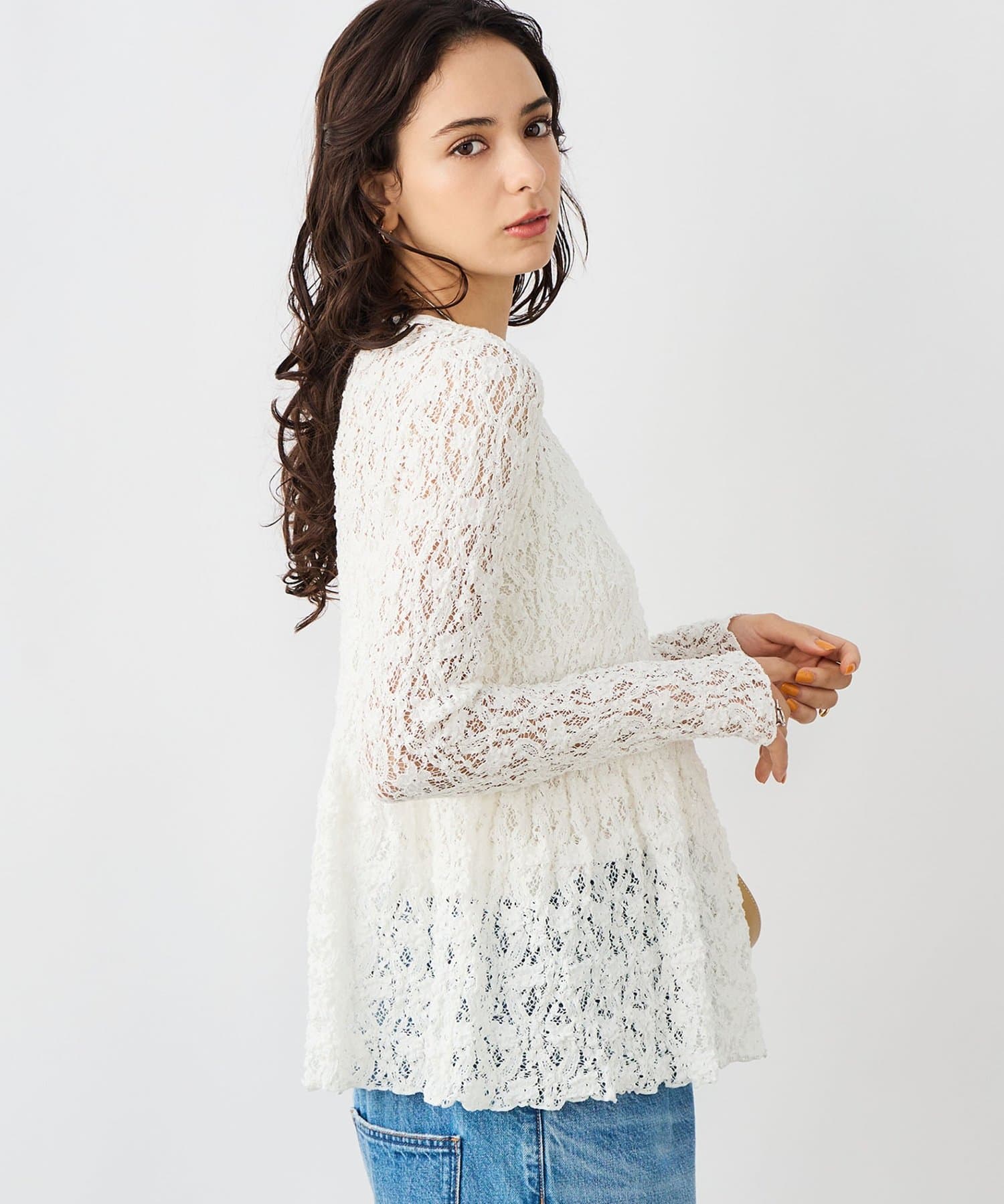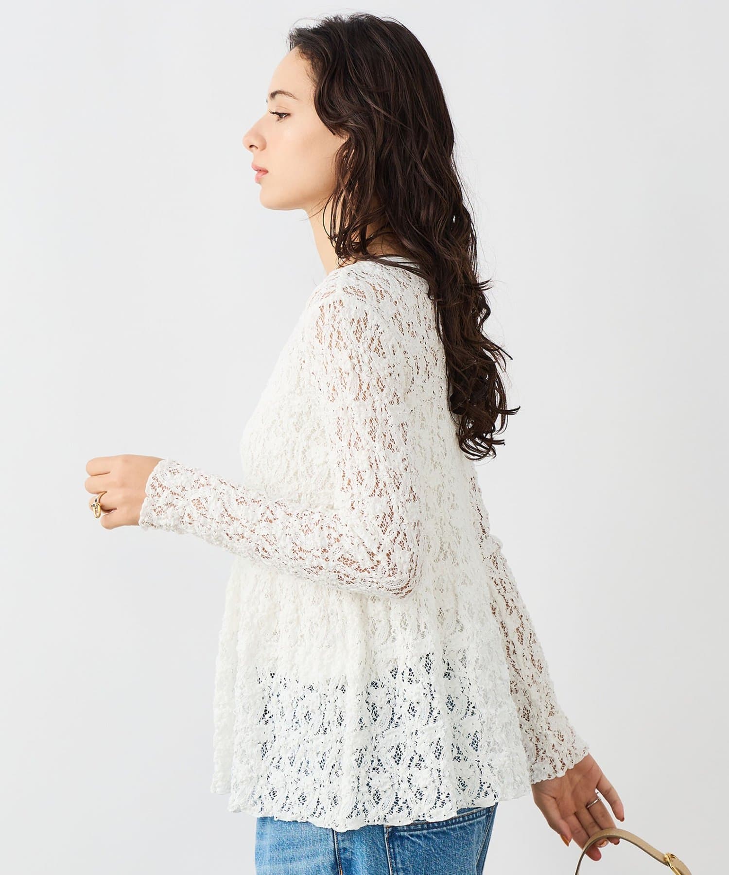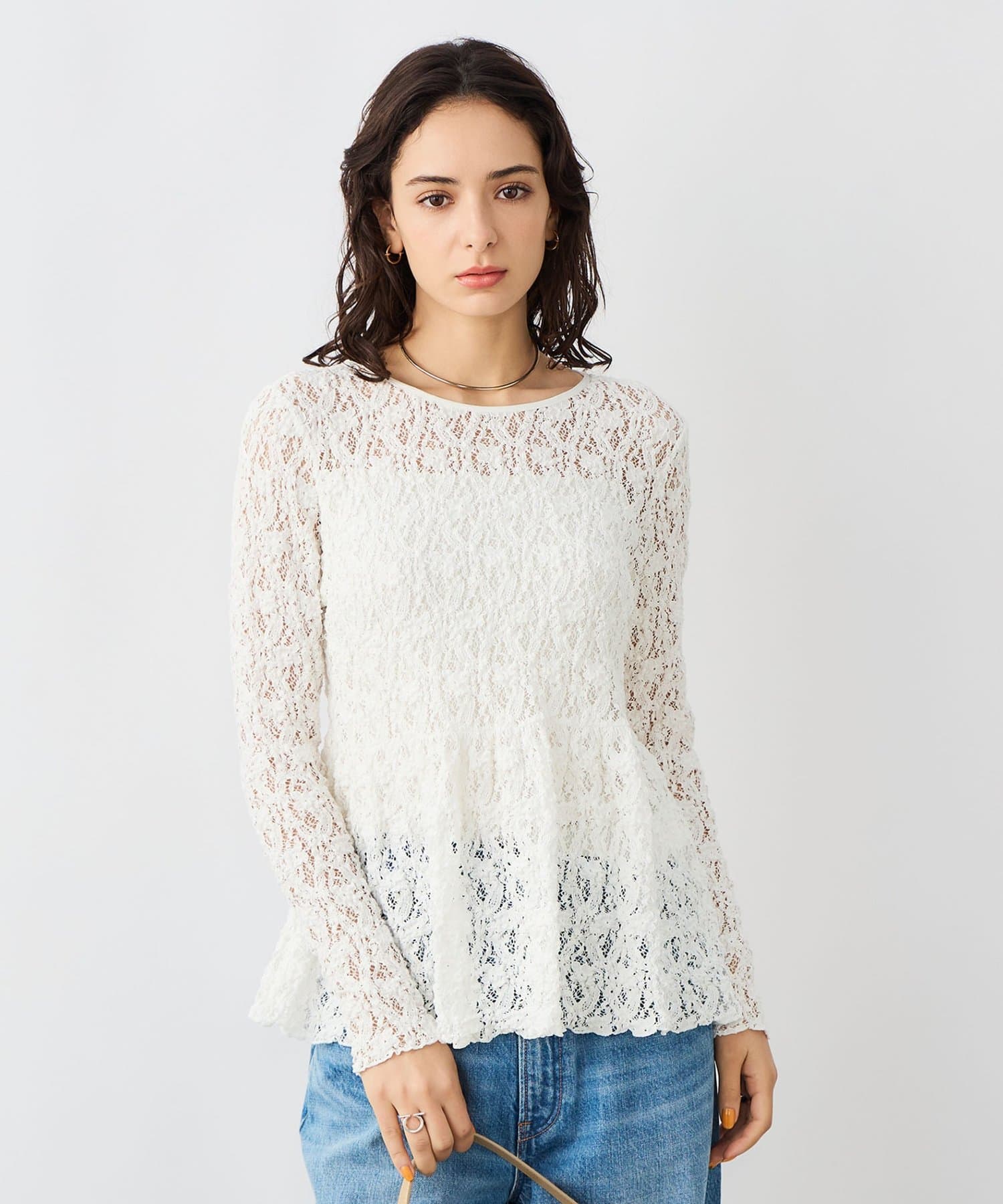 ・ニットやスウェットと合わせ、裾や袖口からレースを見せるレイヤードスタイルもおすすめ