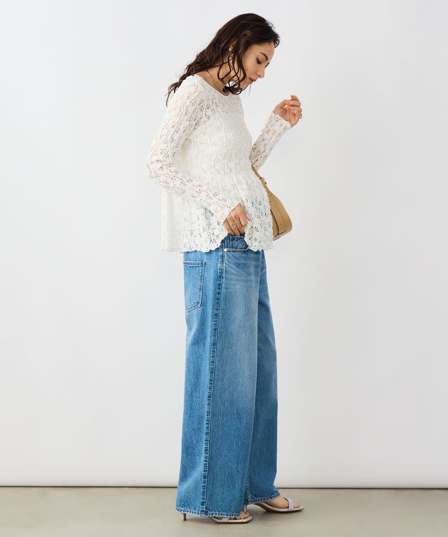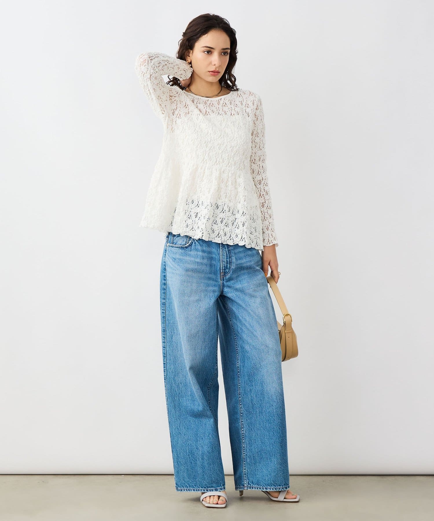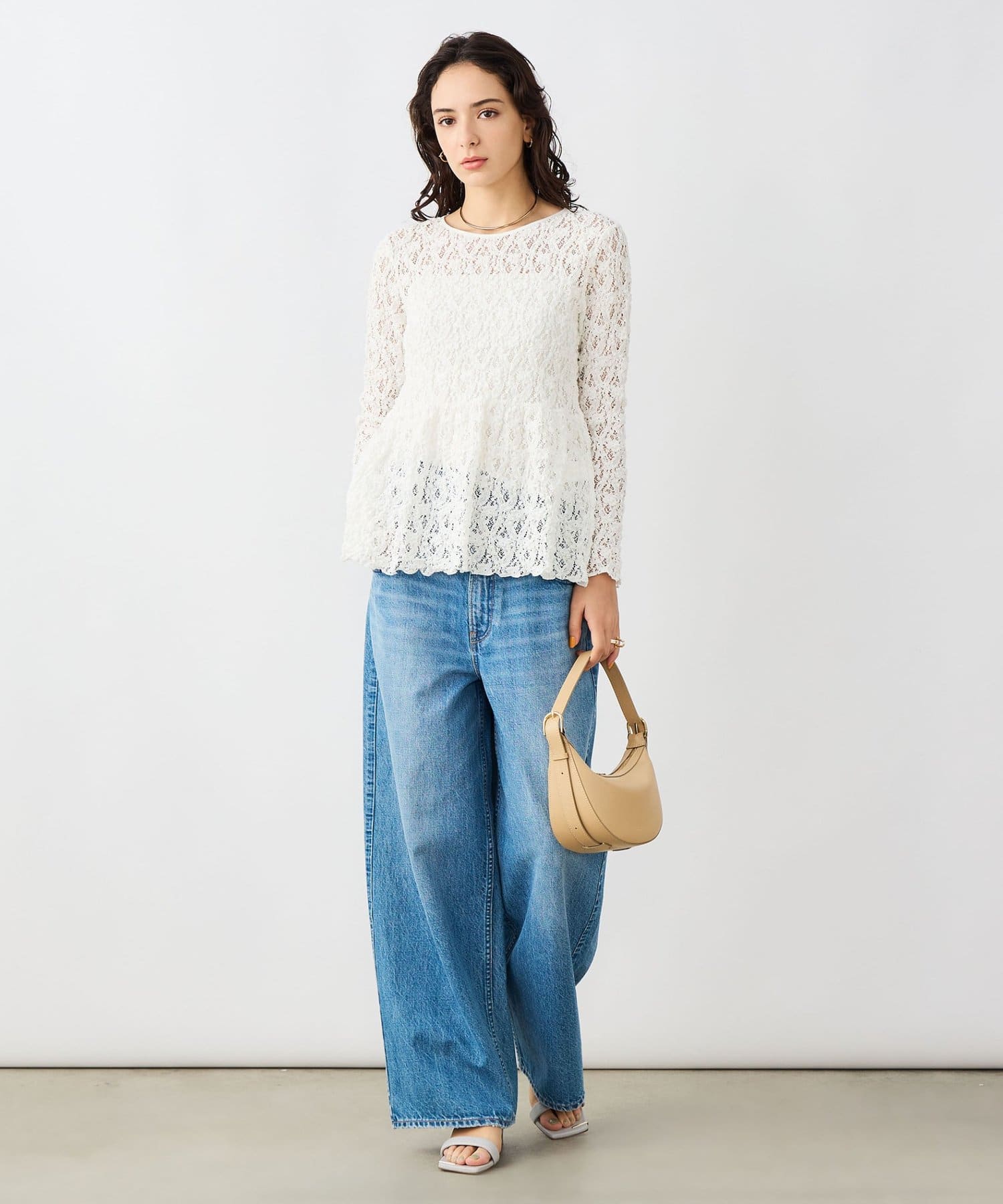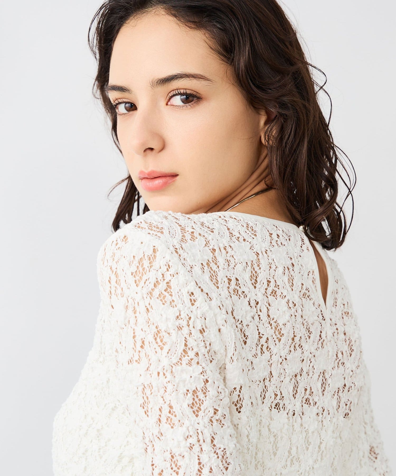 ・ニットやスウェットと合わせ、裾や袖口からレースを見せるレイヤードスタイルもおすすめ
