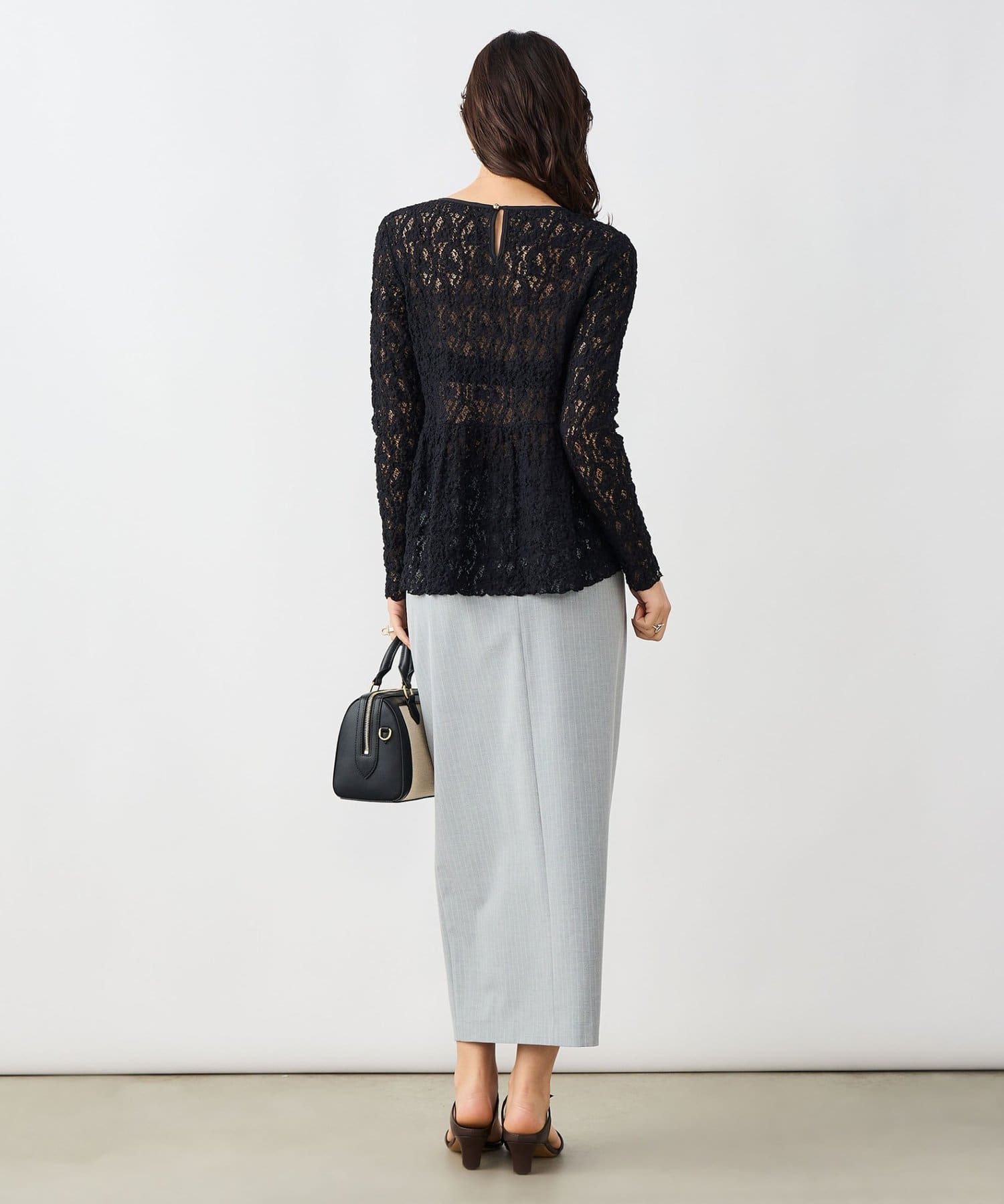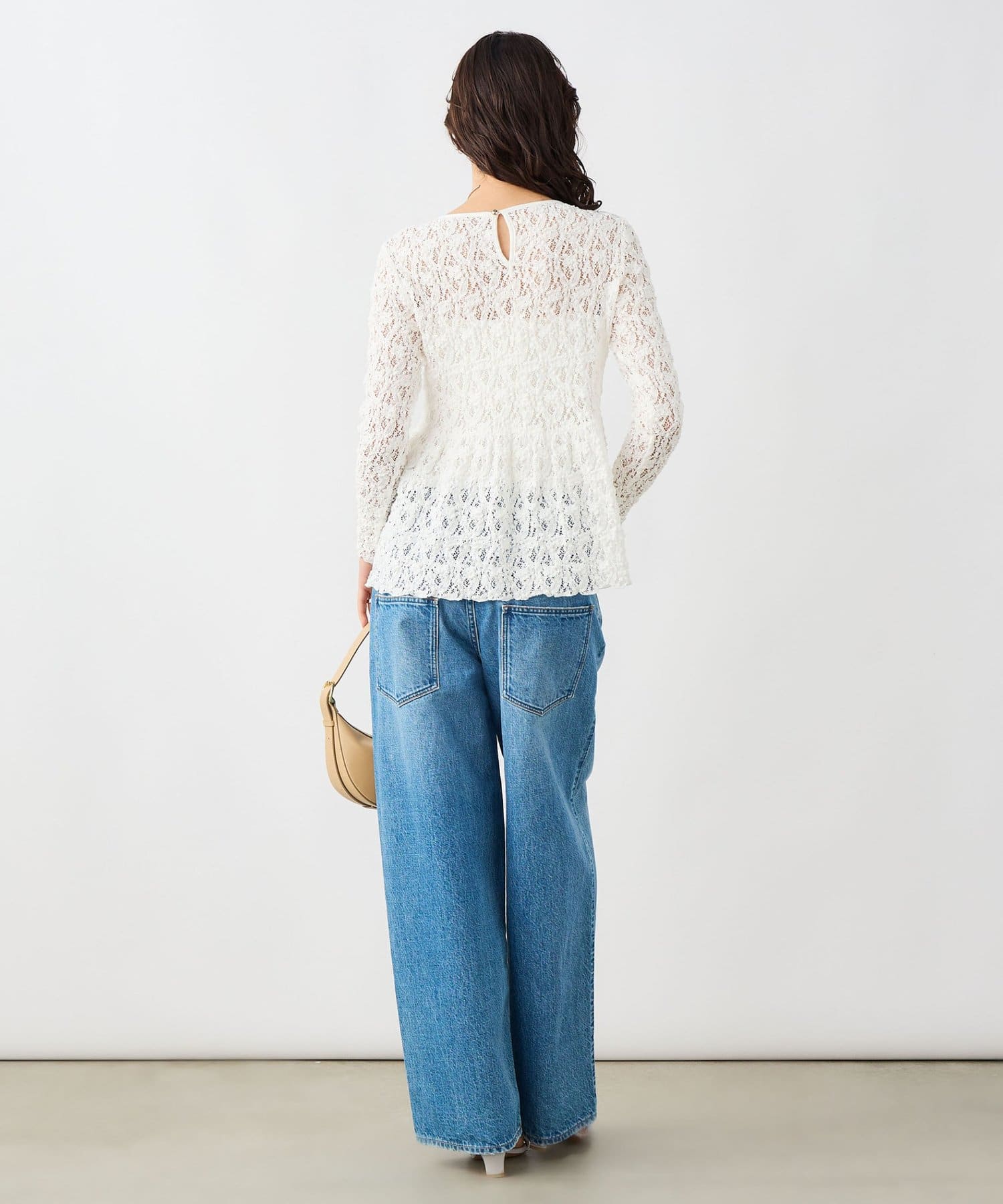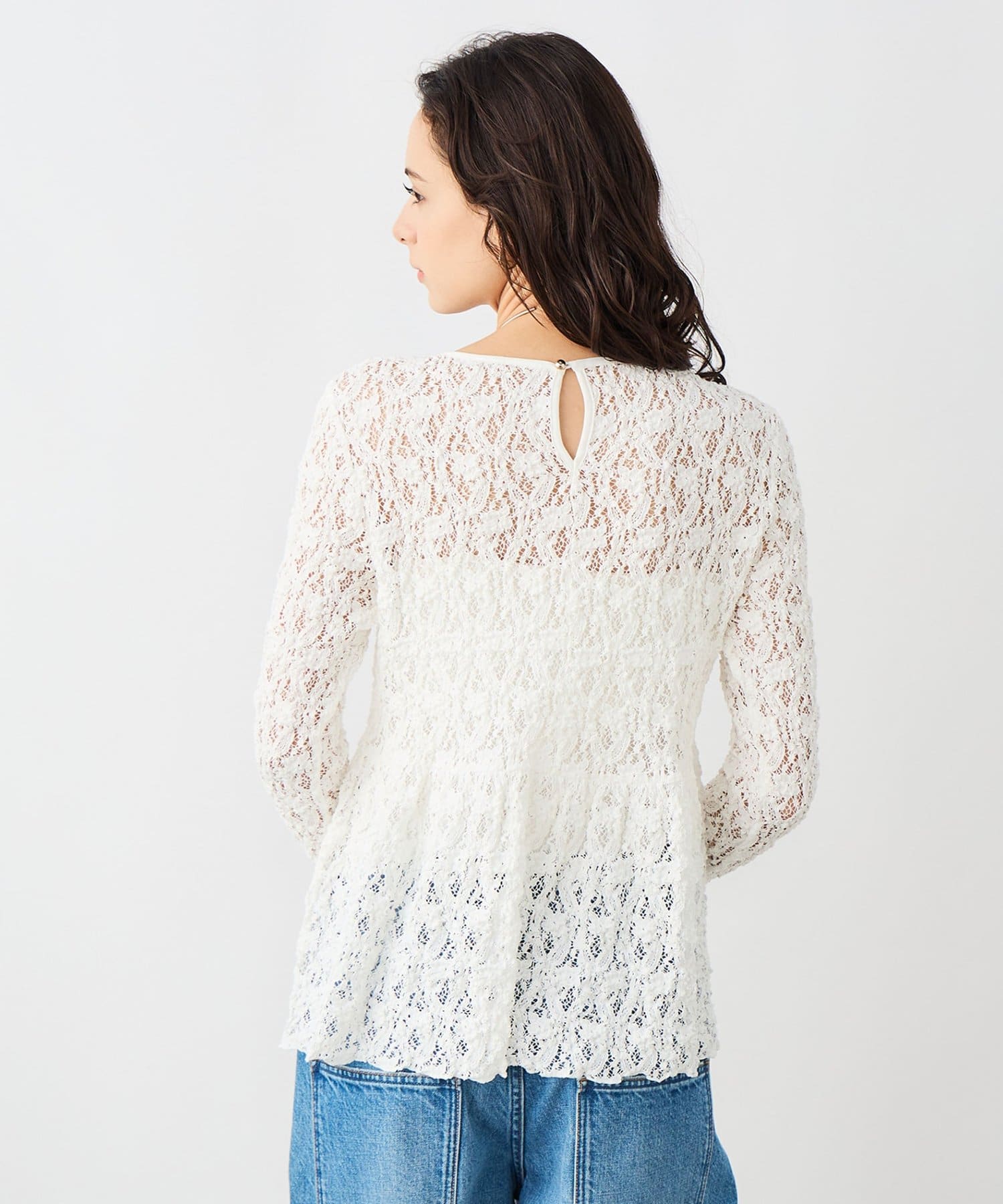 ウォッシャブルストレッチレースペプラムプルオーバー