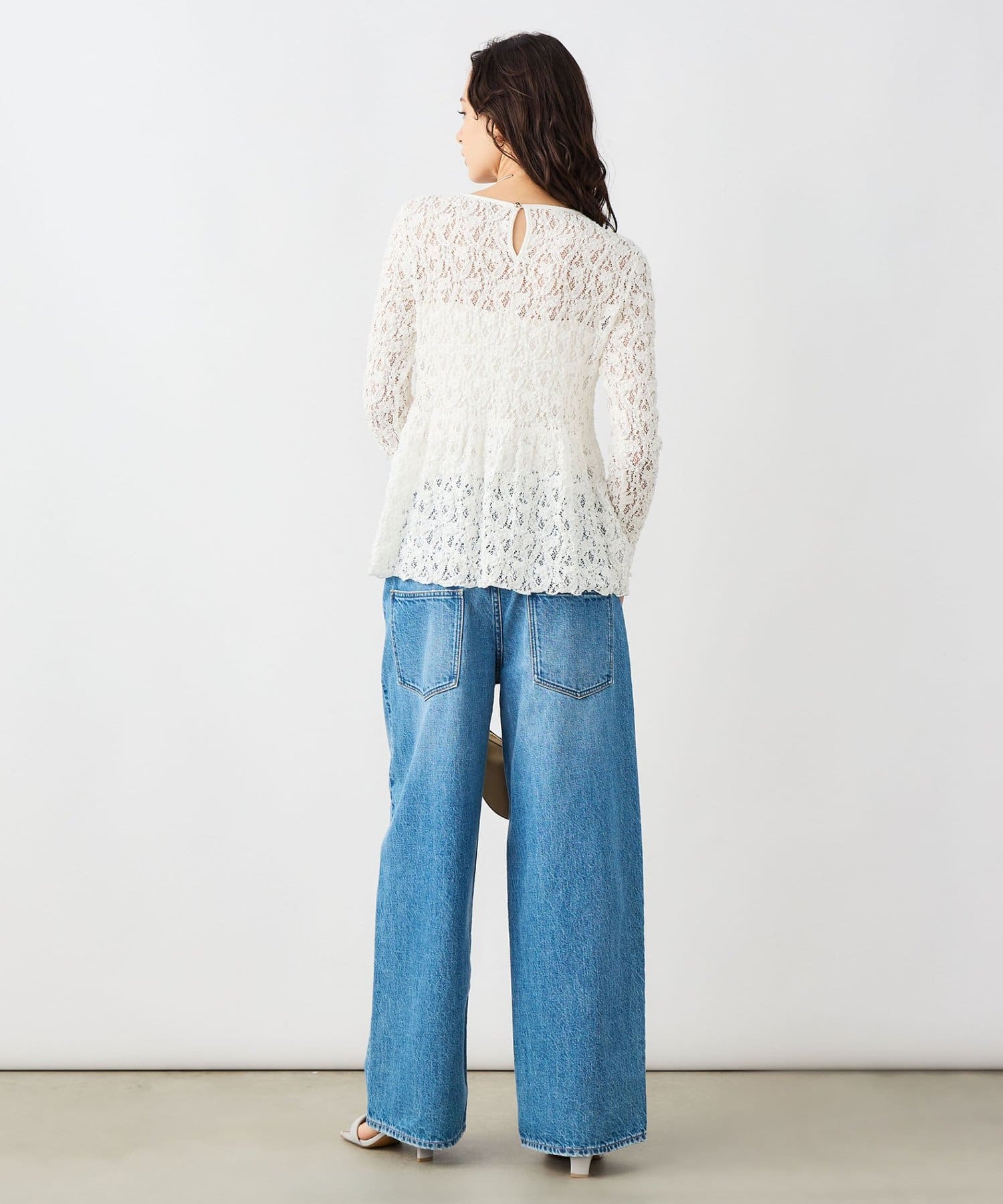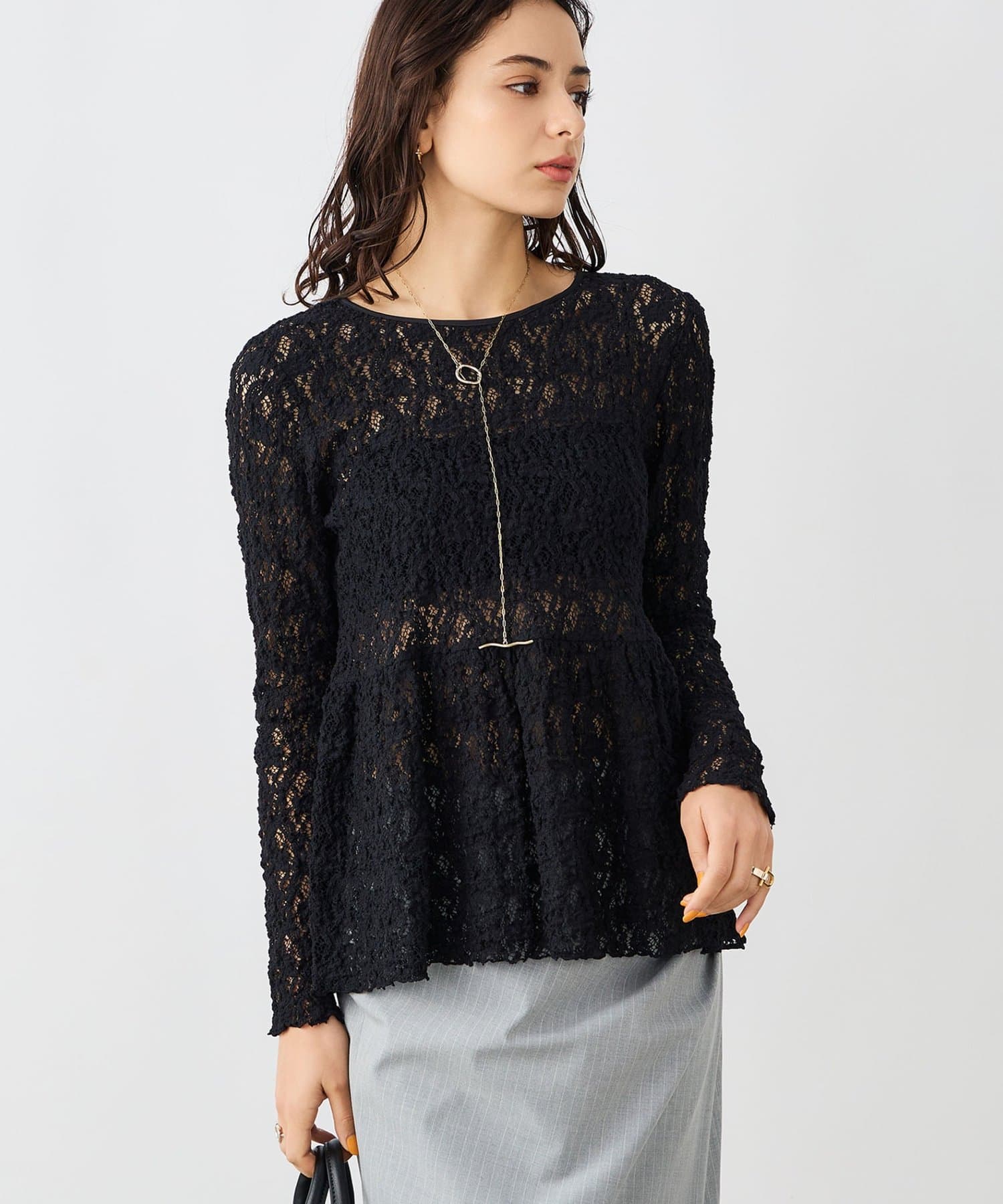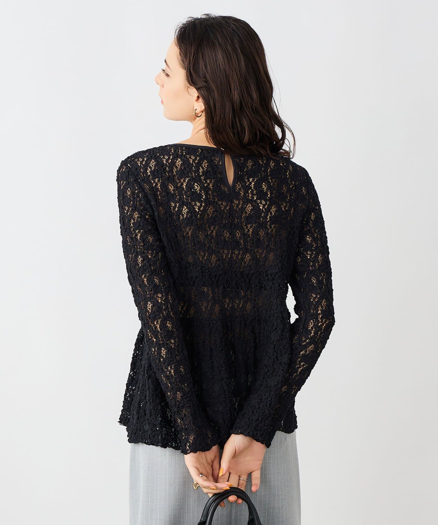 TOP > NOLLEY'S > レディース > トップス > シャツ/ブラウス(ボタン) > ウォッシャブルストレッチレースペプラムプルオーバー