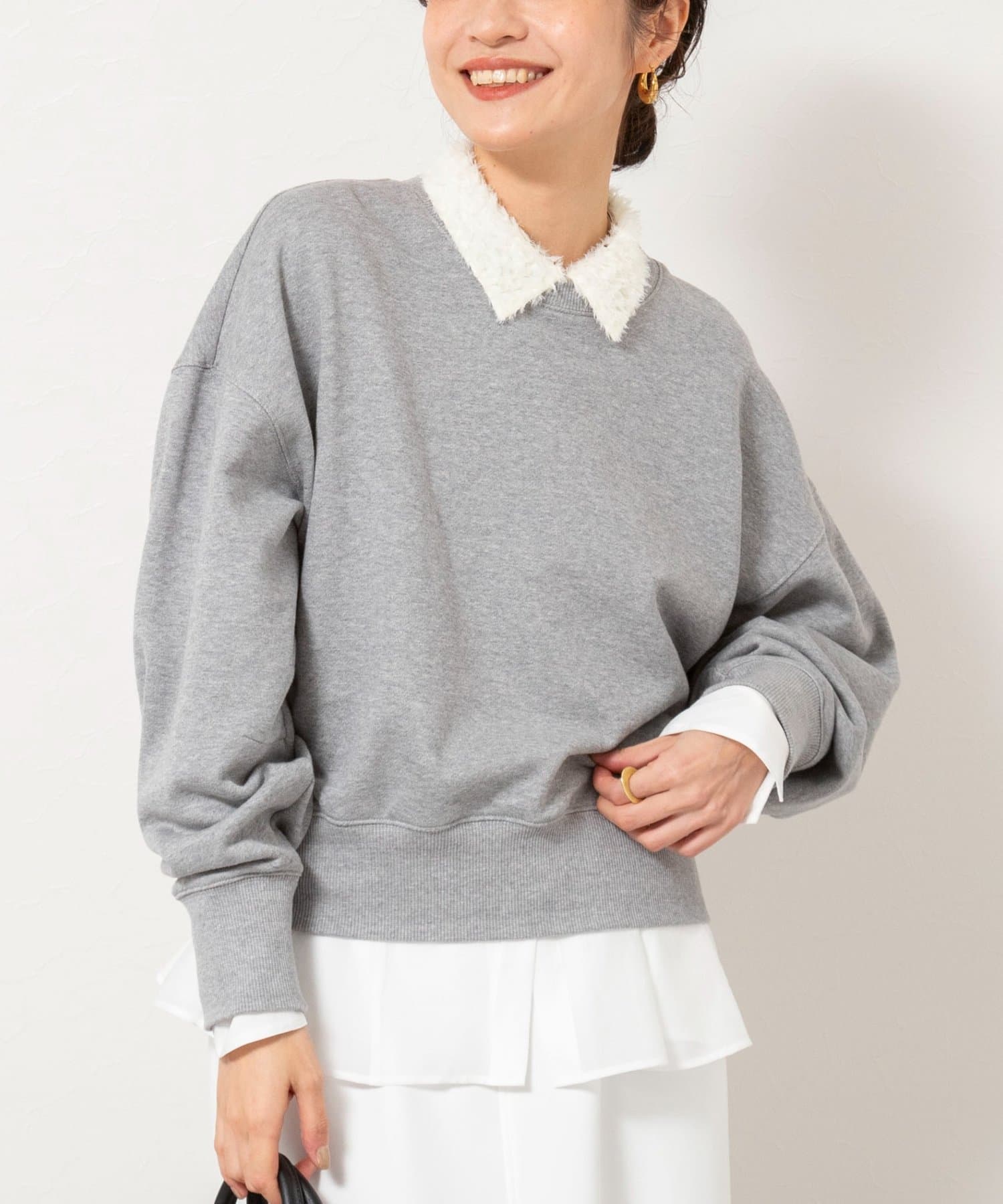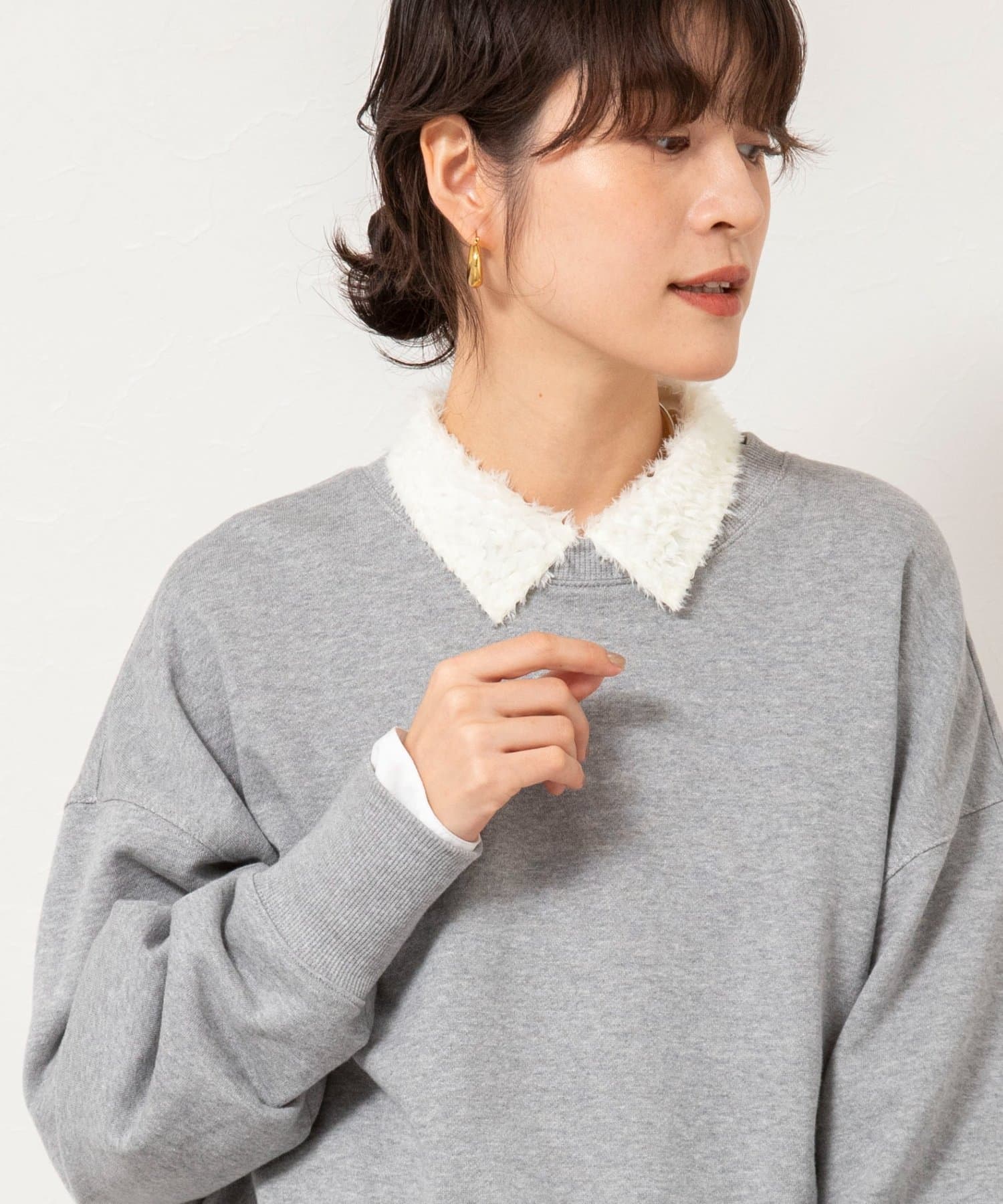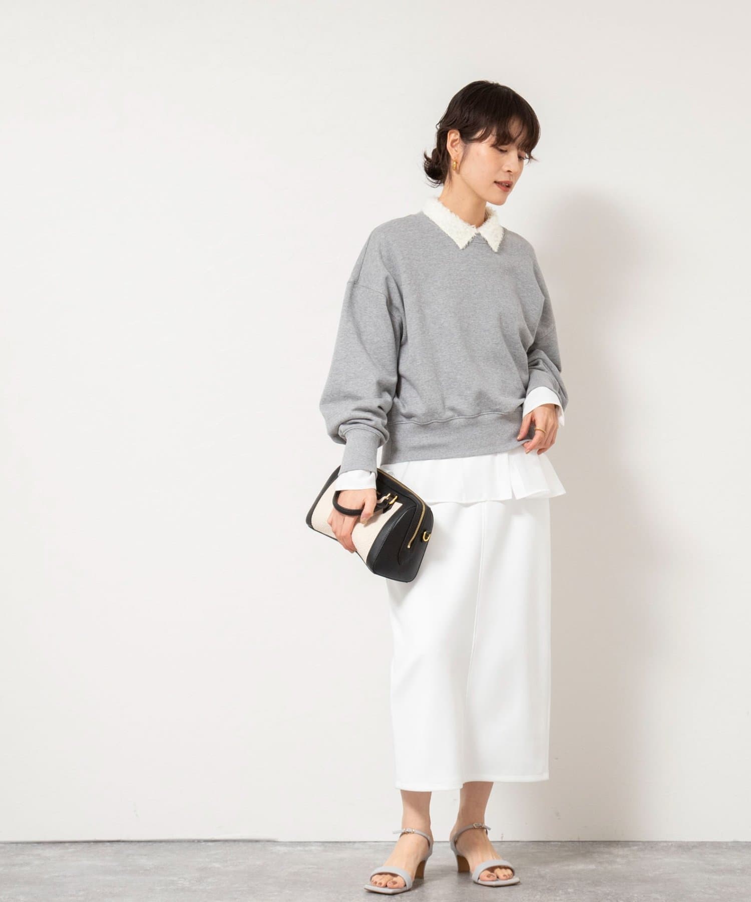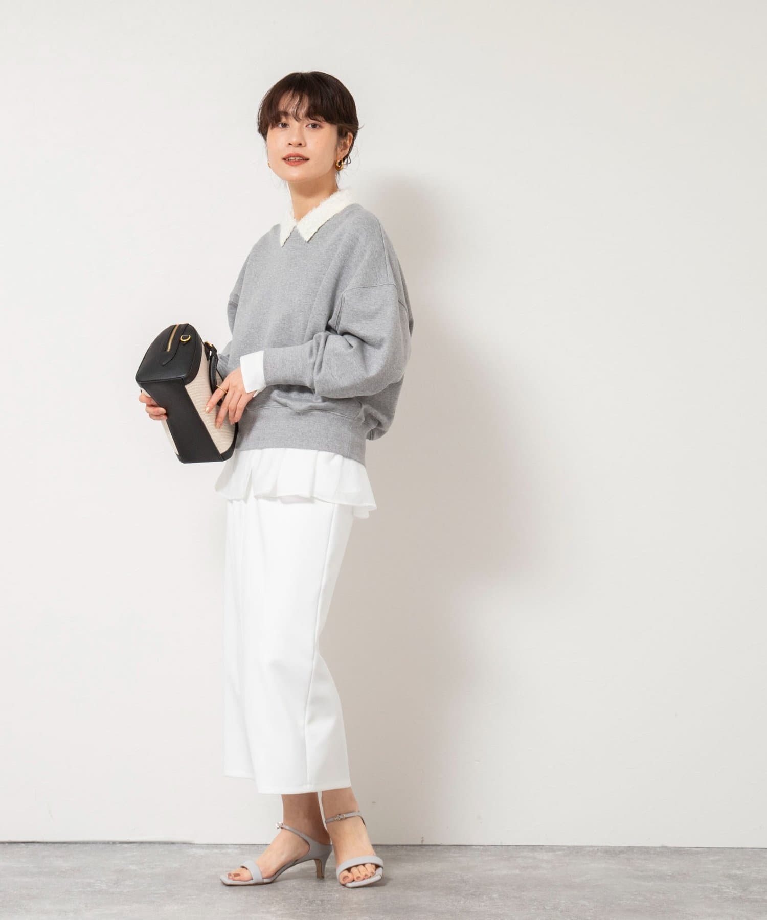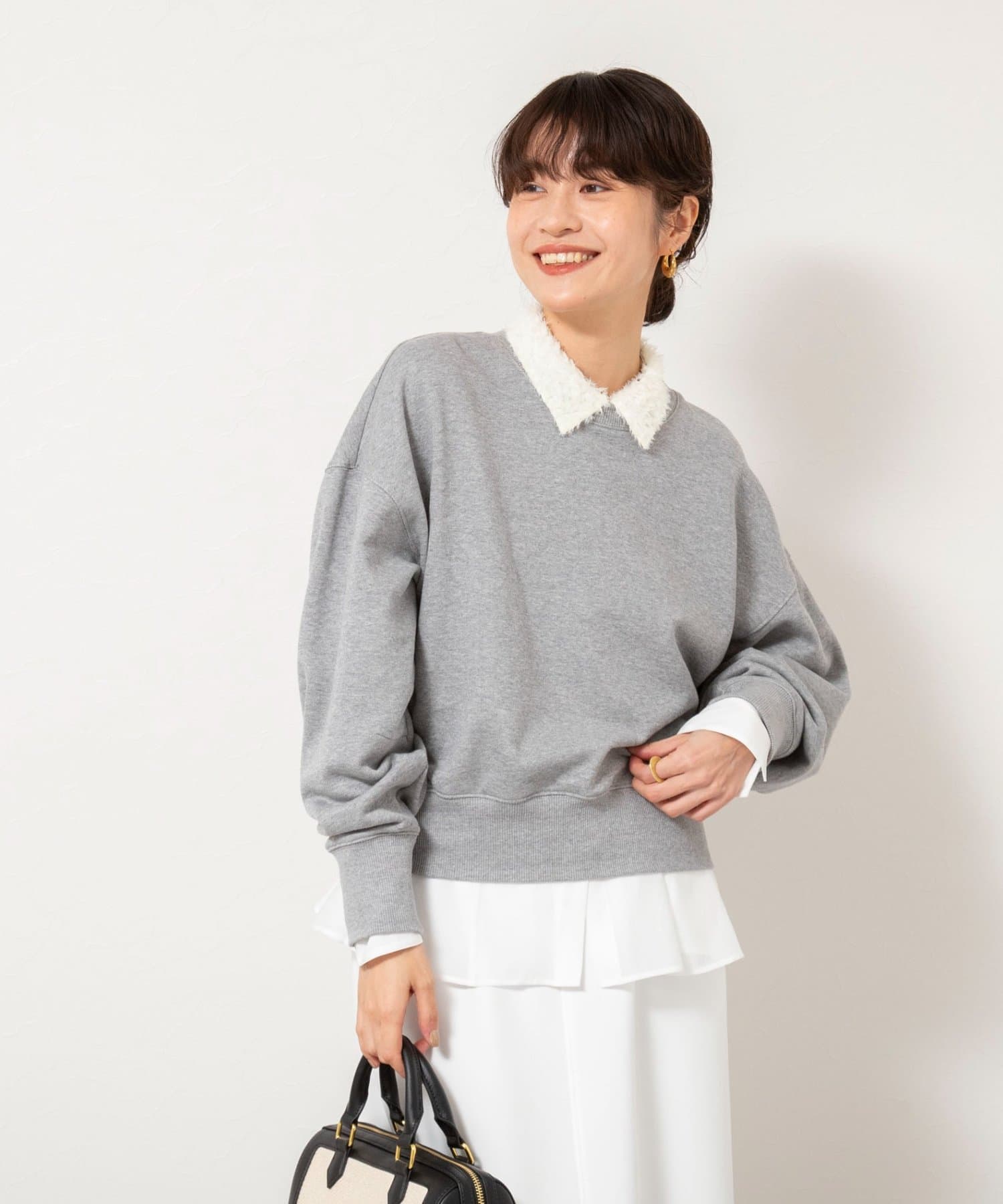 ・ポイントの襟と、長めのカフスをニットやスエットからのぞかせるのもおすすめ