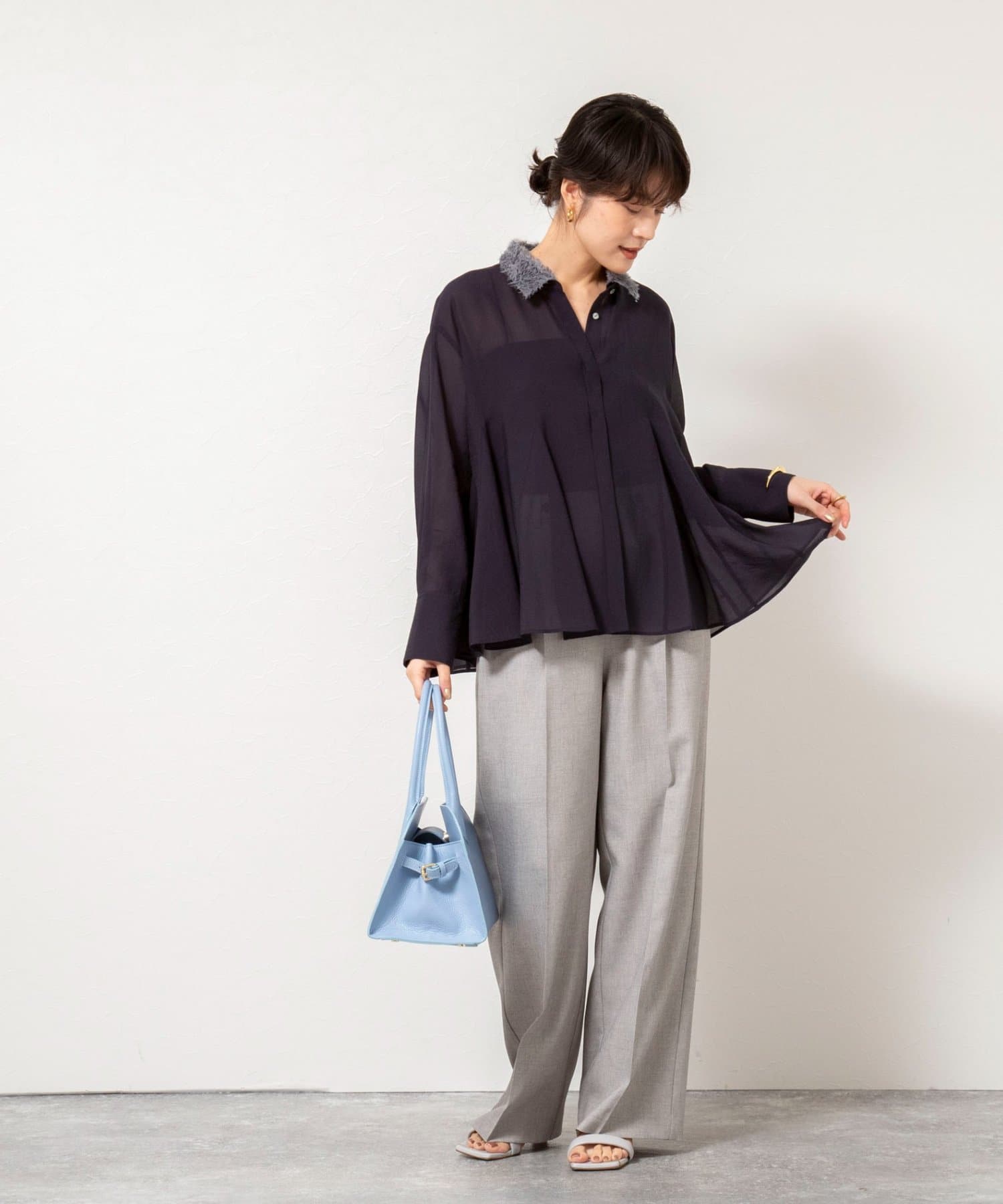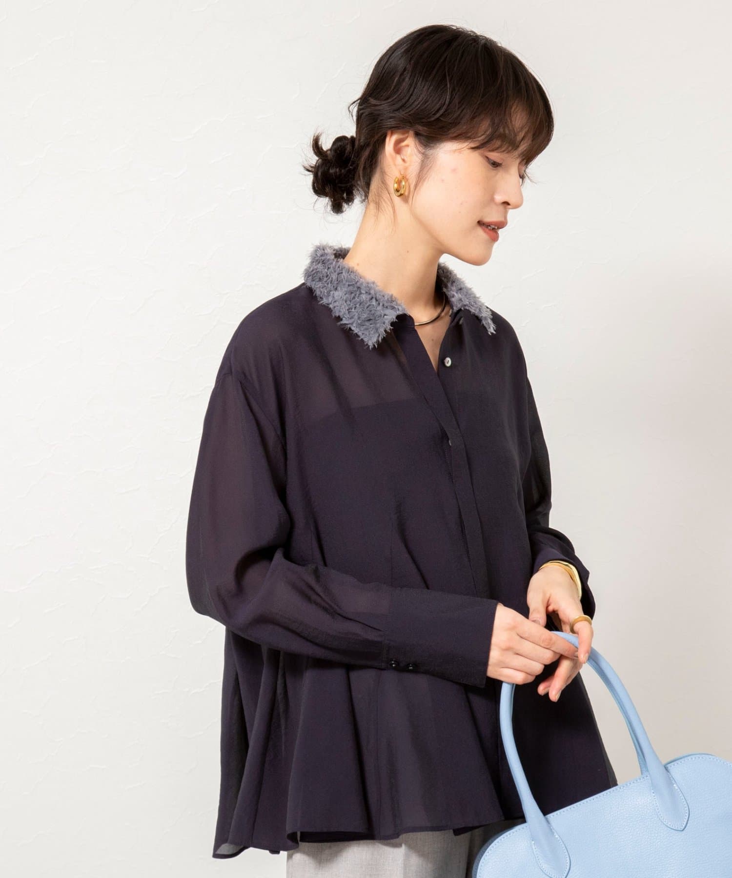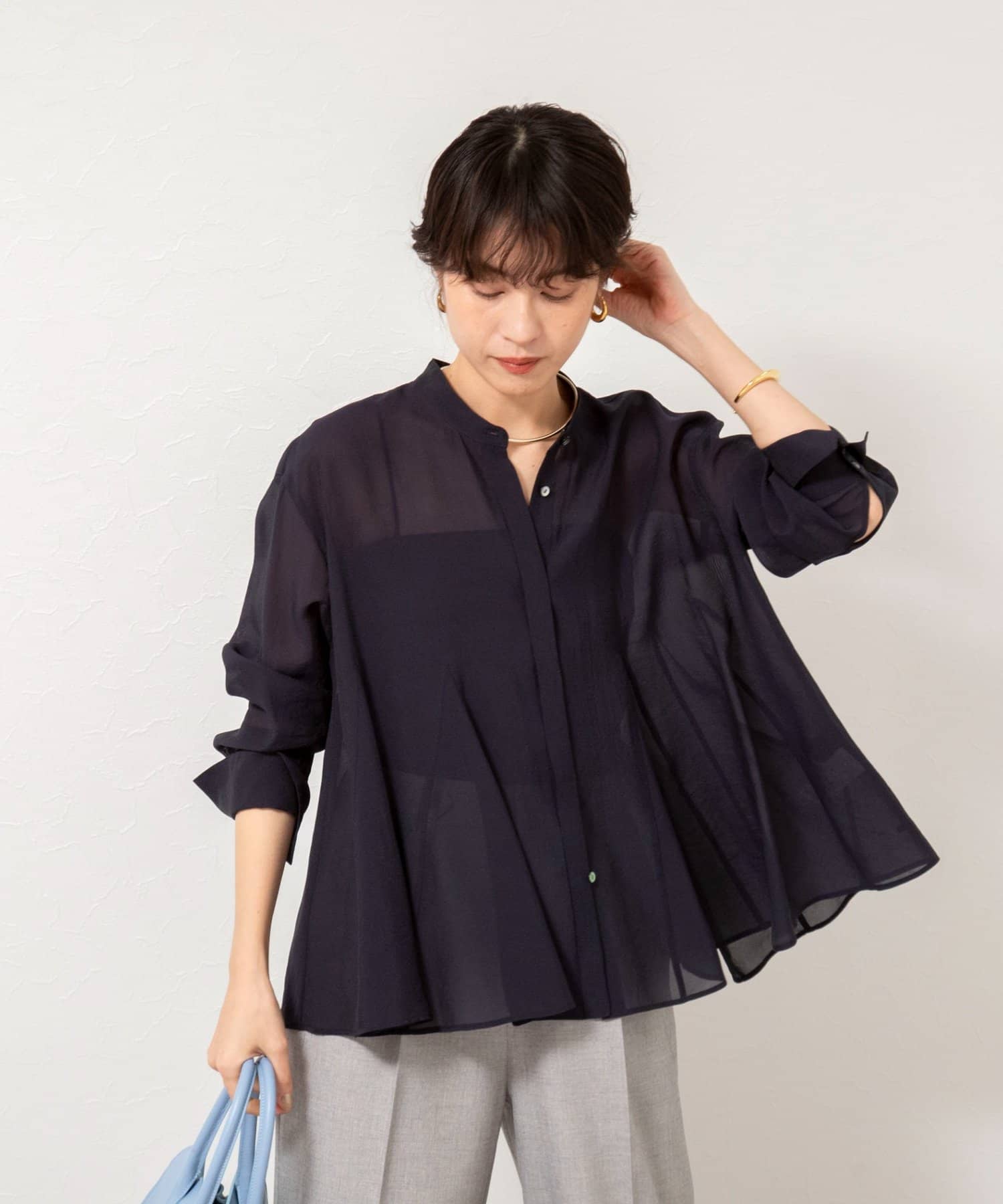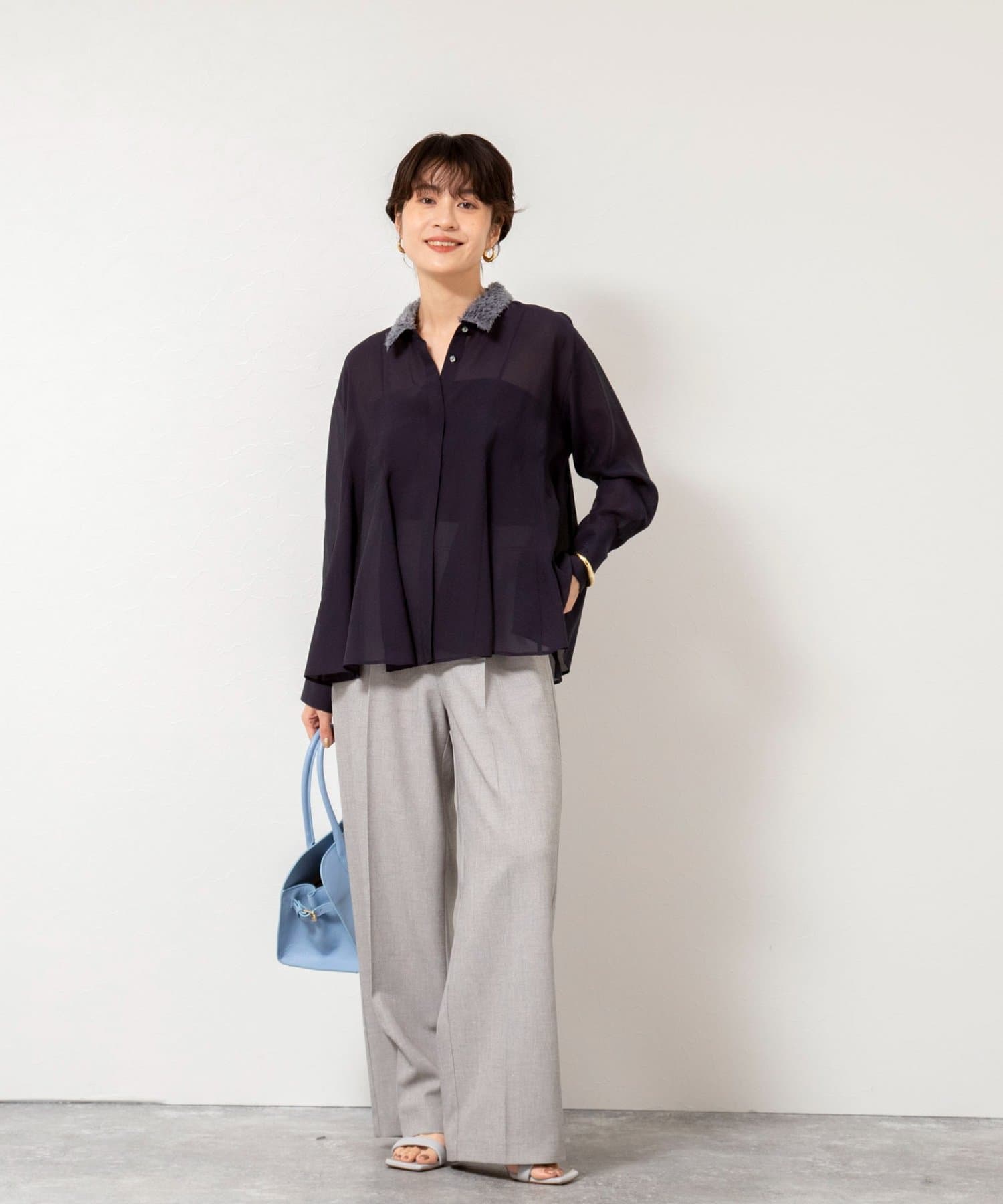 TOP > NOLLEY'S > レディース > トップス > シャツ/ブラウス(ボタン) > チュール襟付オーガンジーフレアシャツブラウス