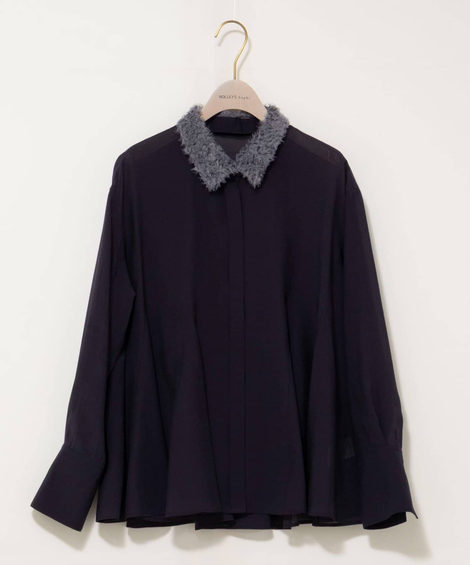 • NOLLEY'S(ノーリーズ) チュール襟付オーガンジーフレアシャツブラウス