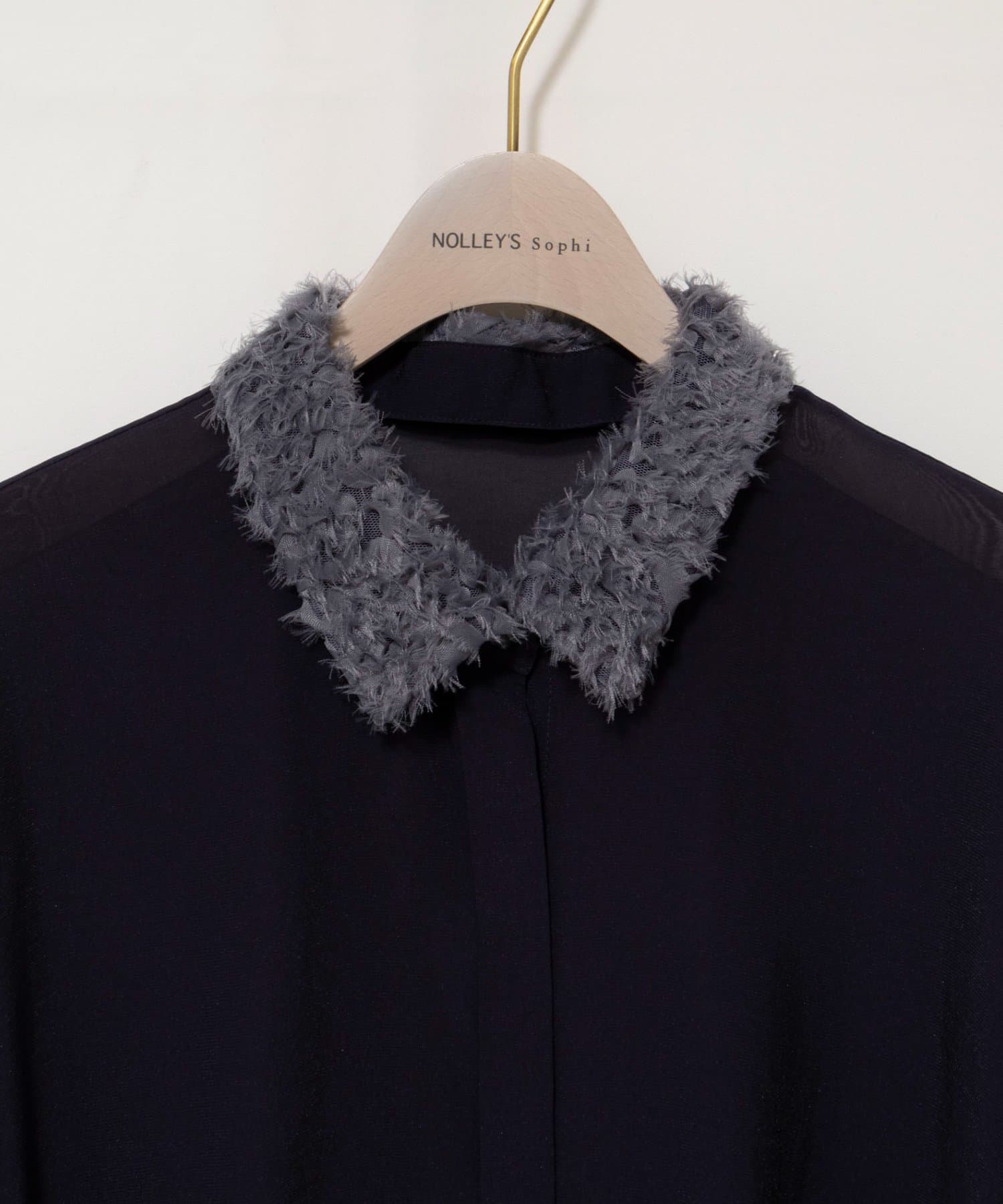 NOLLEY'S(ノーリーズ) チュール襟付オーガンジーフレアシャツブラウス