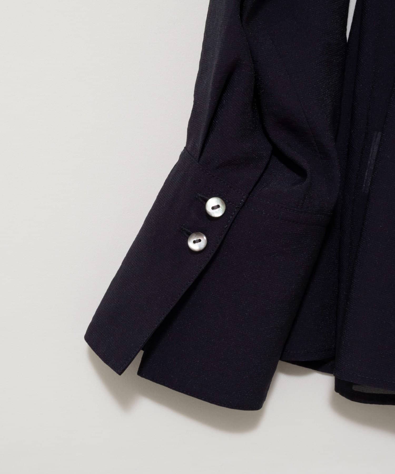 ・襟は釦で取り外しができ、シンプルなスタンドカラーブラウスとしても着用可能