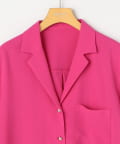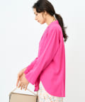 ・ストレッチの合繊素材を使用したオープンカラーのとろみシャツブラウス