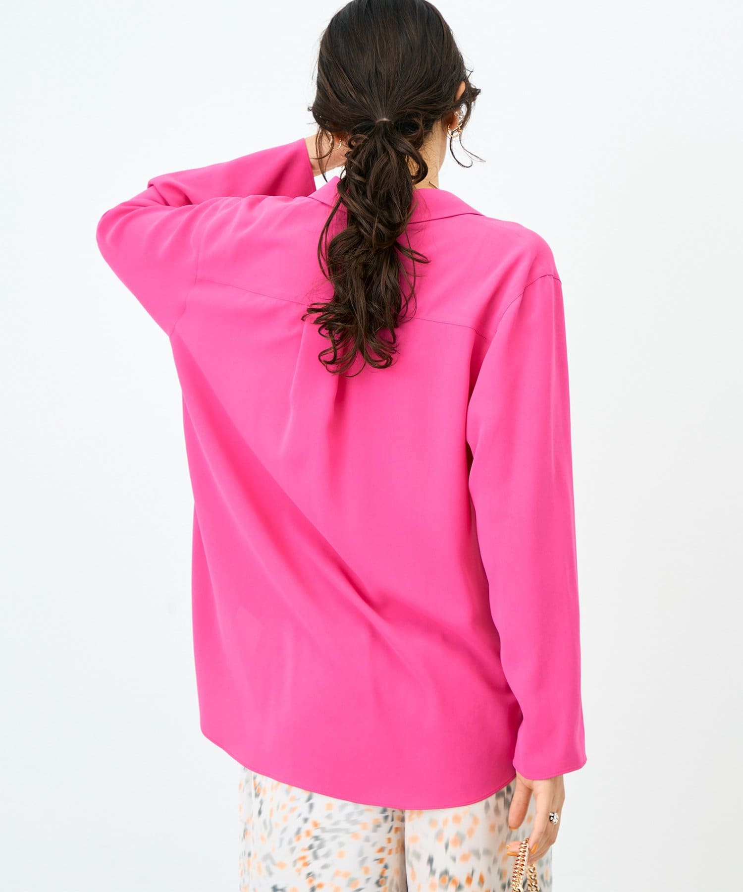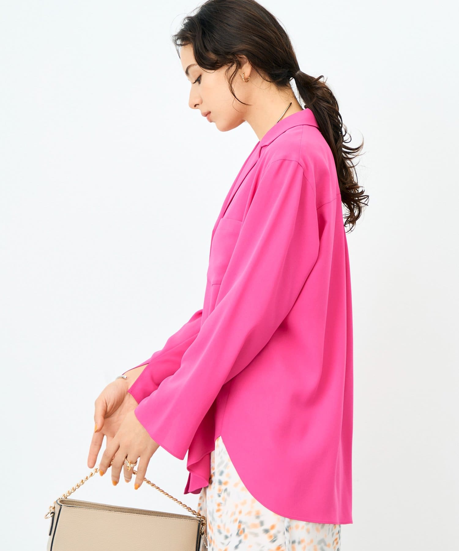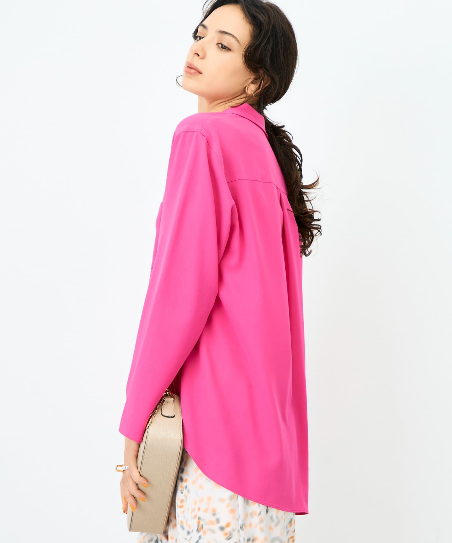 ・落ち感のある生地とゆとりを持たせたサイズ感が体のラインを程よくひろう女性らしい1枚