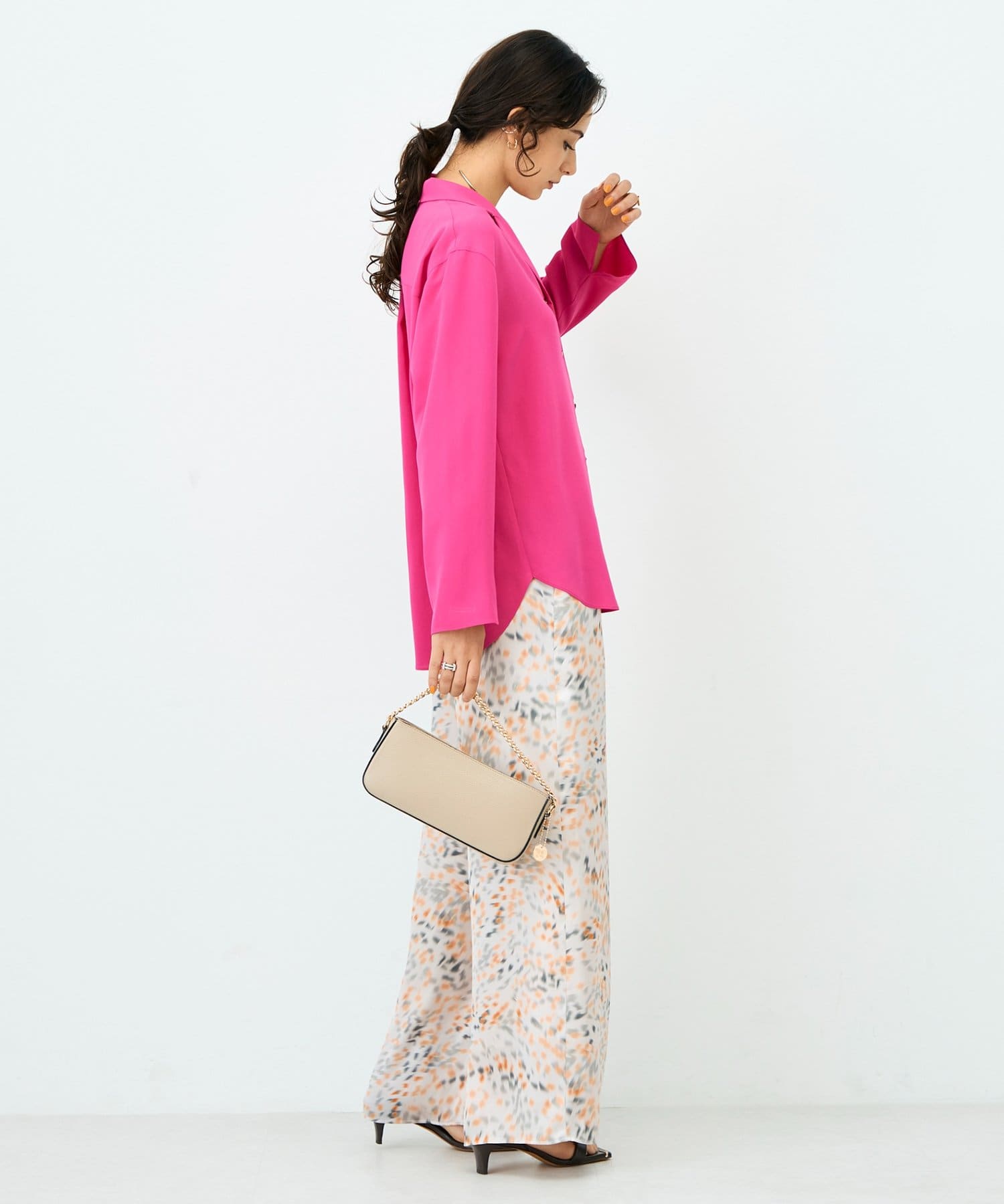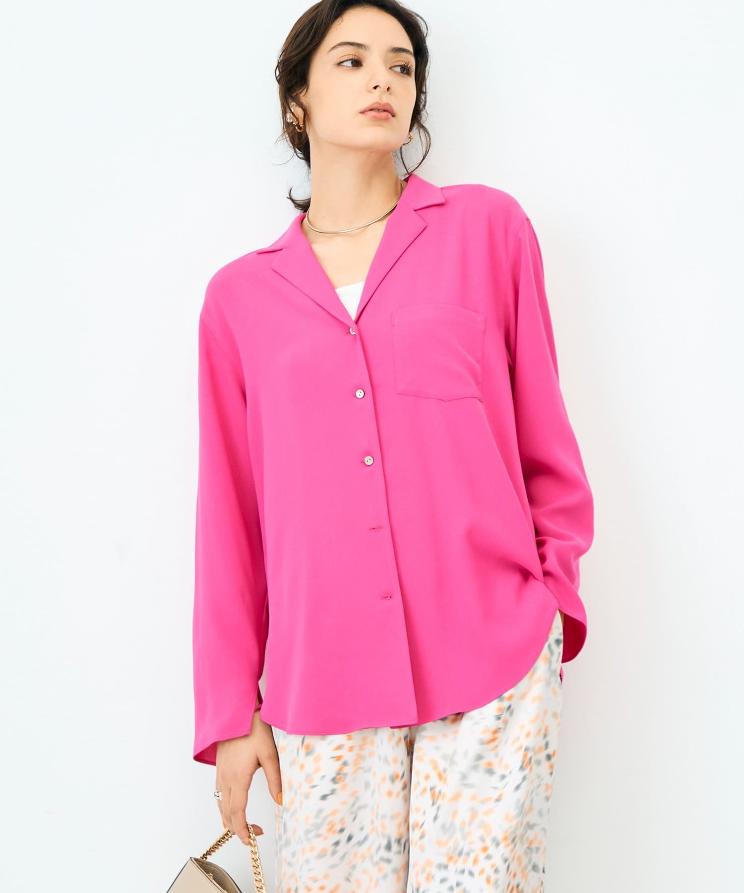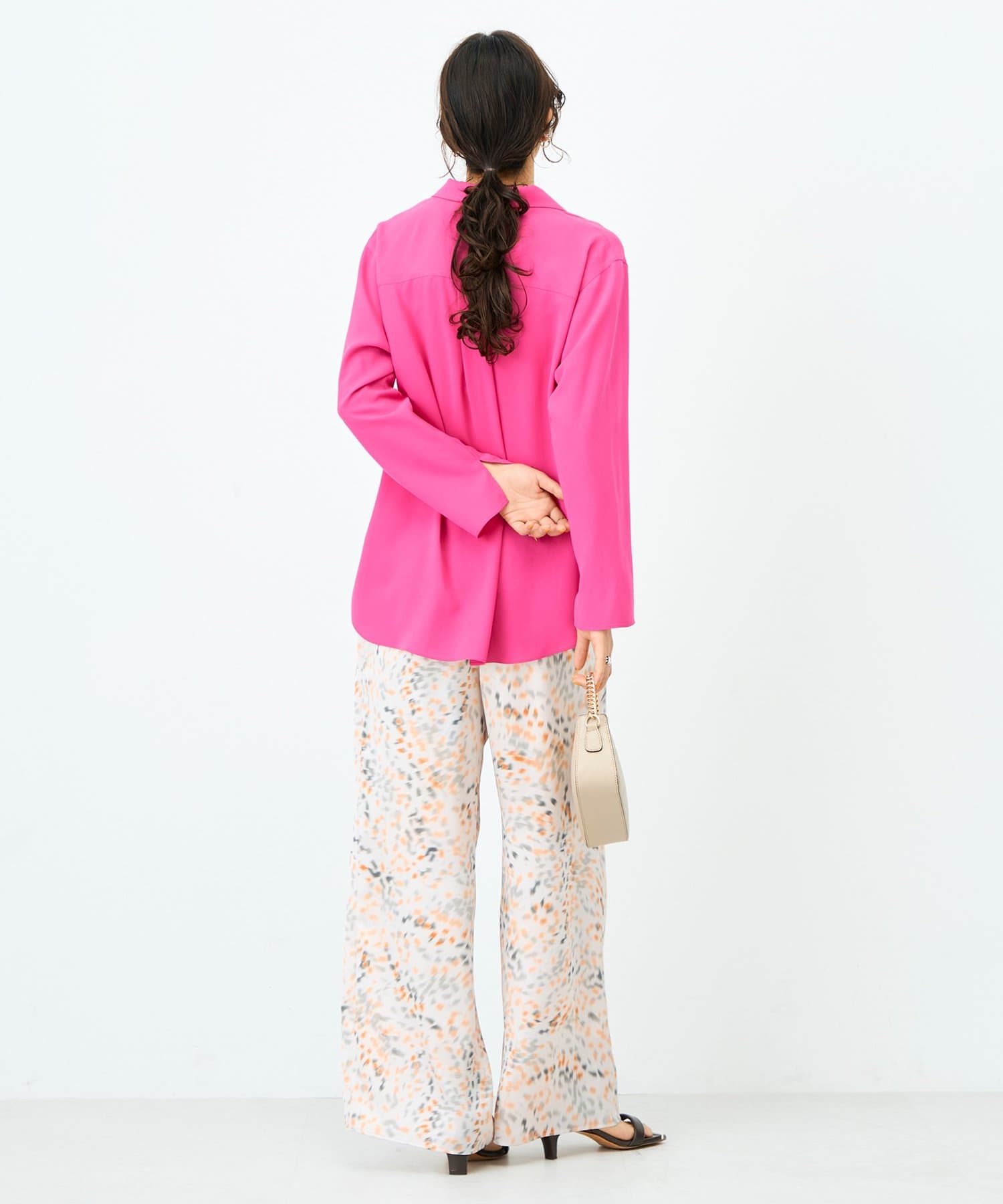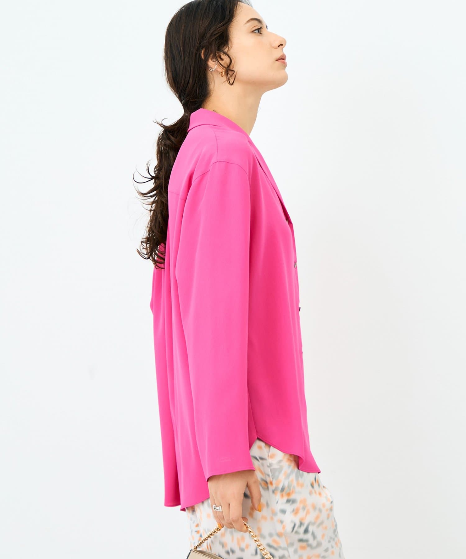 ・落ち感のある生地とゆとりを持たせたサイズ感が体のラインを程よくひろう女性らしい1枚