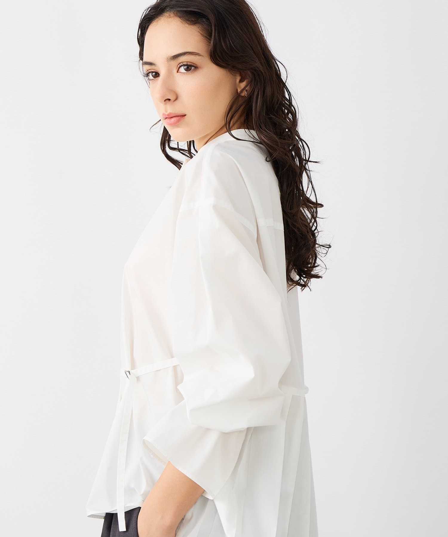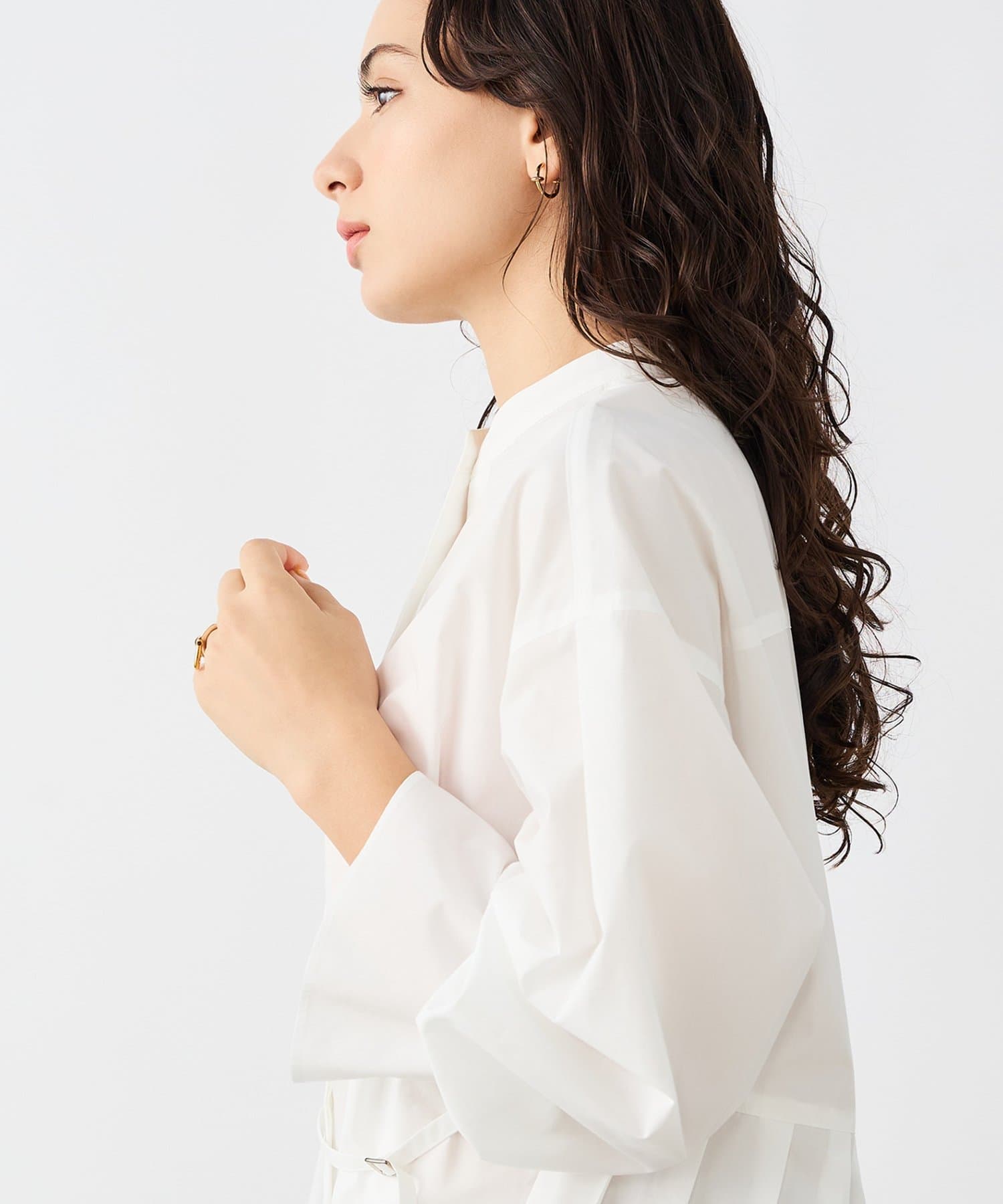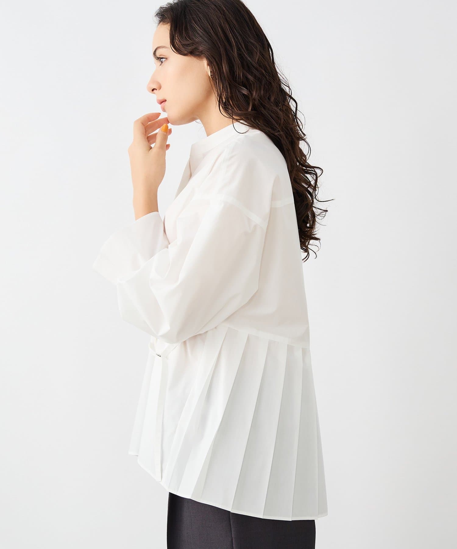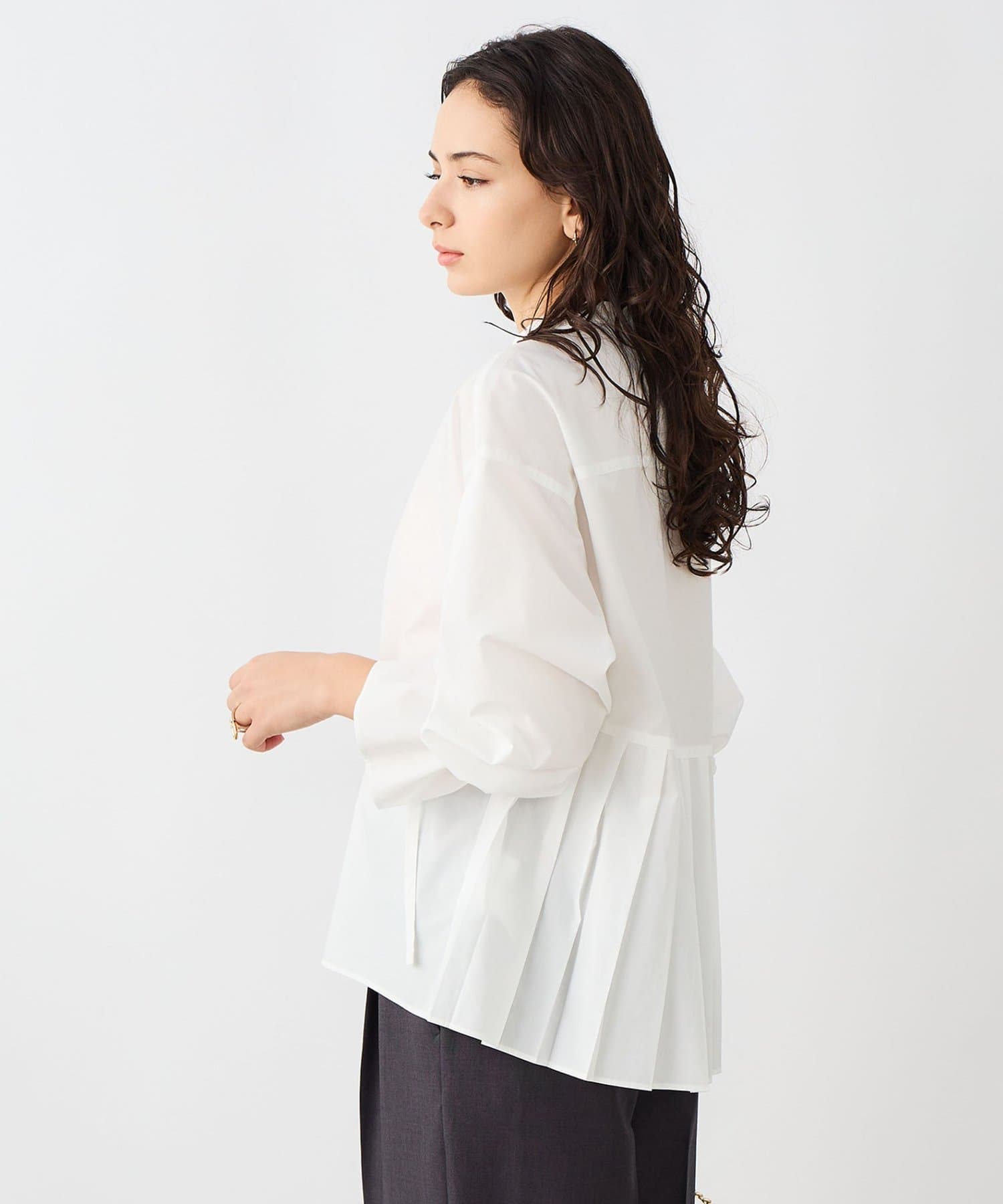 ウォッシャブルドレープポプリンバックプリーツシャツ