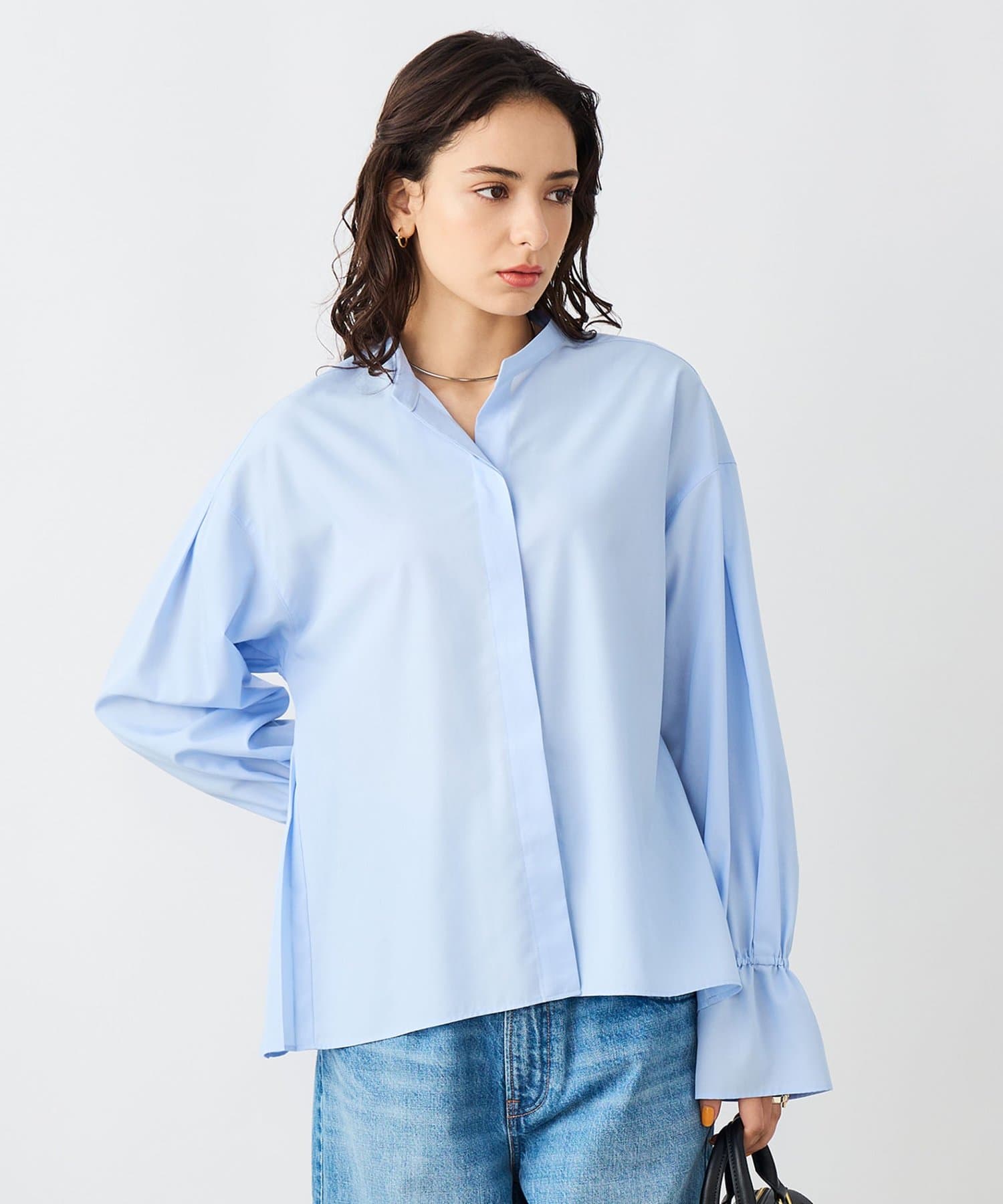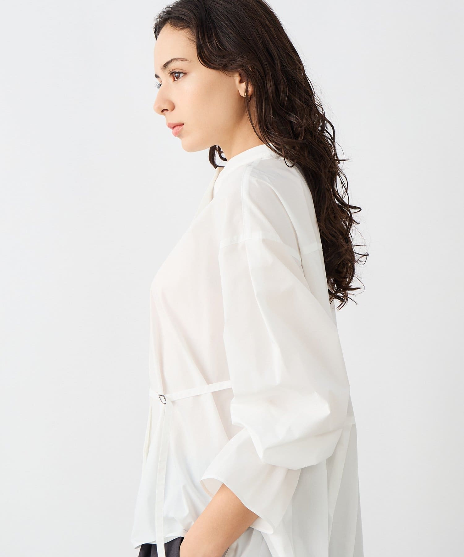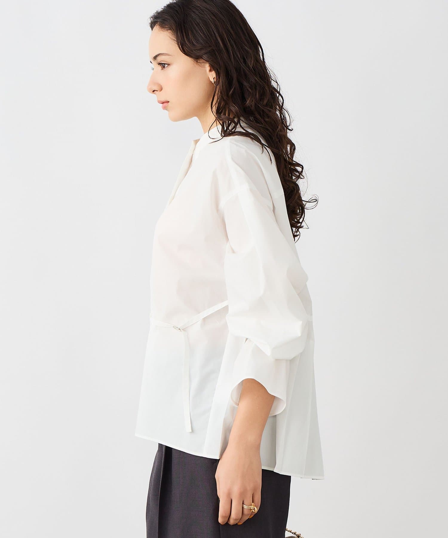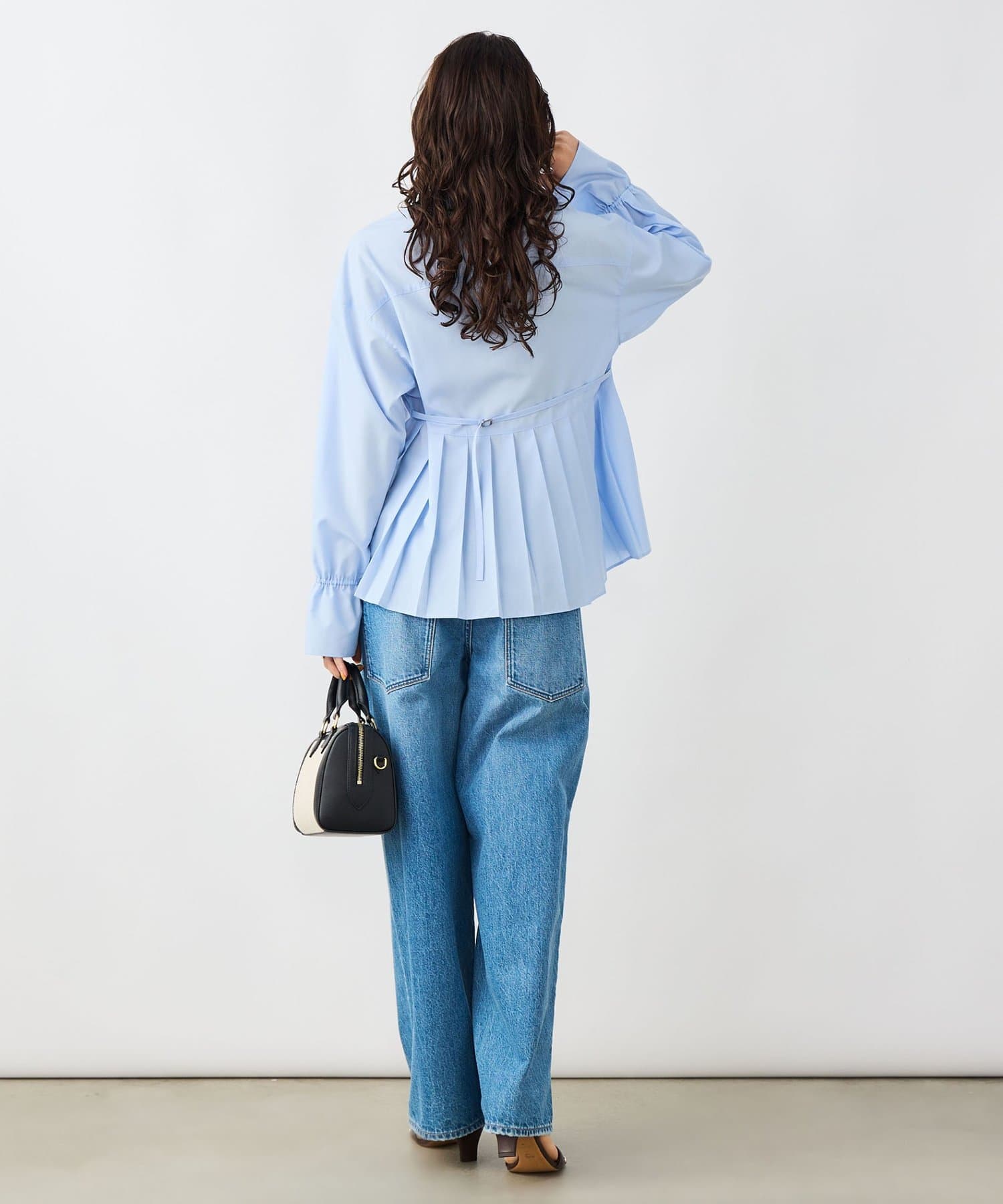 ウォッシャブルドレープポプリンバックプリーツシャツ