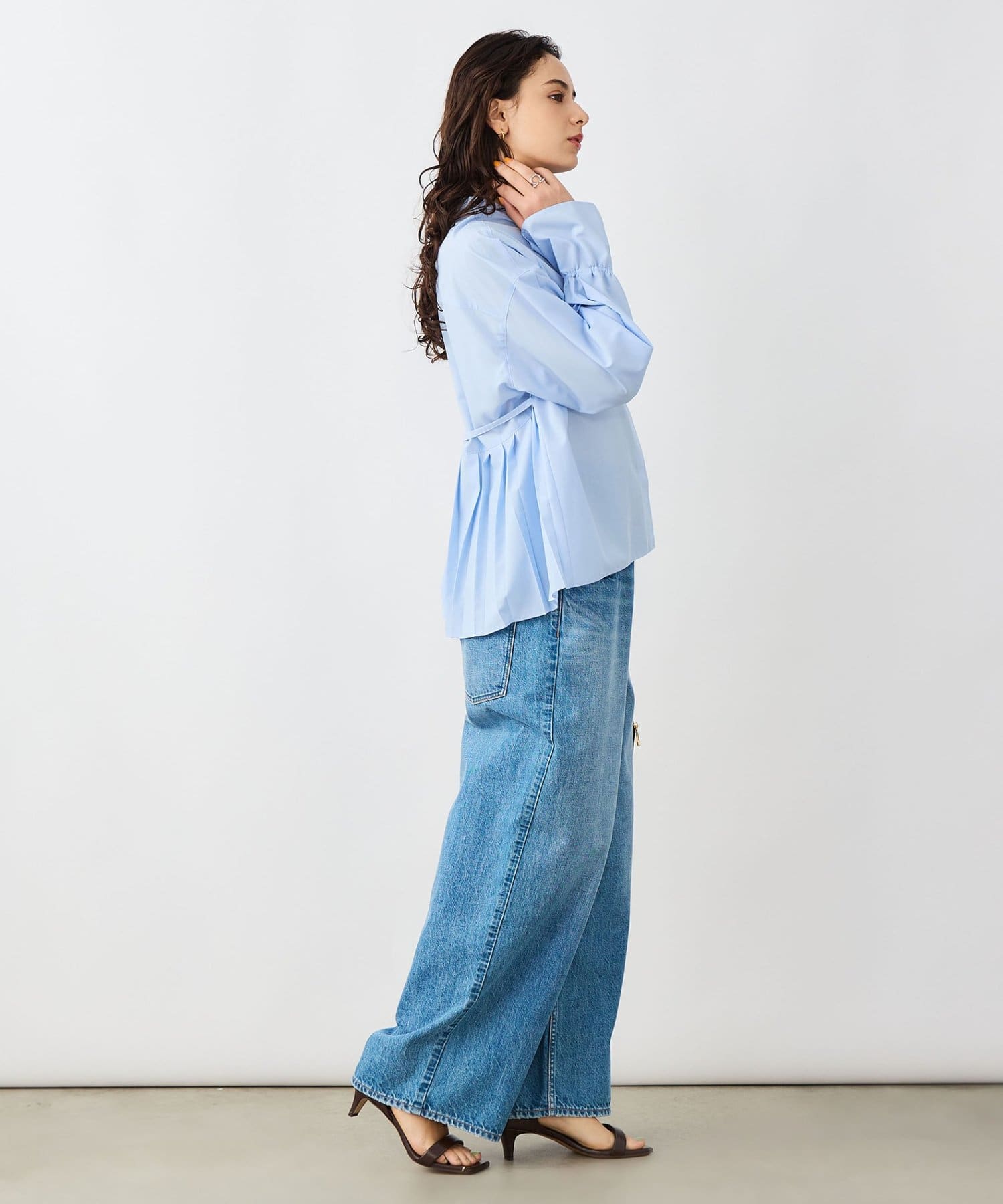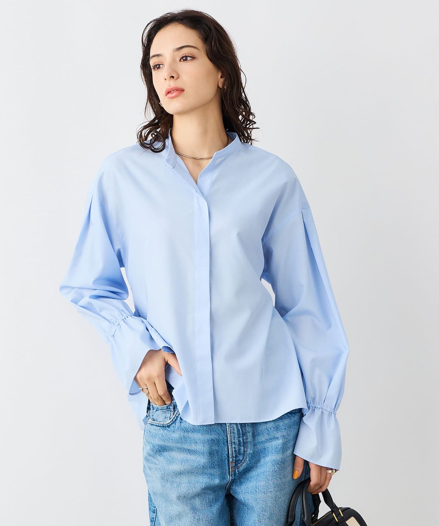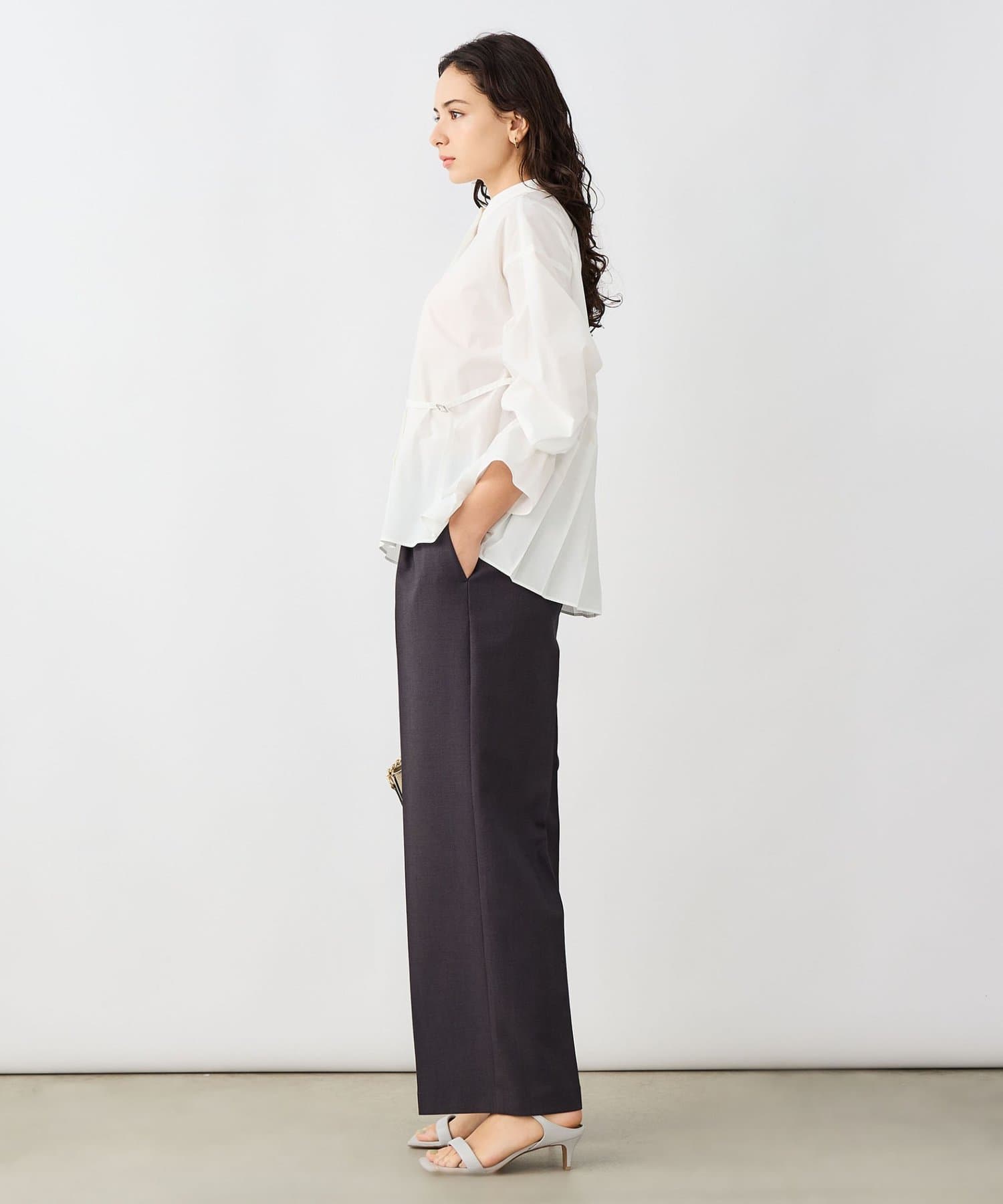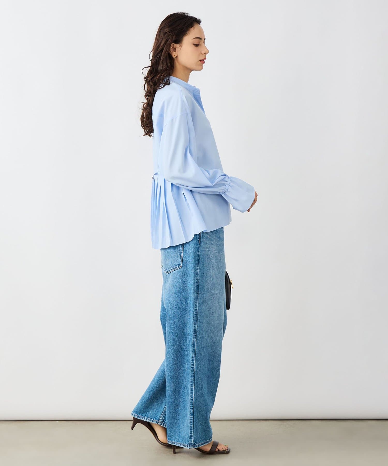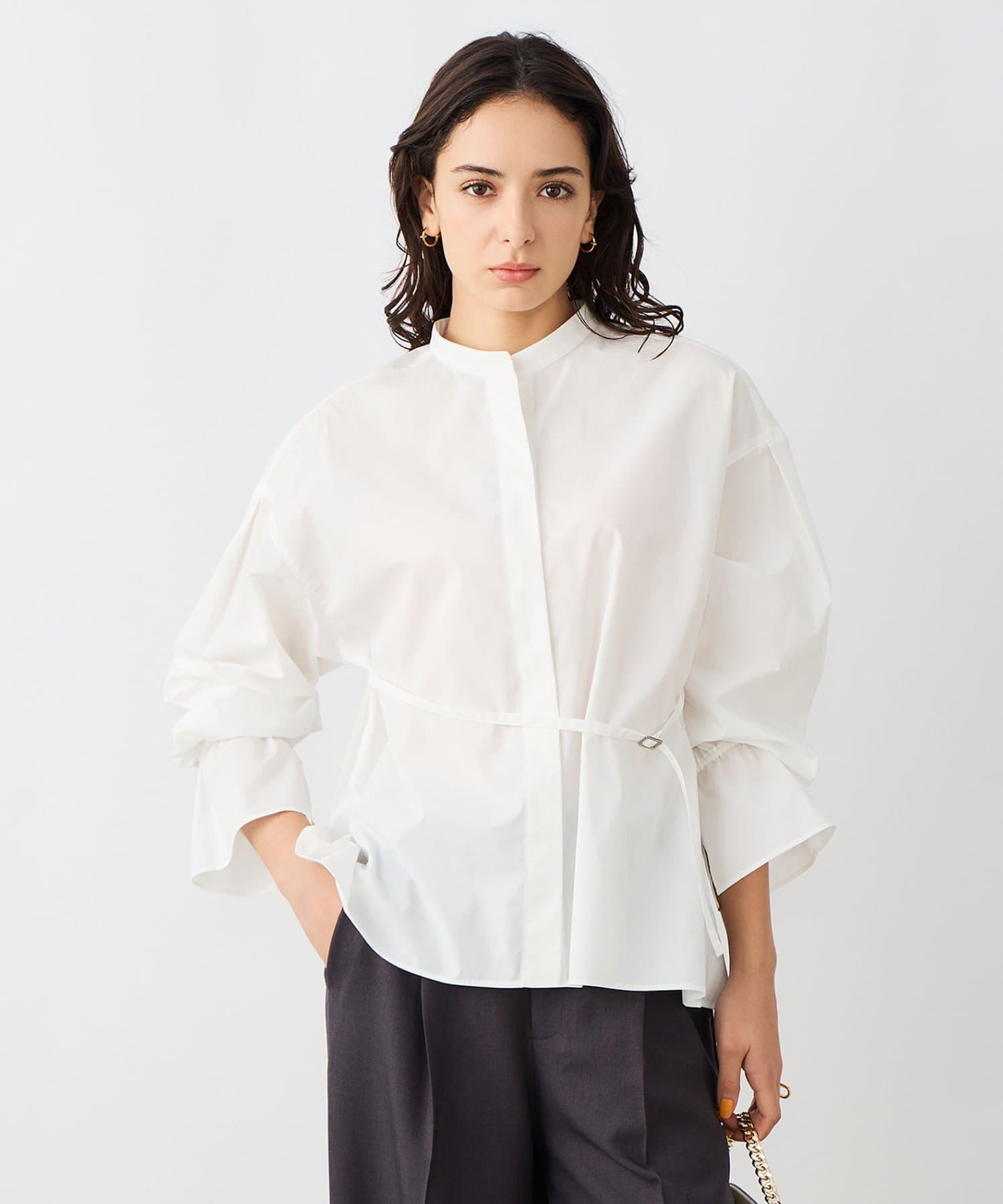 ウォッシャブルドレープポプリンバックプリーツシャツ