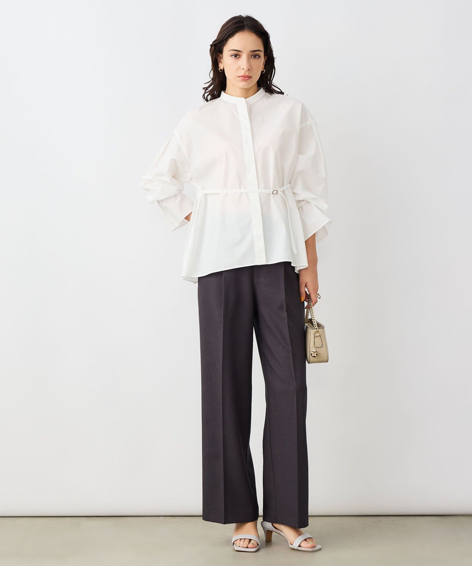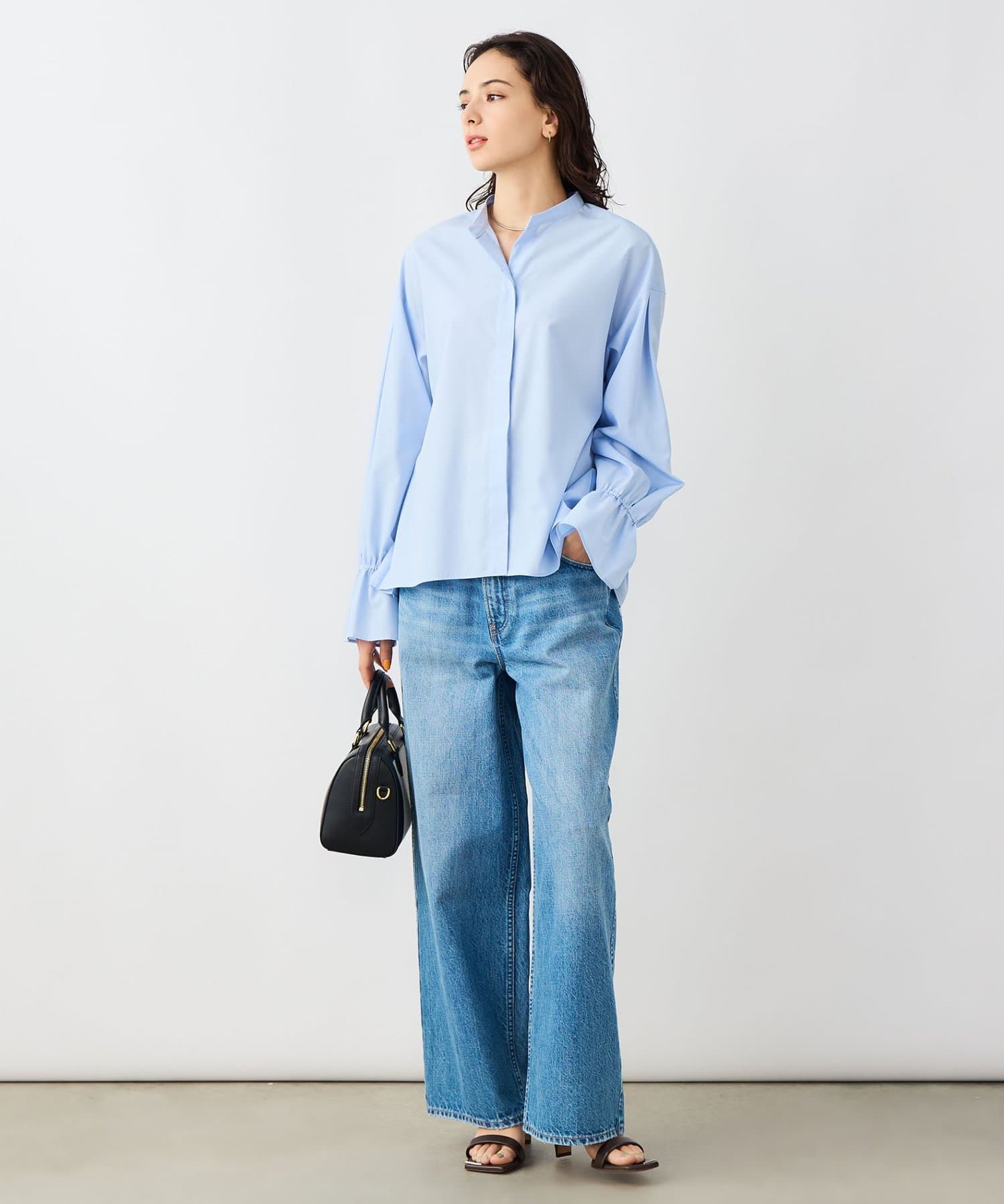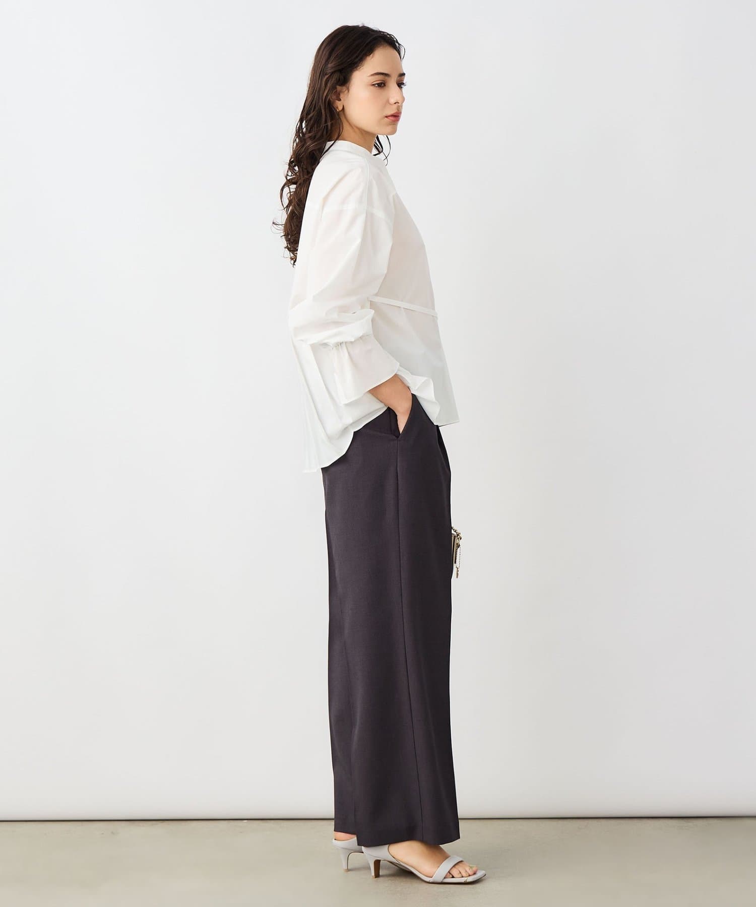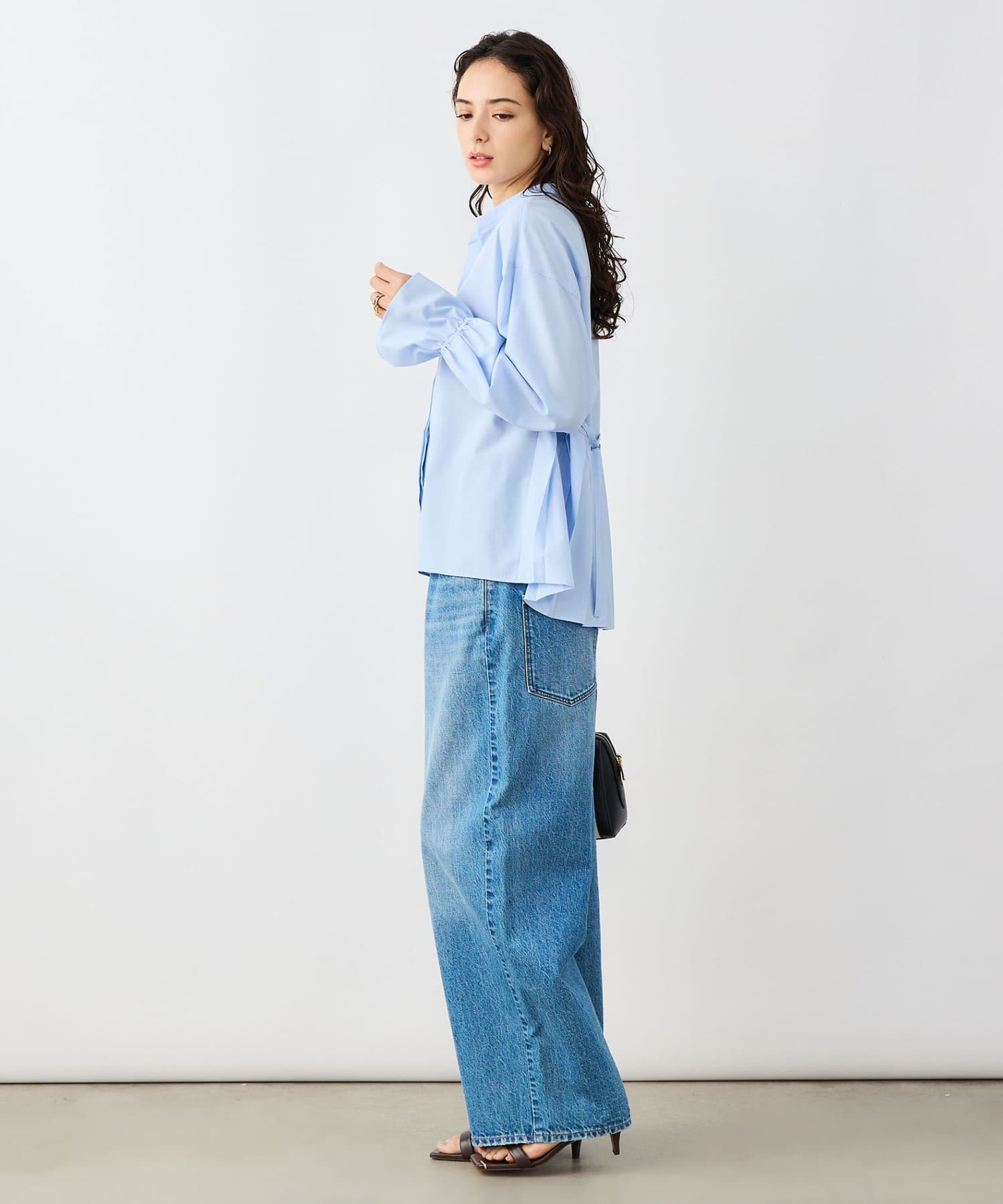 ウォッシャブルドレープポプリンバックプリーツシャツ