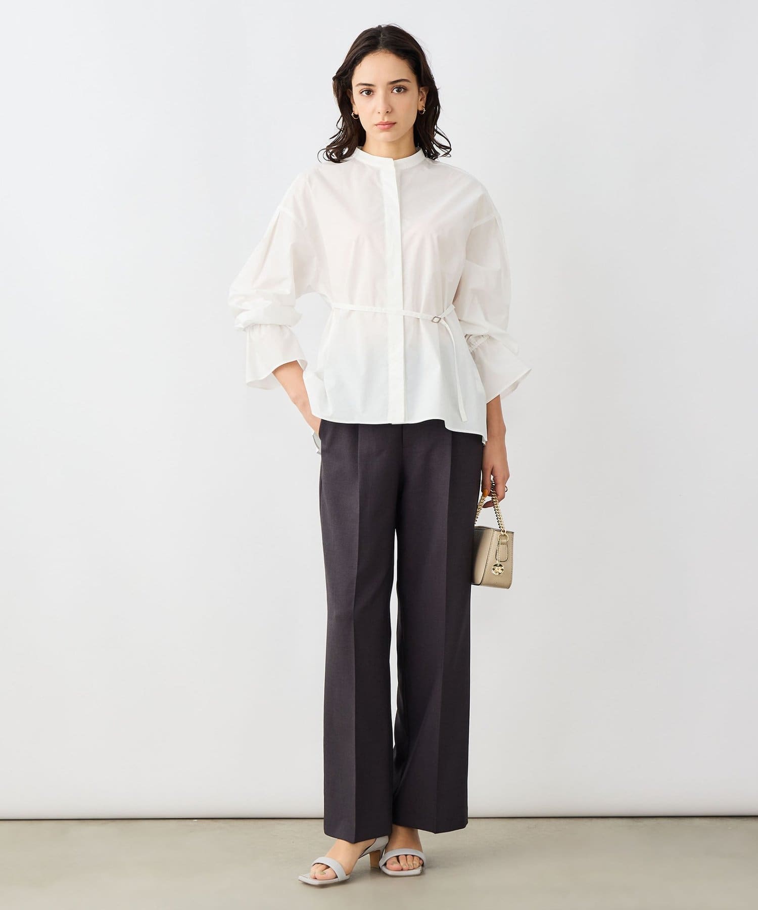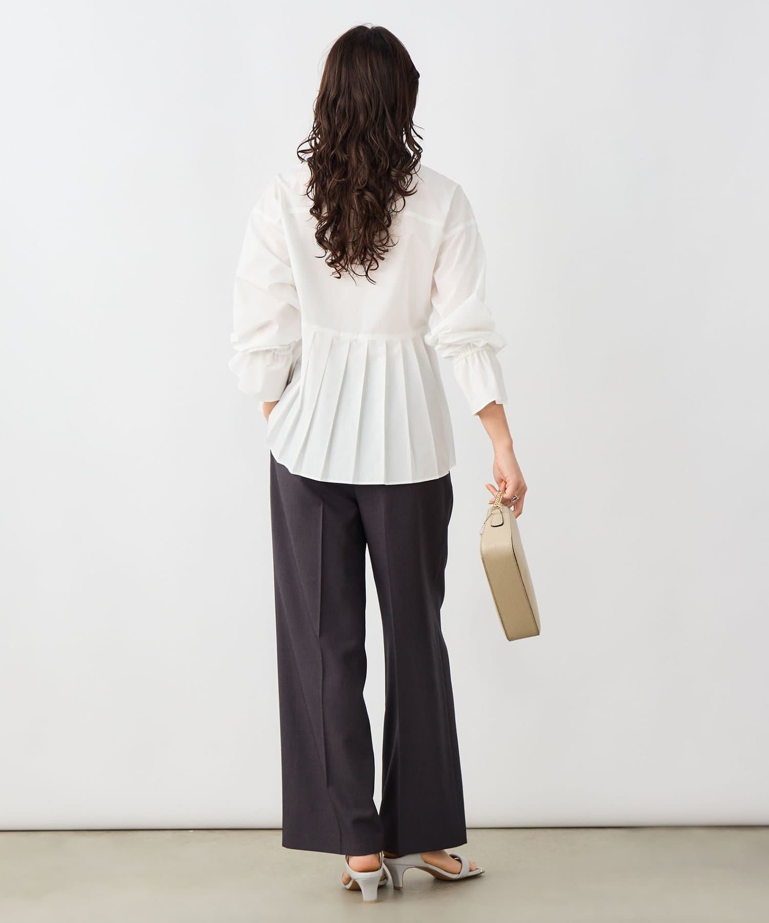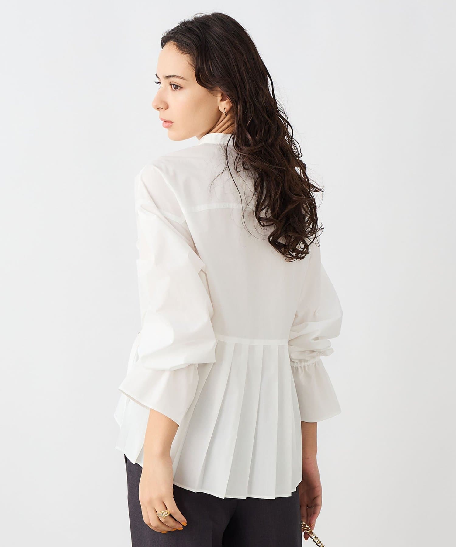 ・バックプリーツシャツのデザインが、一枚で決まる華ありブラウス