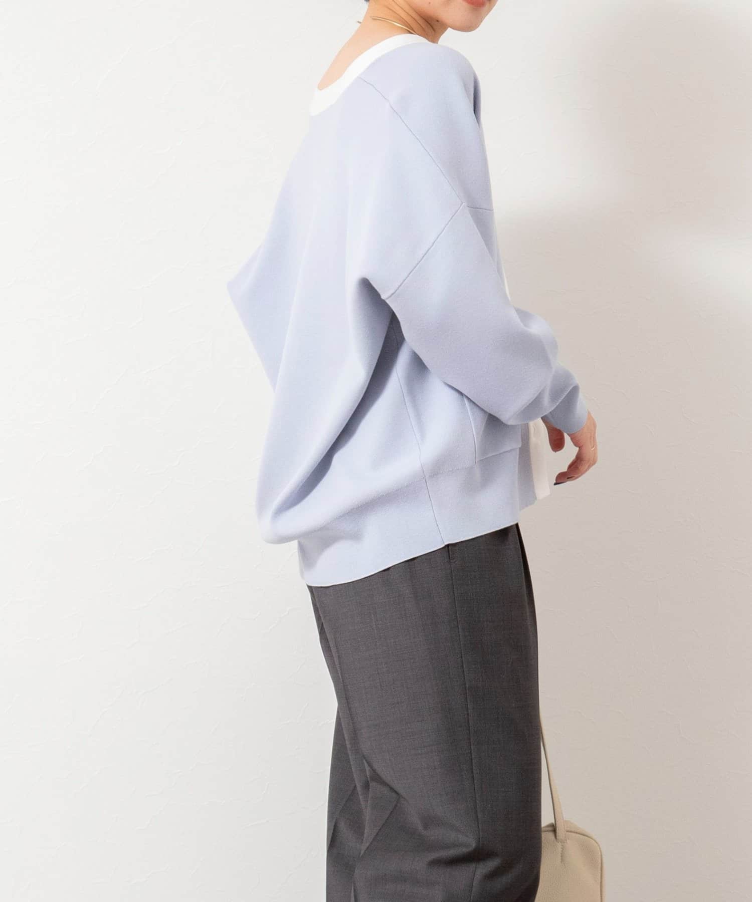 ・寒い時期には、薄手のタートルネックやシャツをインして重ね着も楽しめる一枚