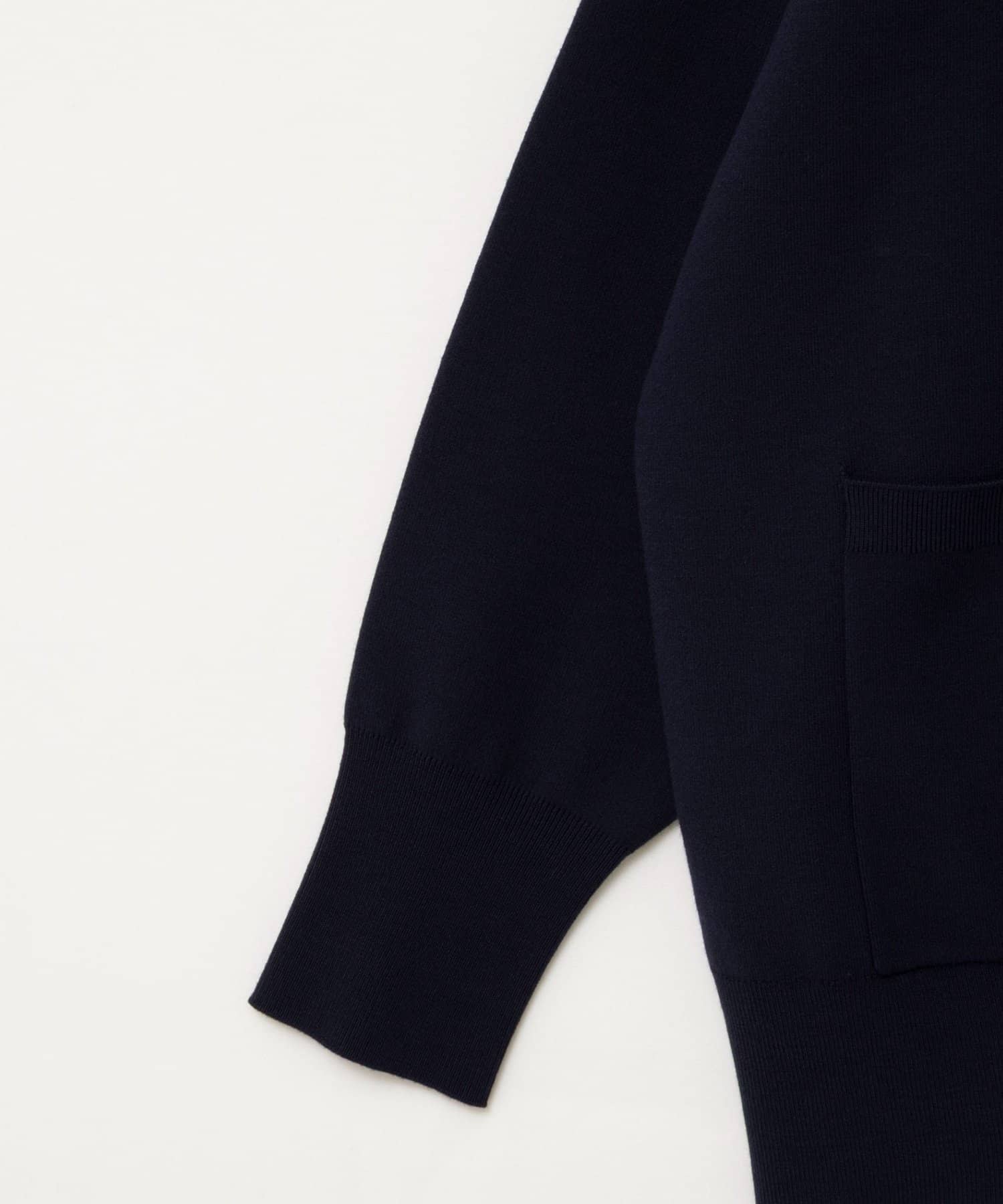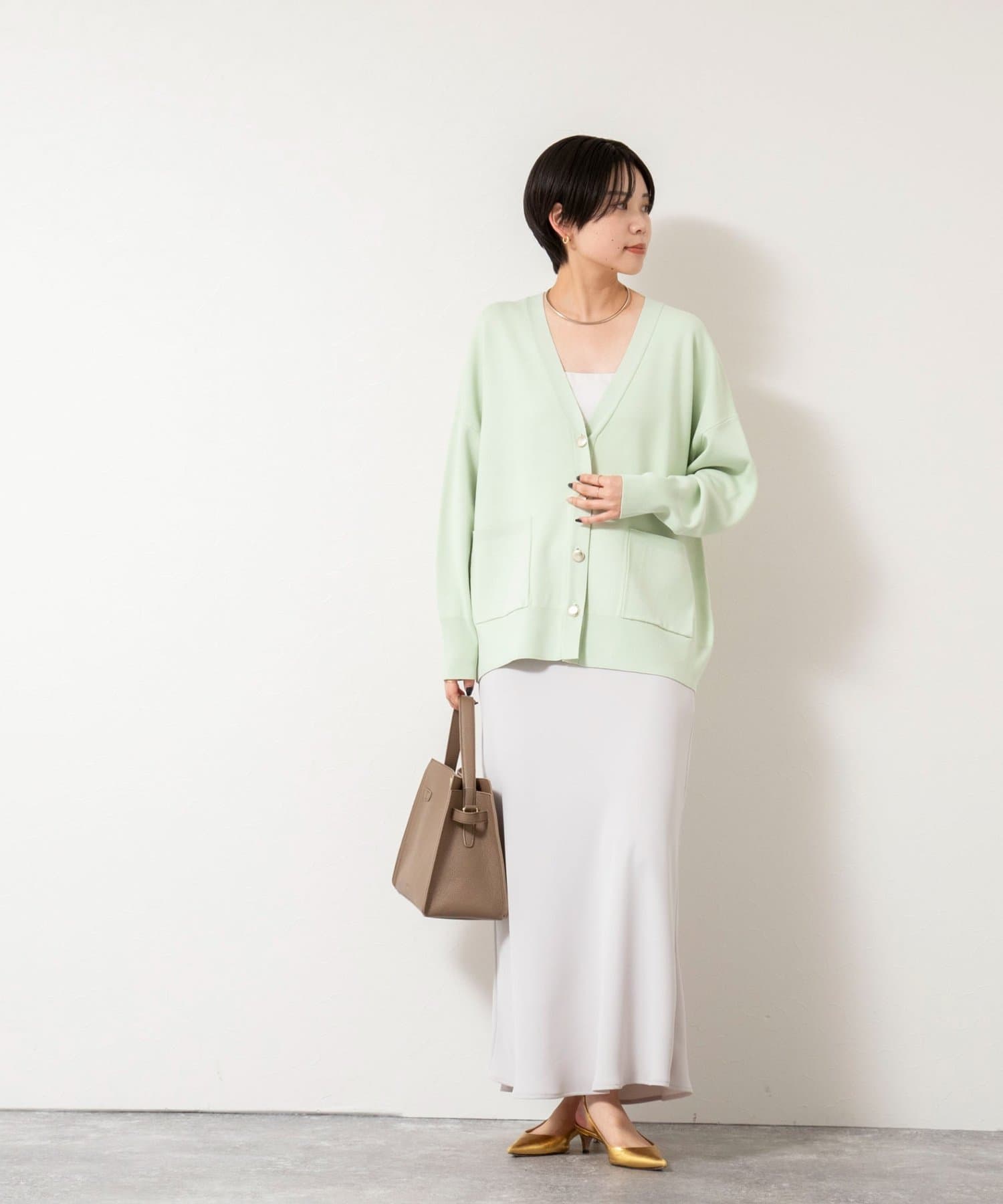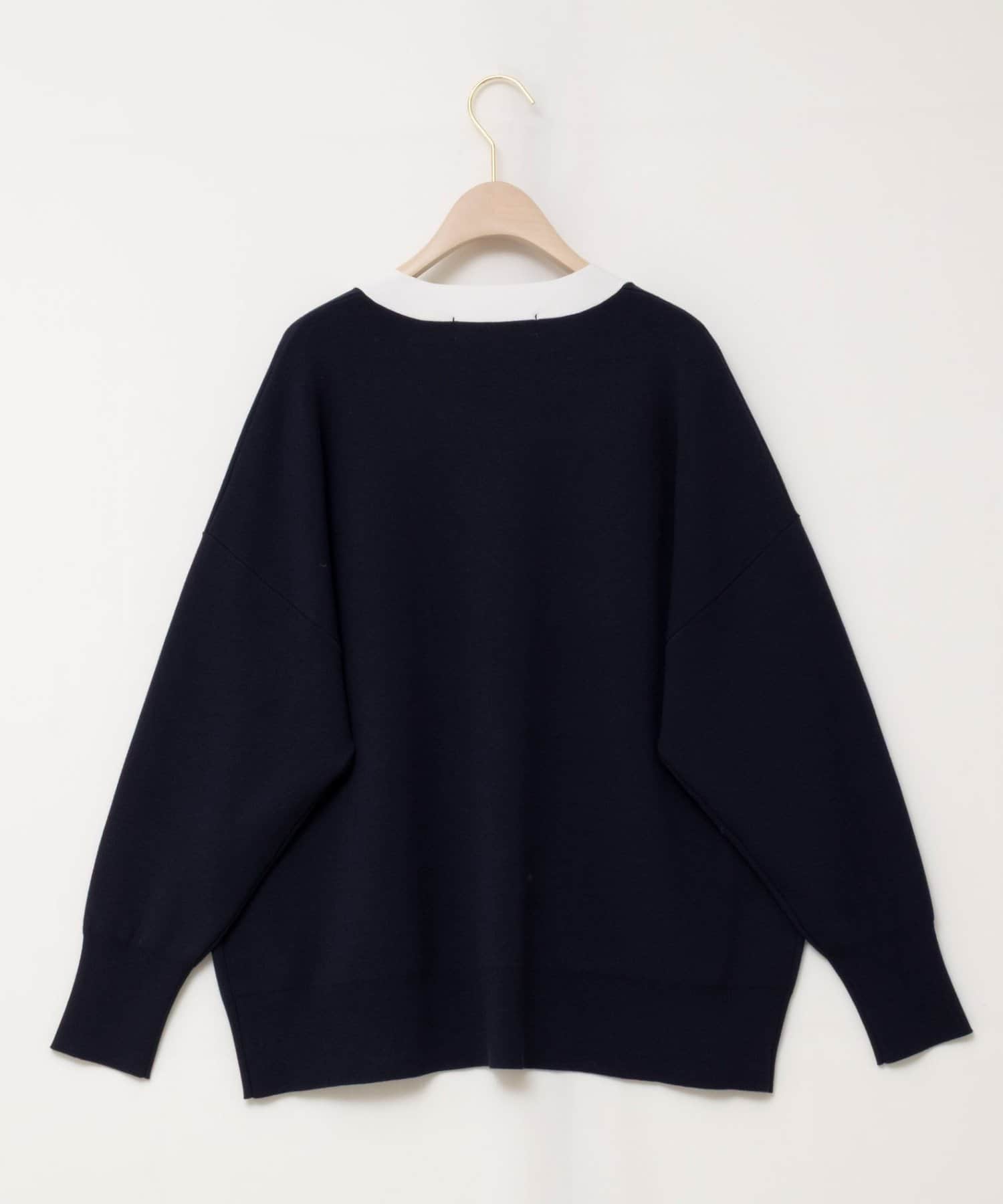 ・スムース編みでしっかり編まれたゆったりサイズのVネックカーディガン