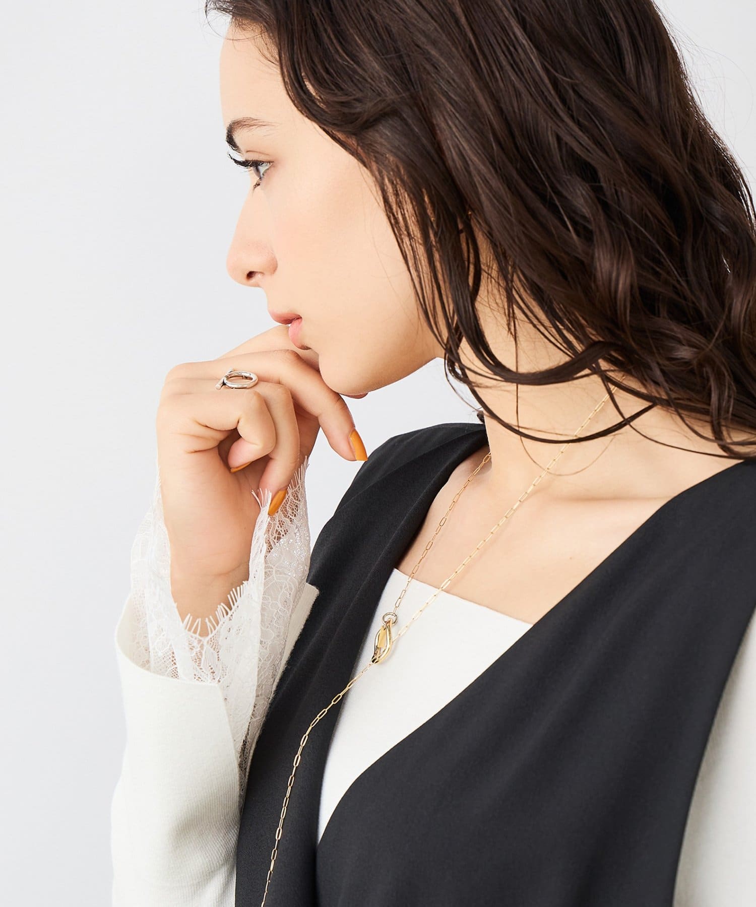 ・レースを付けたままジャケットのインにしてレースを覗かせると、トレンド感のある着こなしに