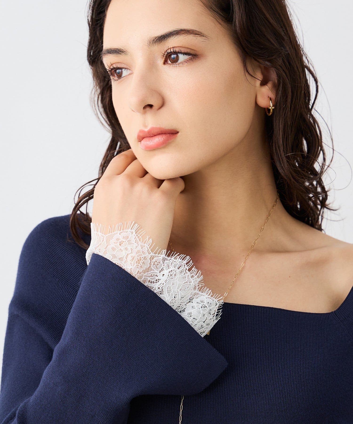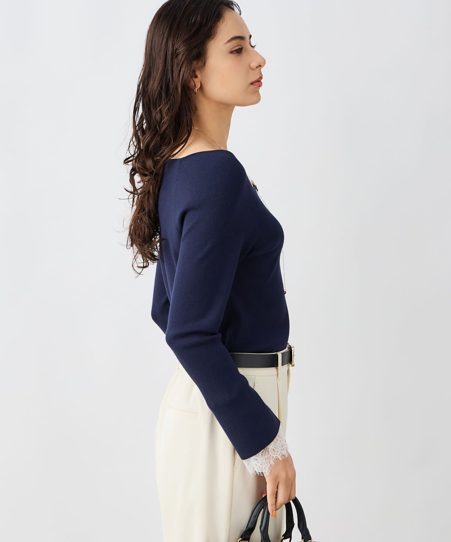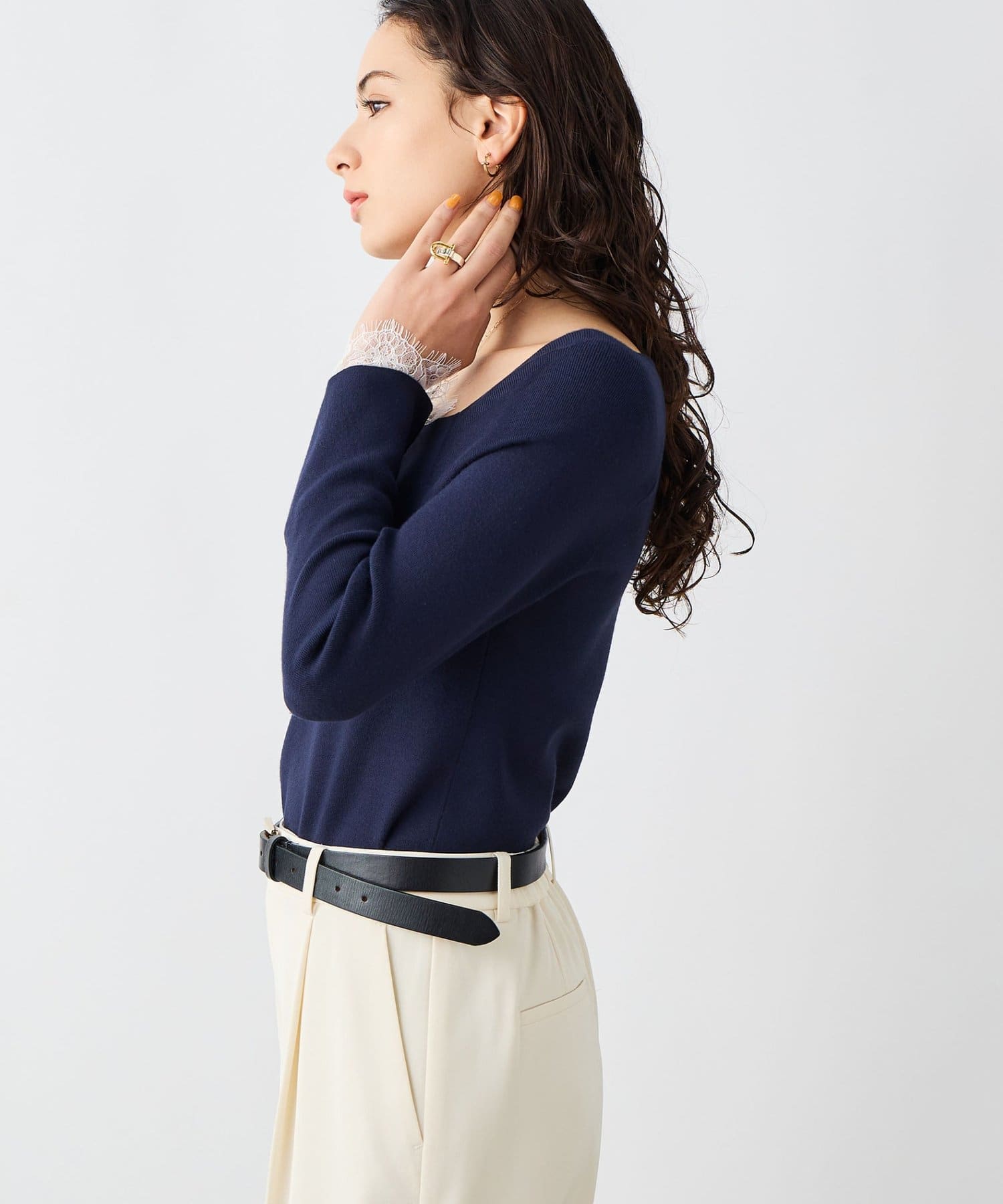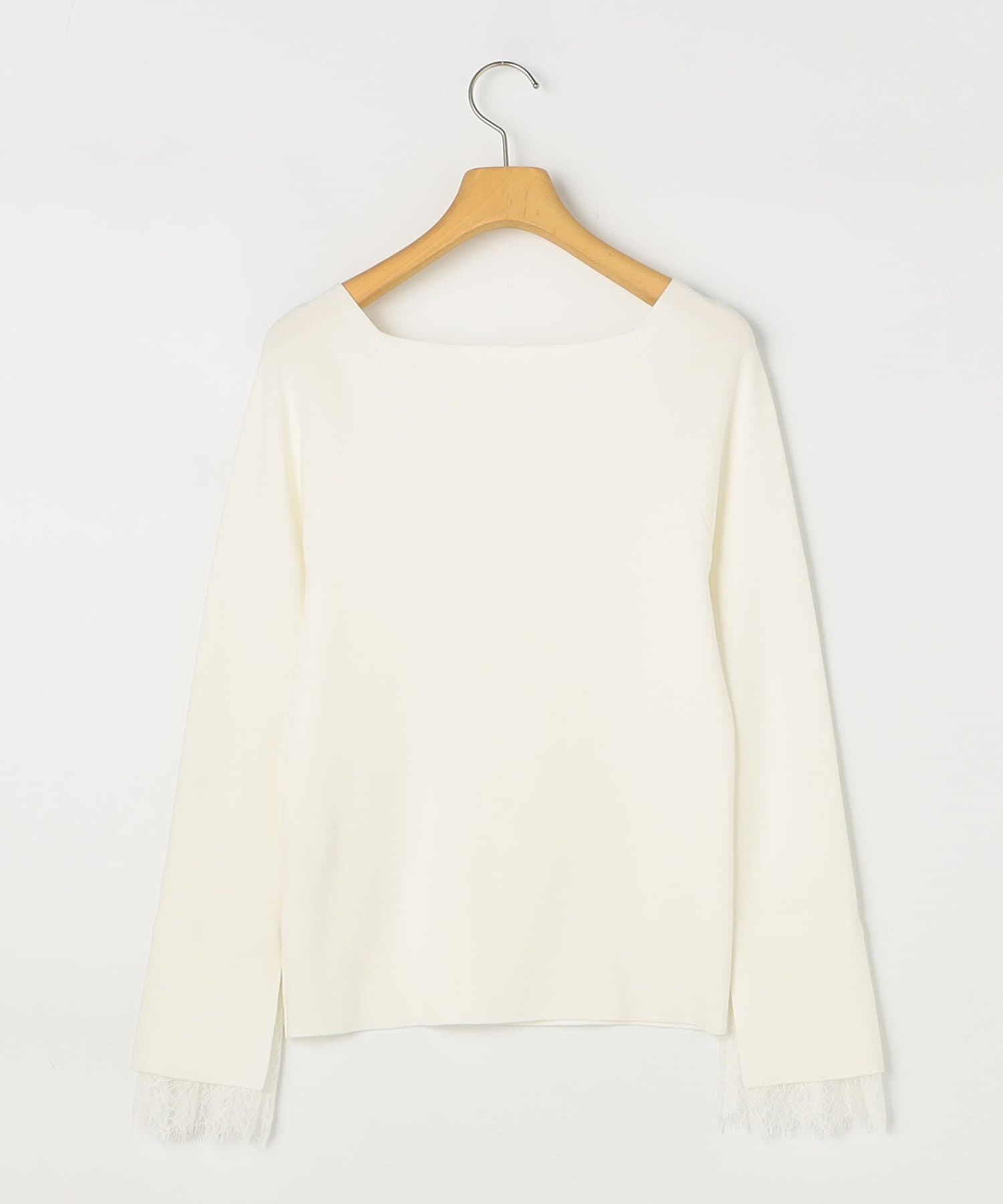 《手洗い可能》袖口レース取り外し可総針スクエアネックプルオーバー