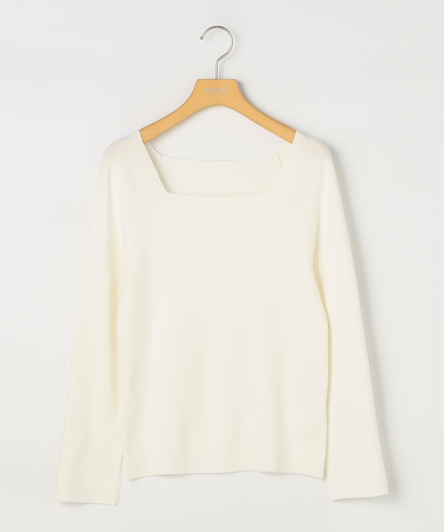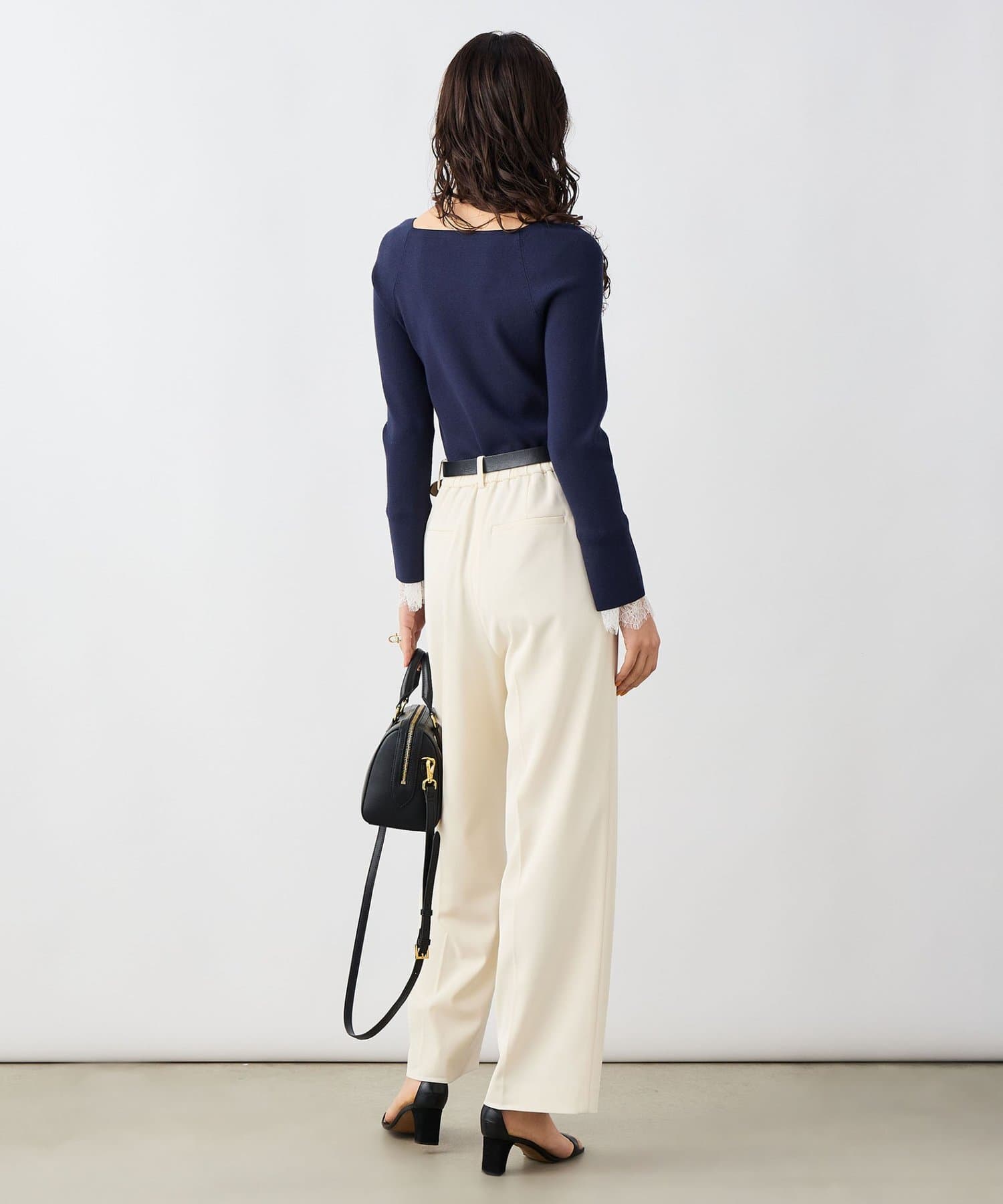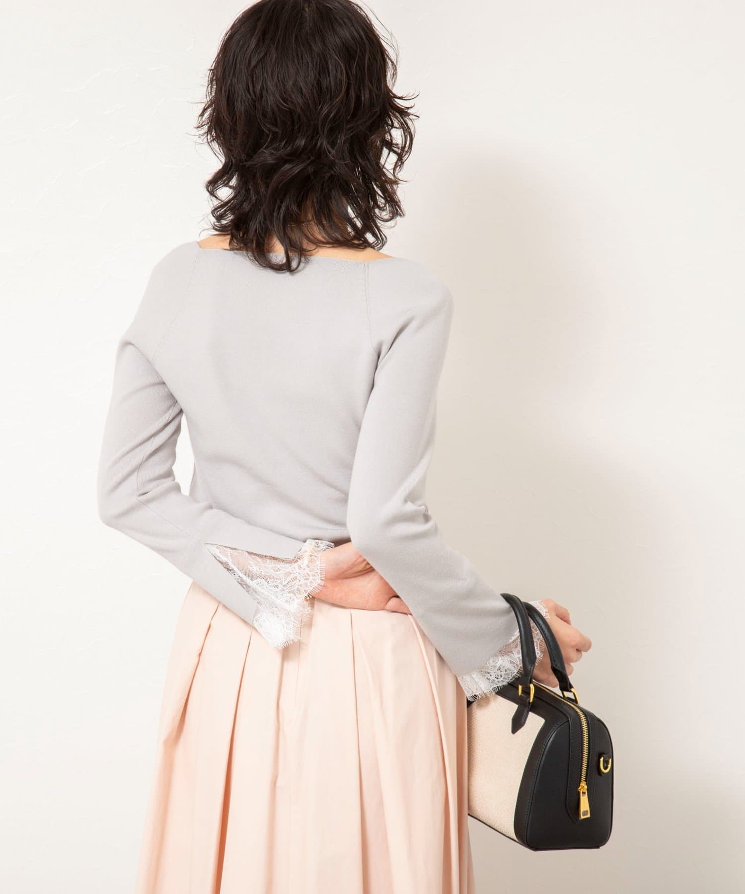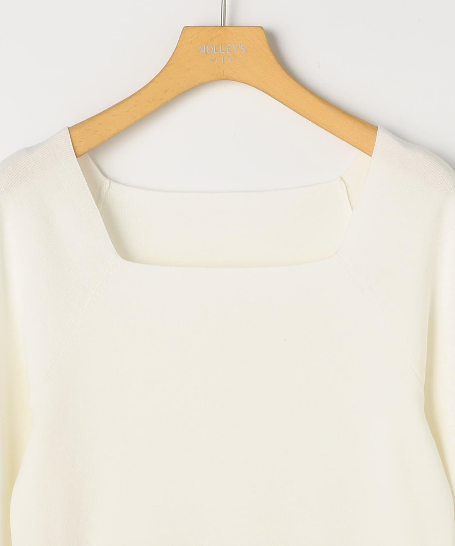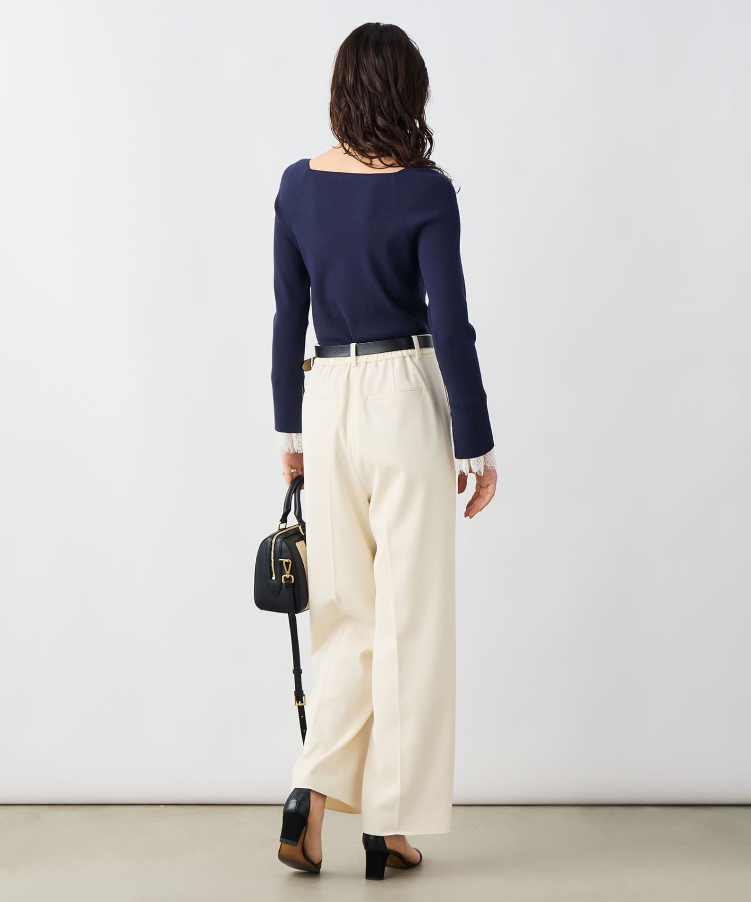 《手洗い可能》袖口レース取り外し可総針スクエアネックプルオーバー