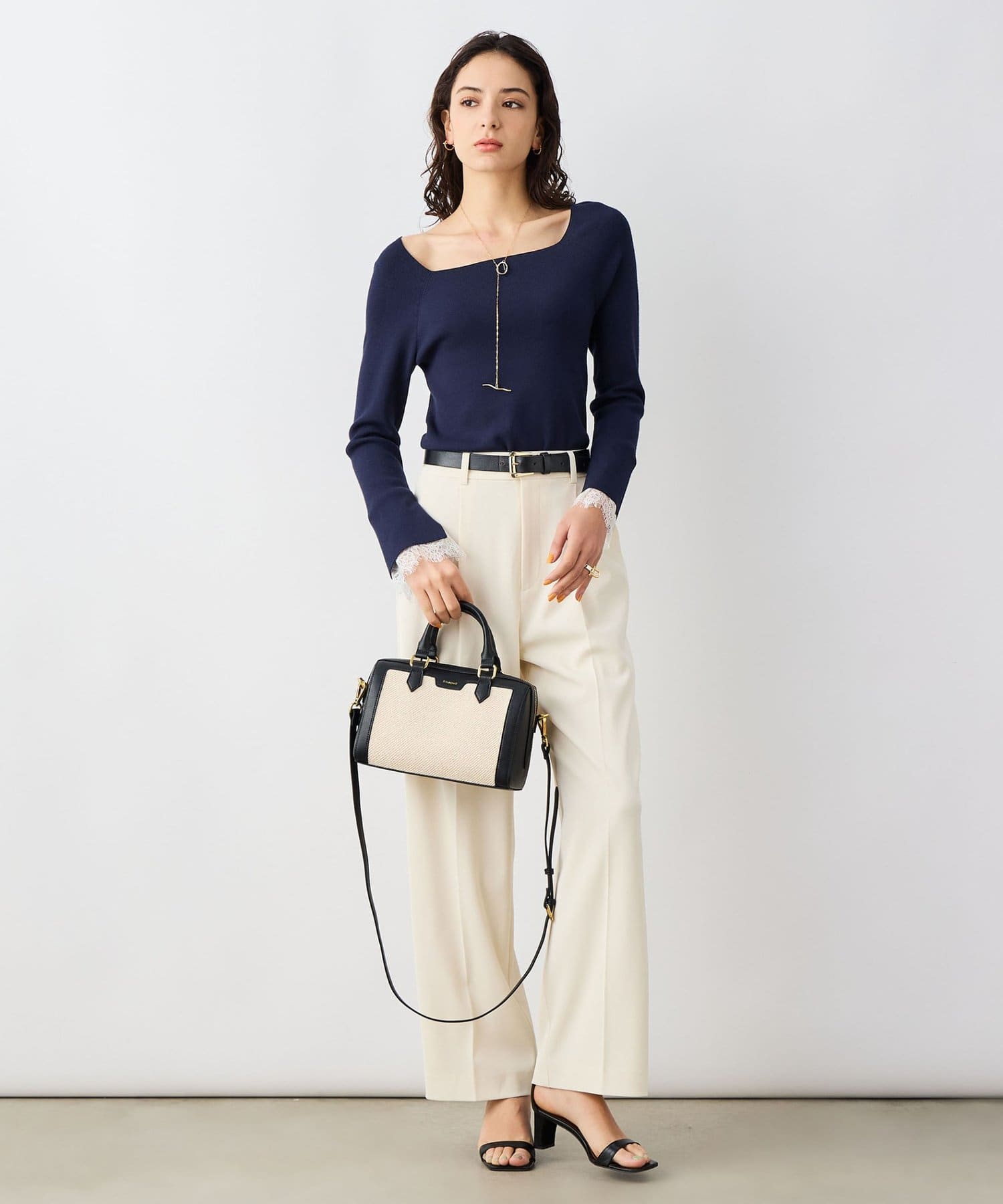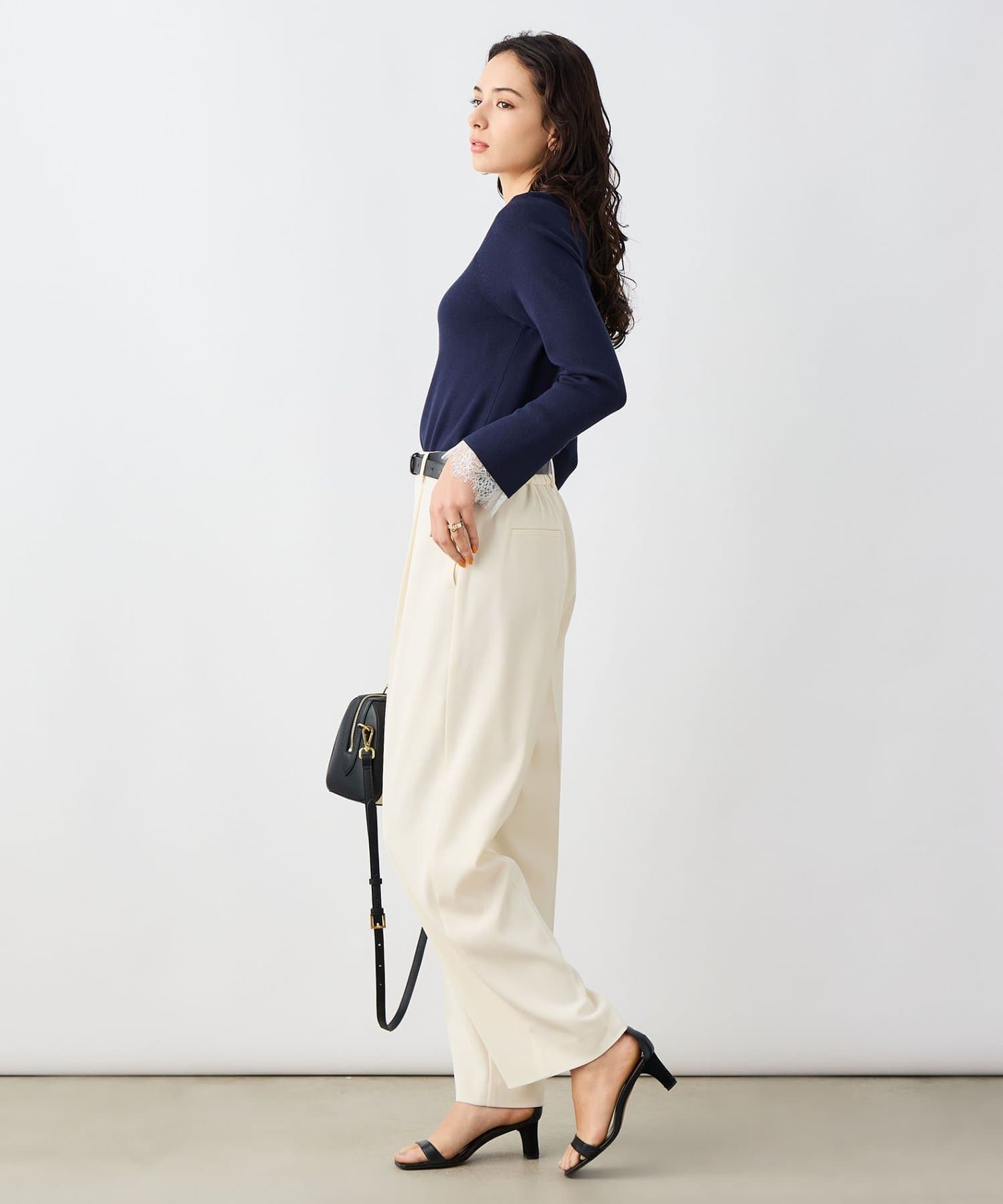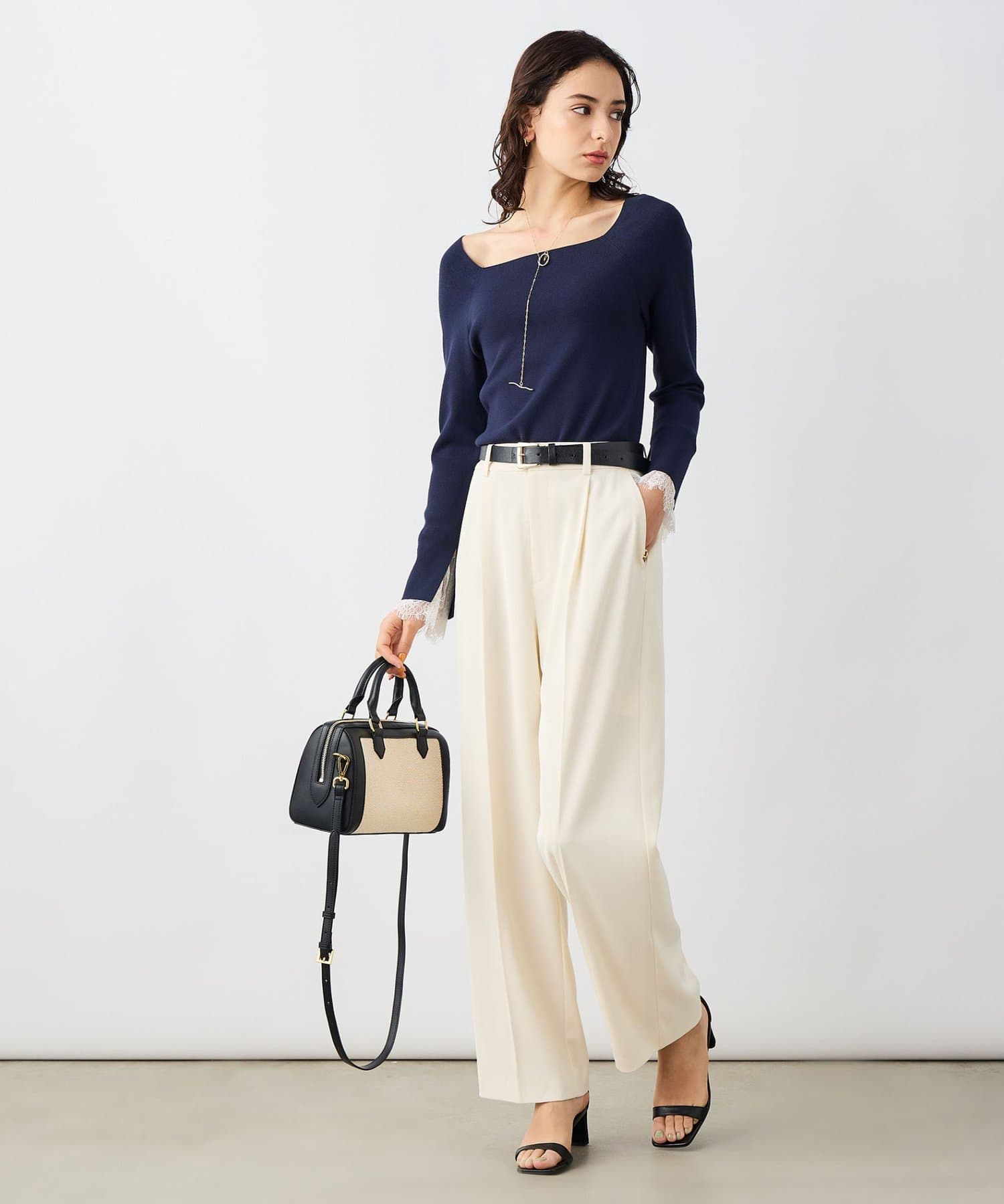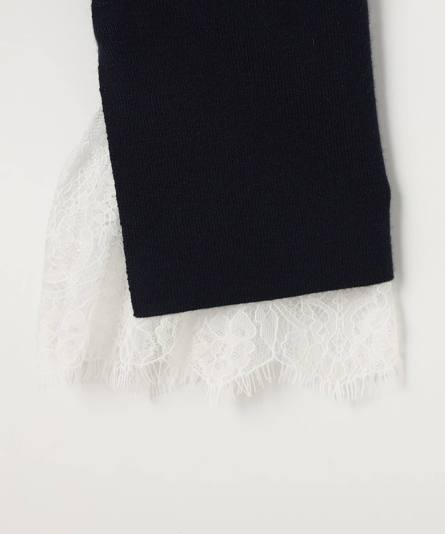 《手洗い可能》袖口レース取り外し可総針スクエアネックプルオーバー