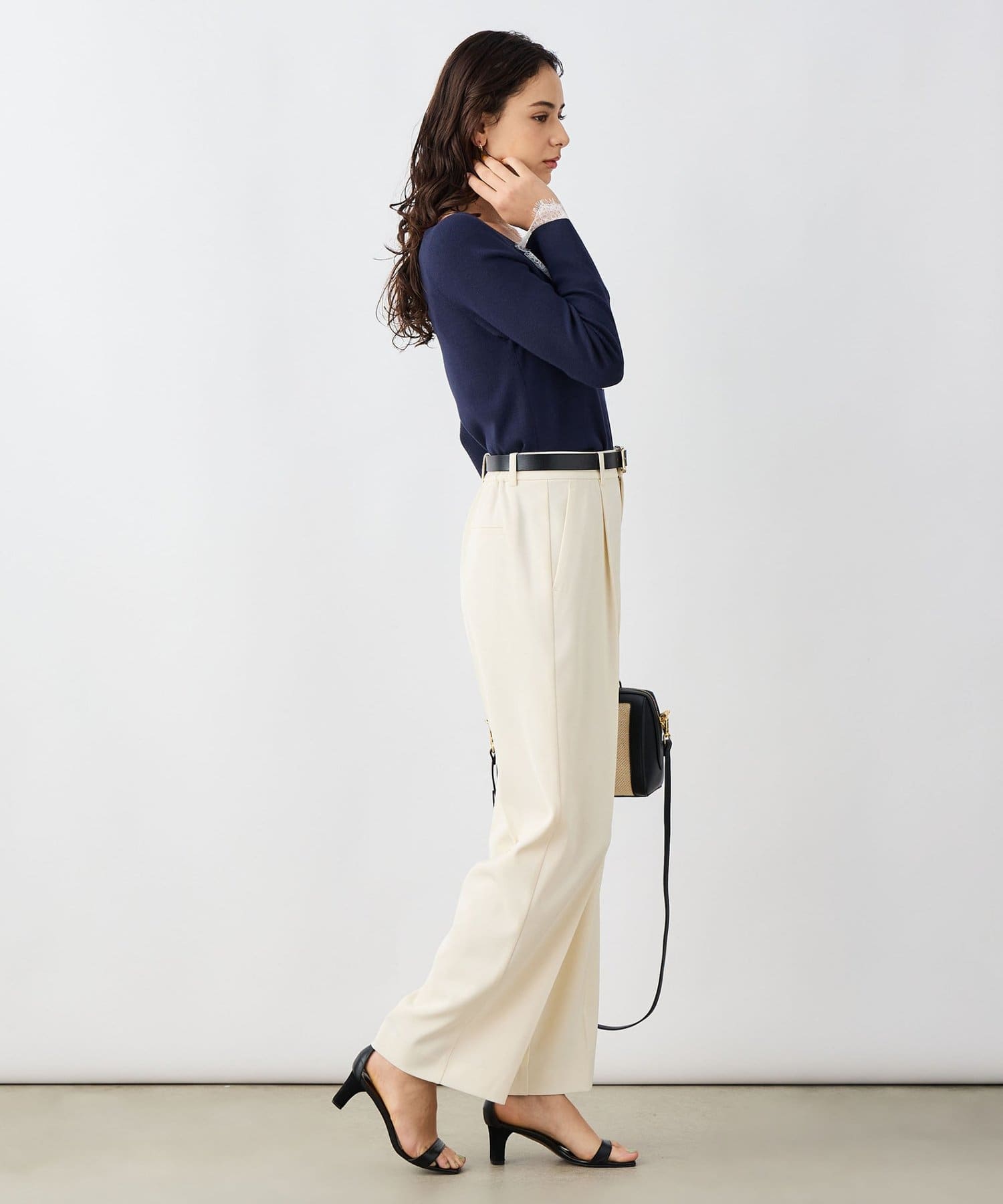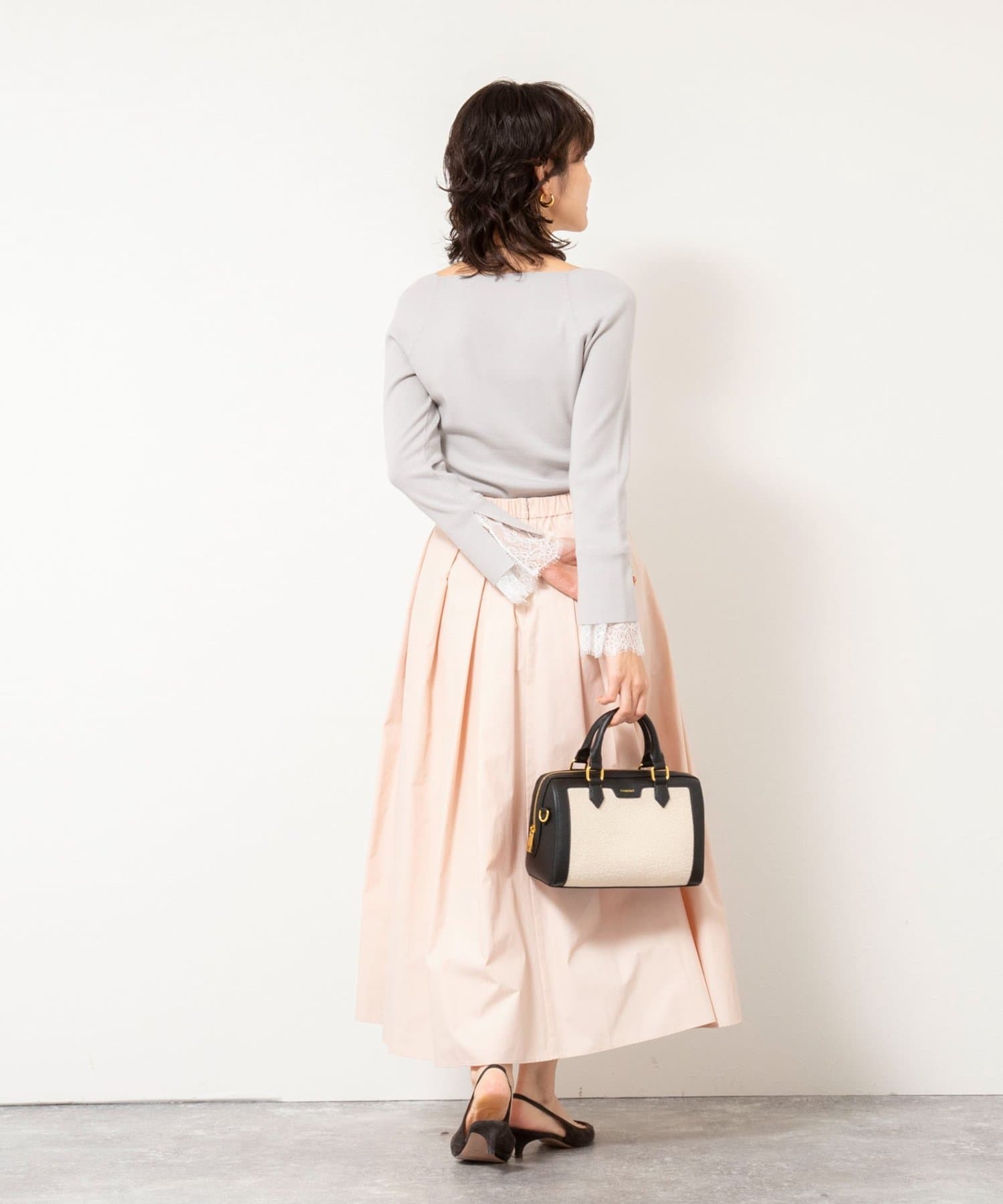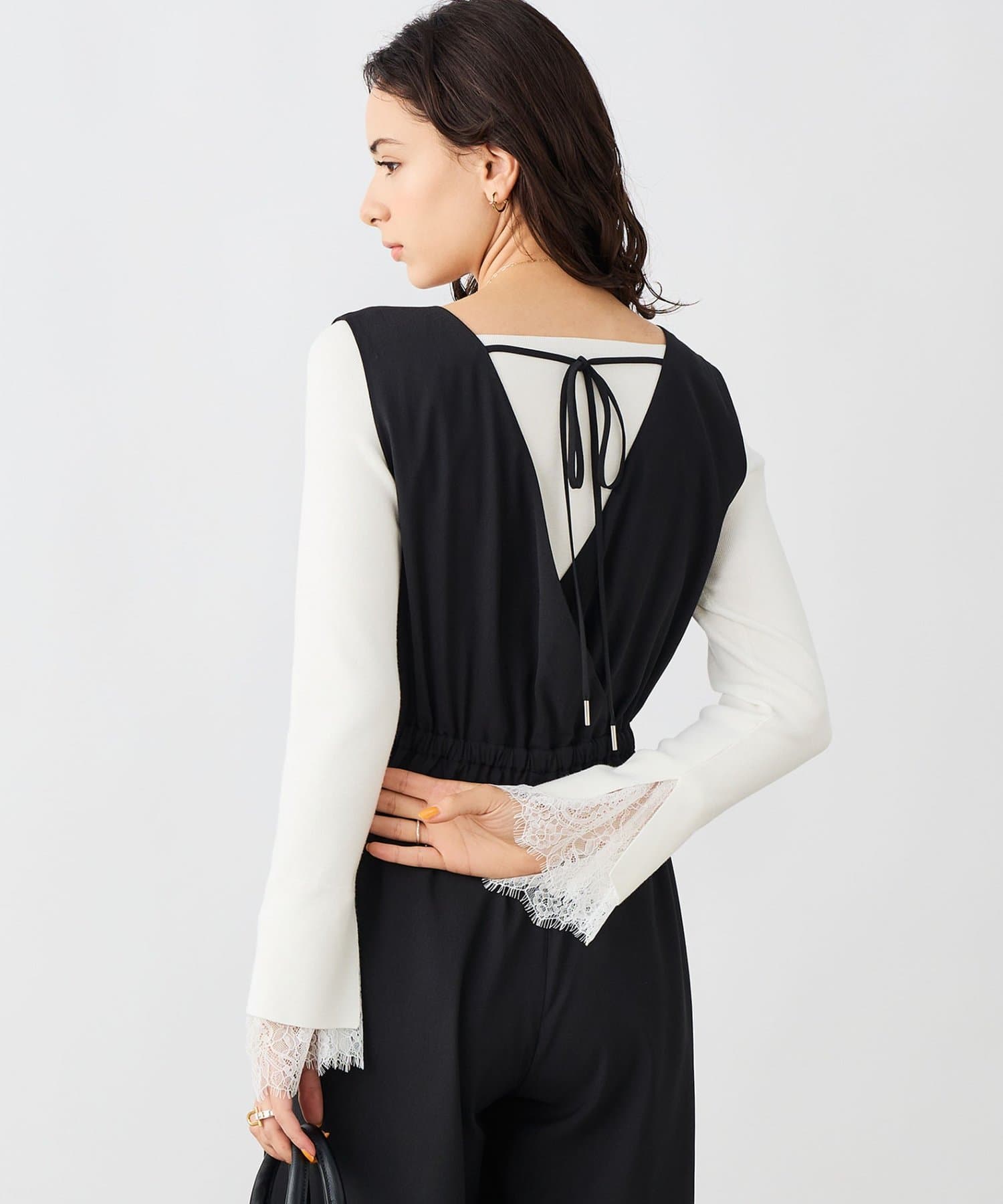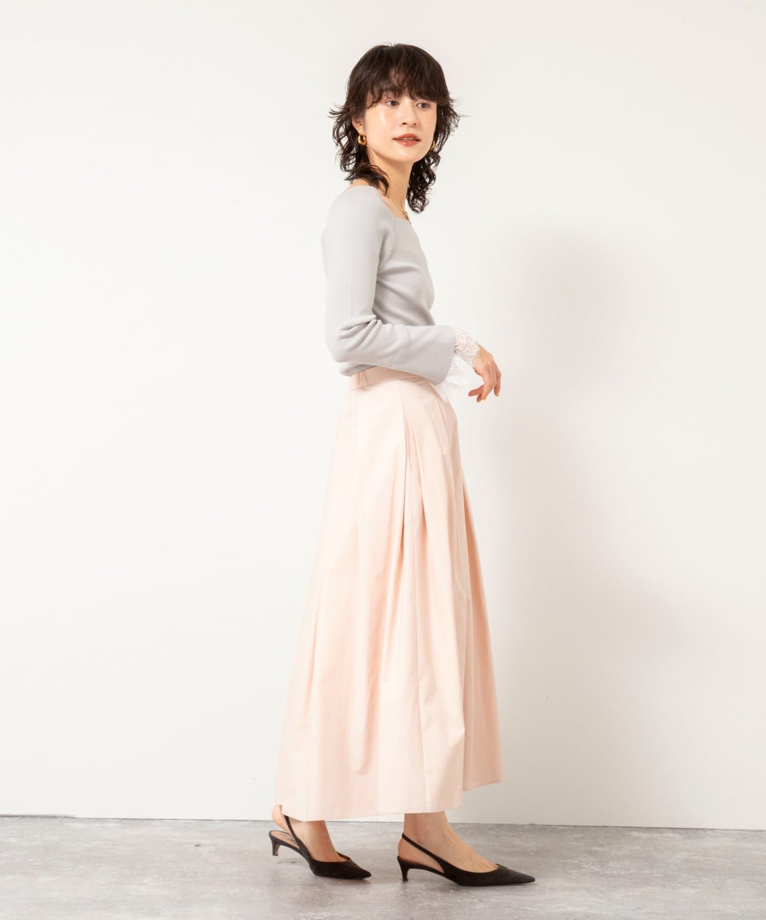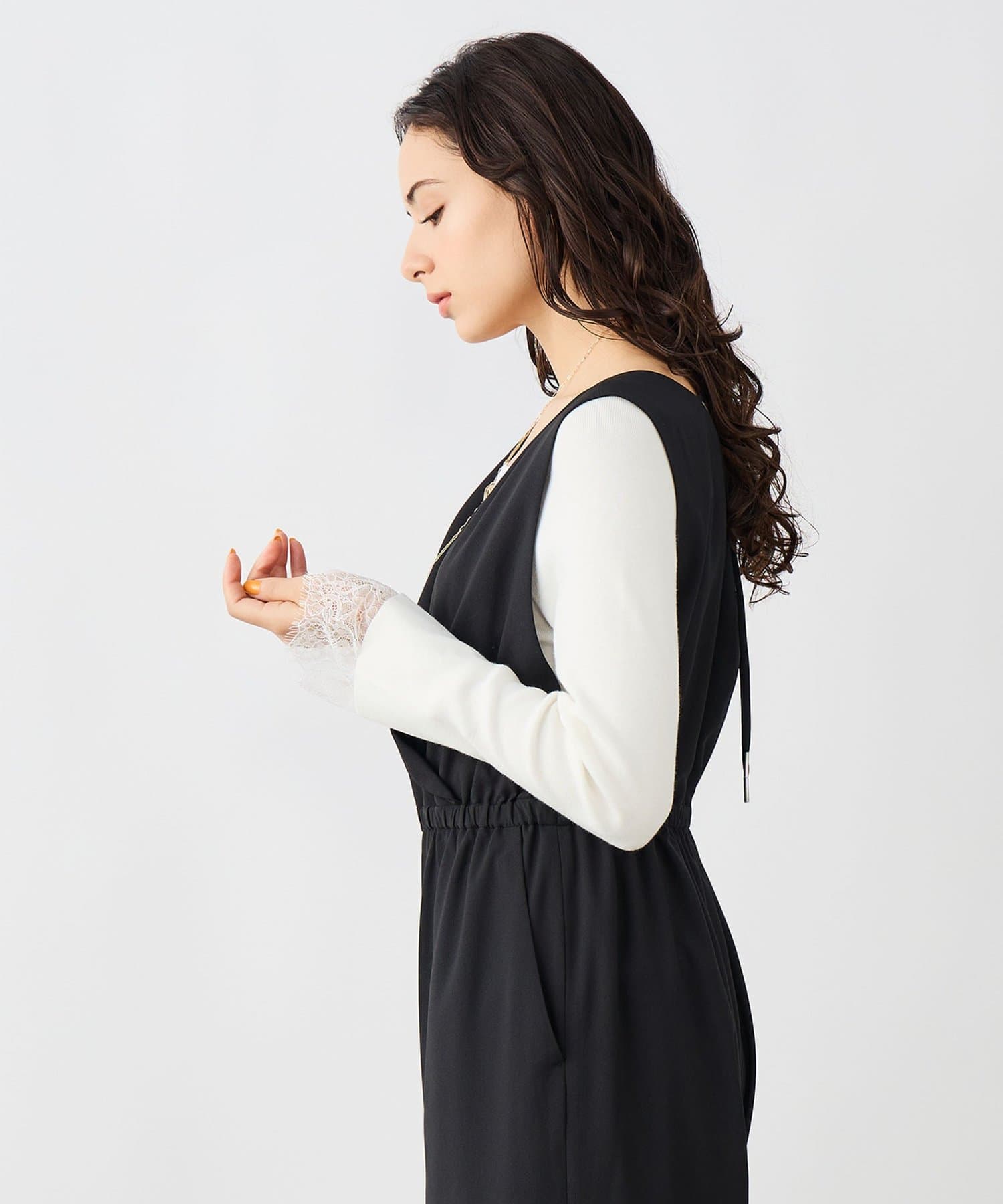 《手洗い可能》袖口レース取り外し可総針スクエアネックプルオーバー
