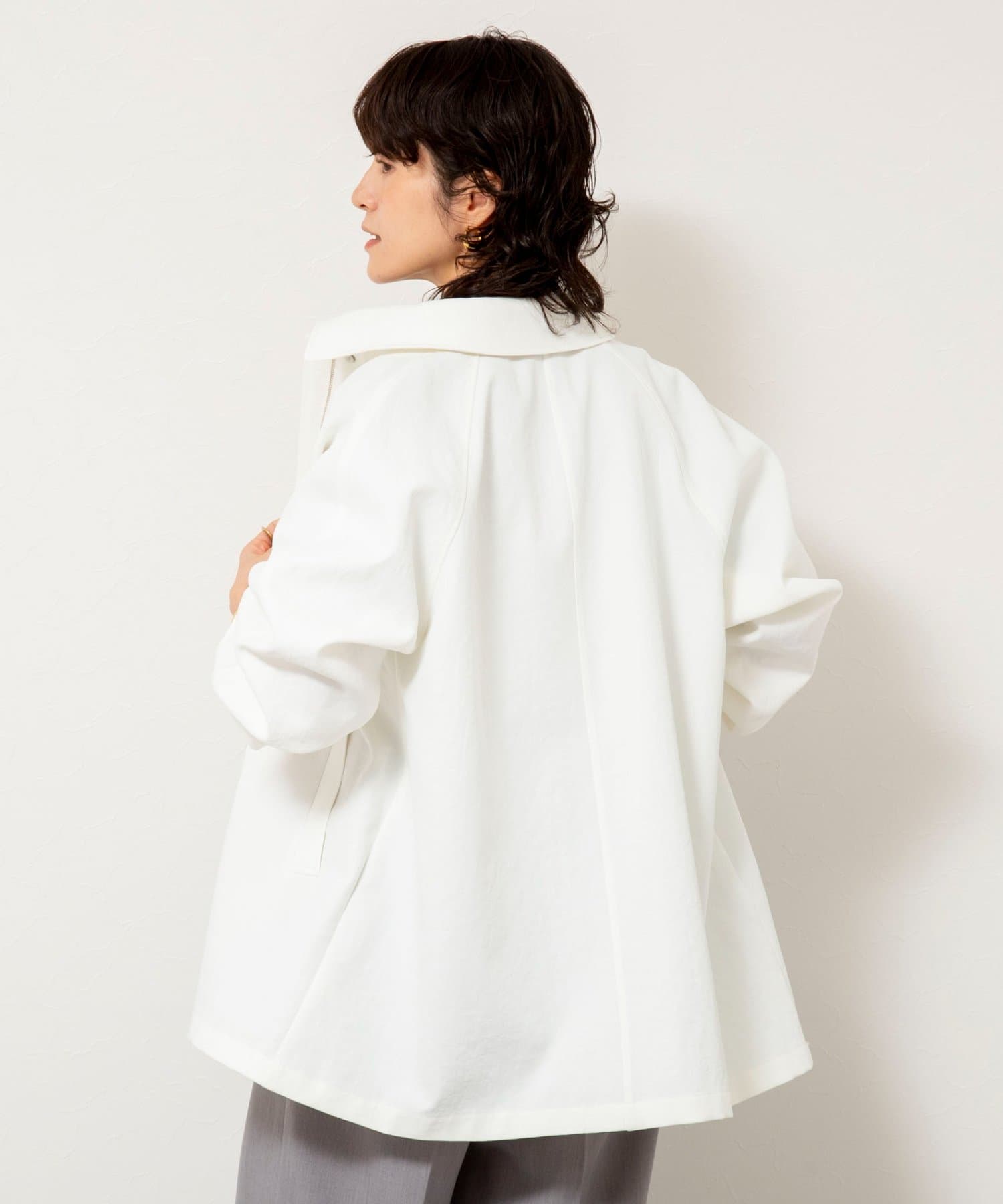 ・程よいオーバーサイズでハーフ丈のAラインシルエットが新鮮なバランスの1着
