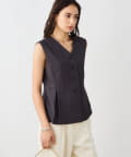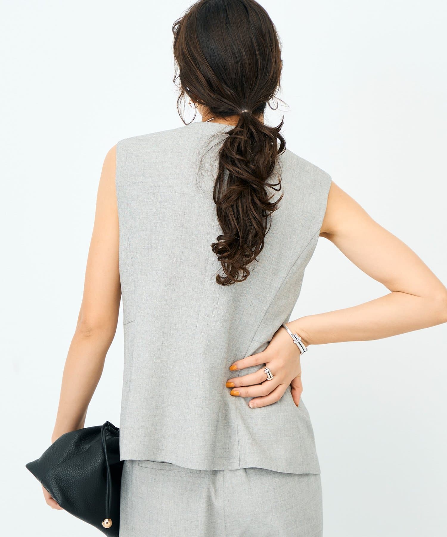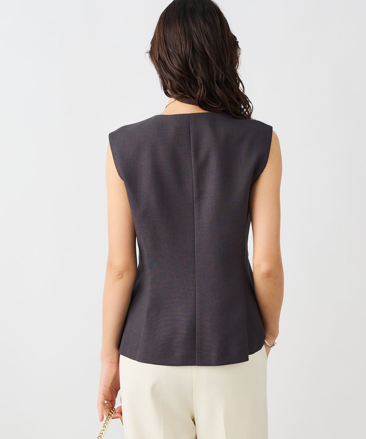 《セットアップ対応》ウォッシャブルドライシャークペプラムジレ