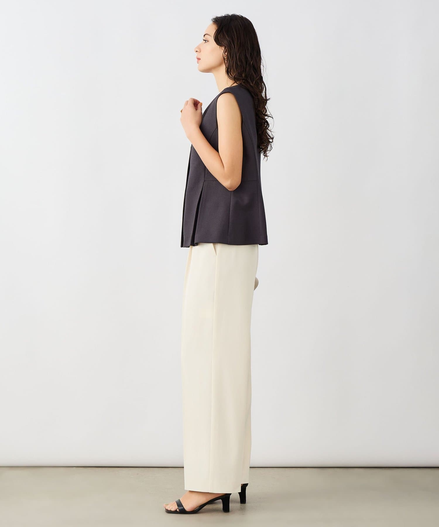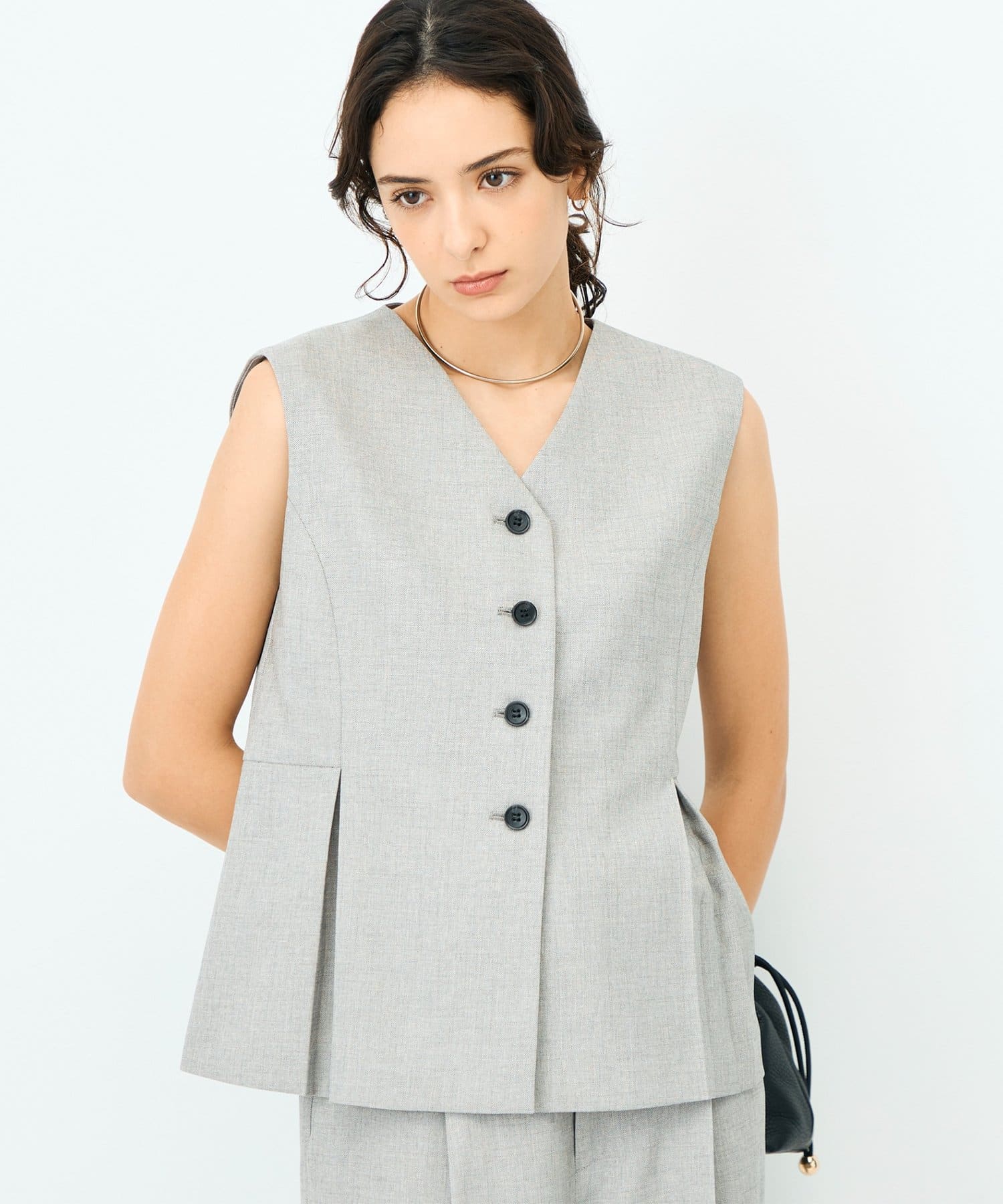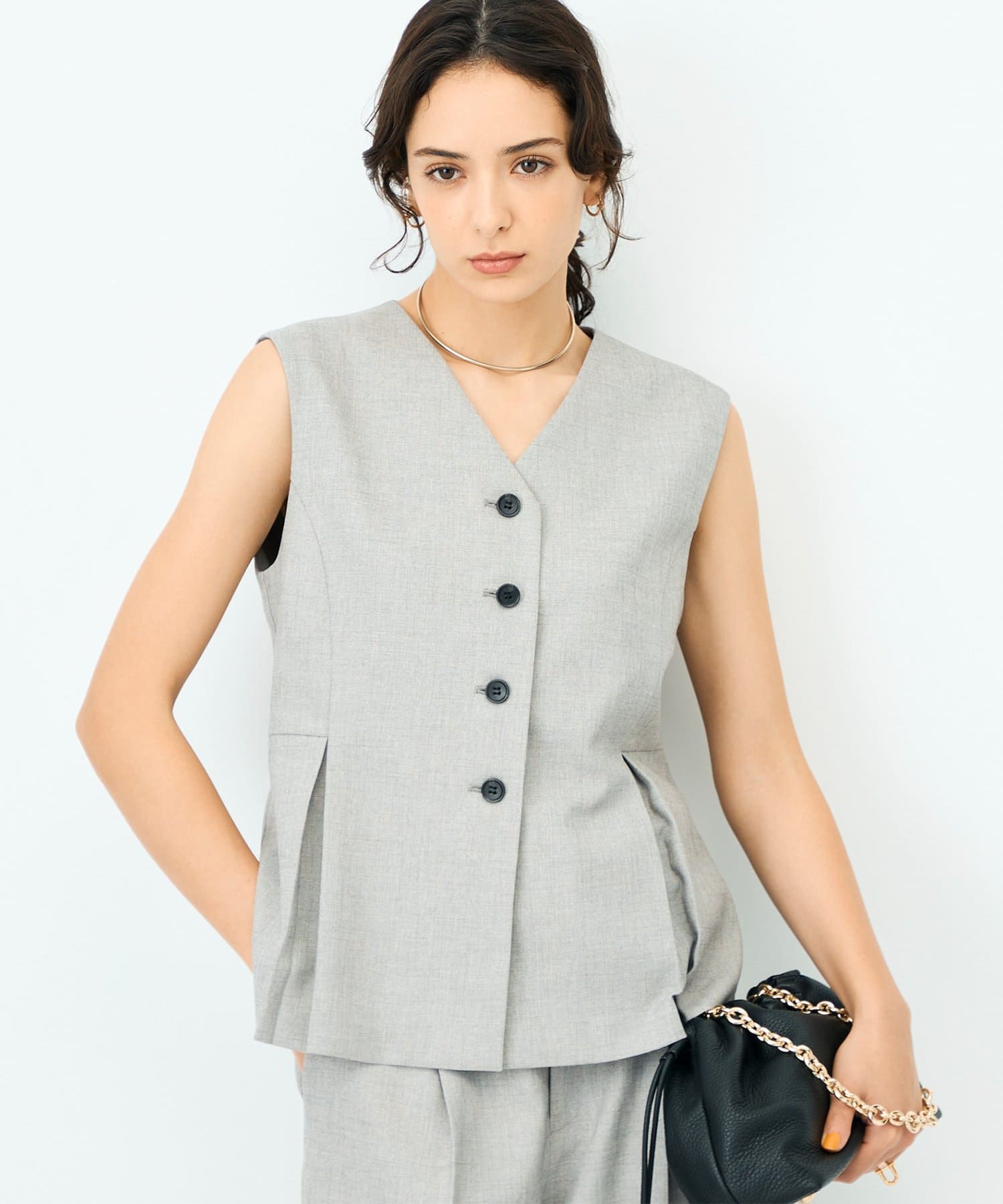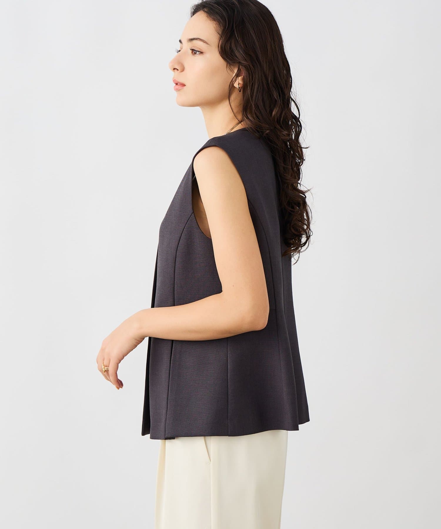 ・ドライなタッチのシャーク素材を使用したタック入りぺプラムジレ