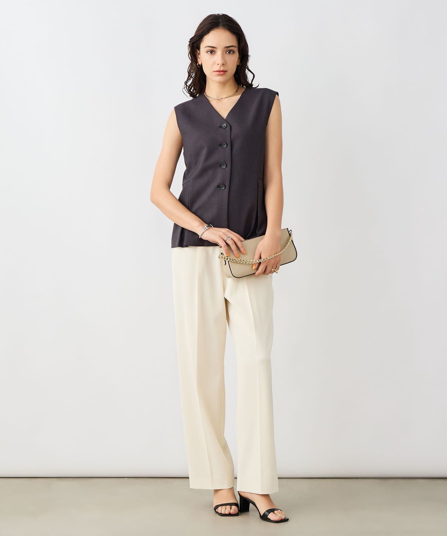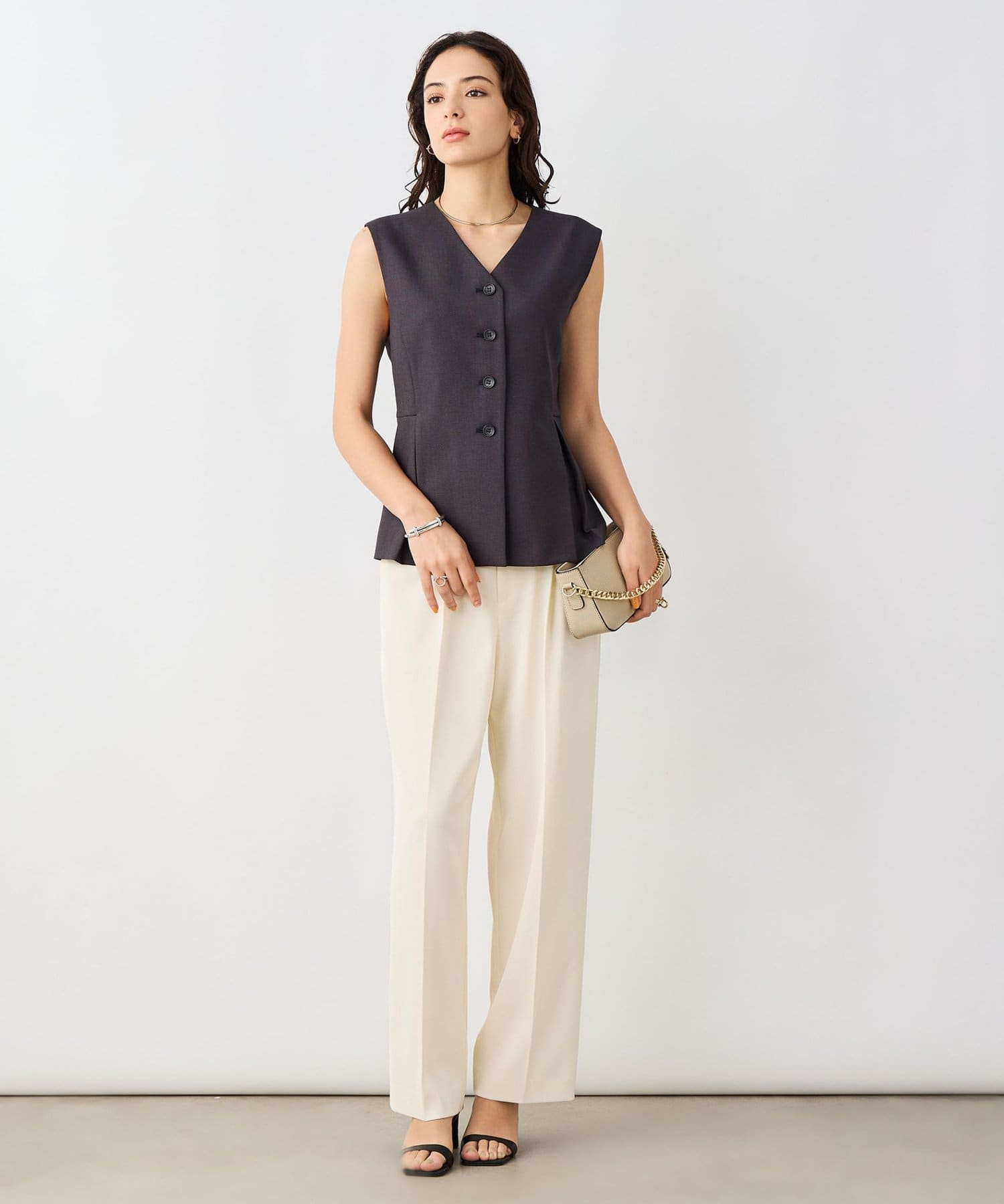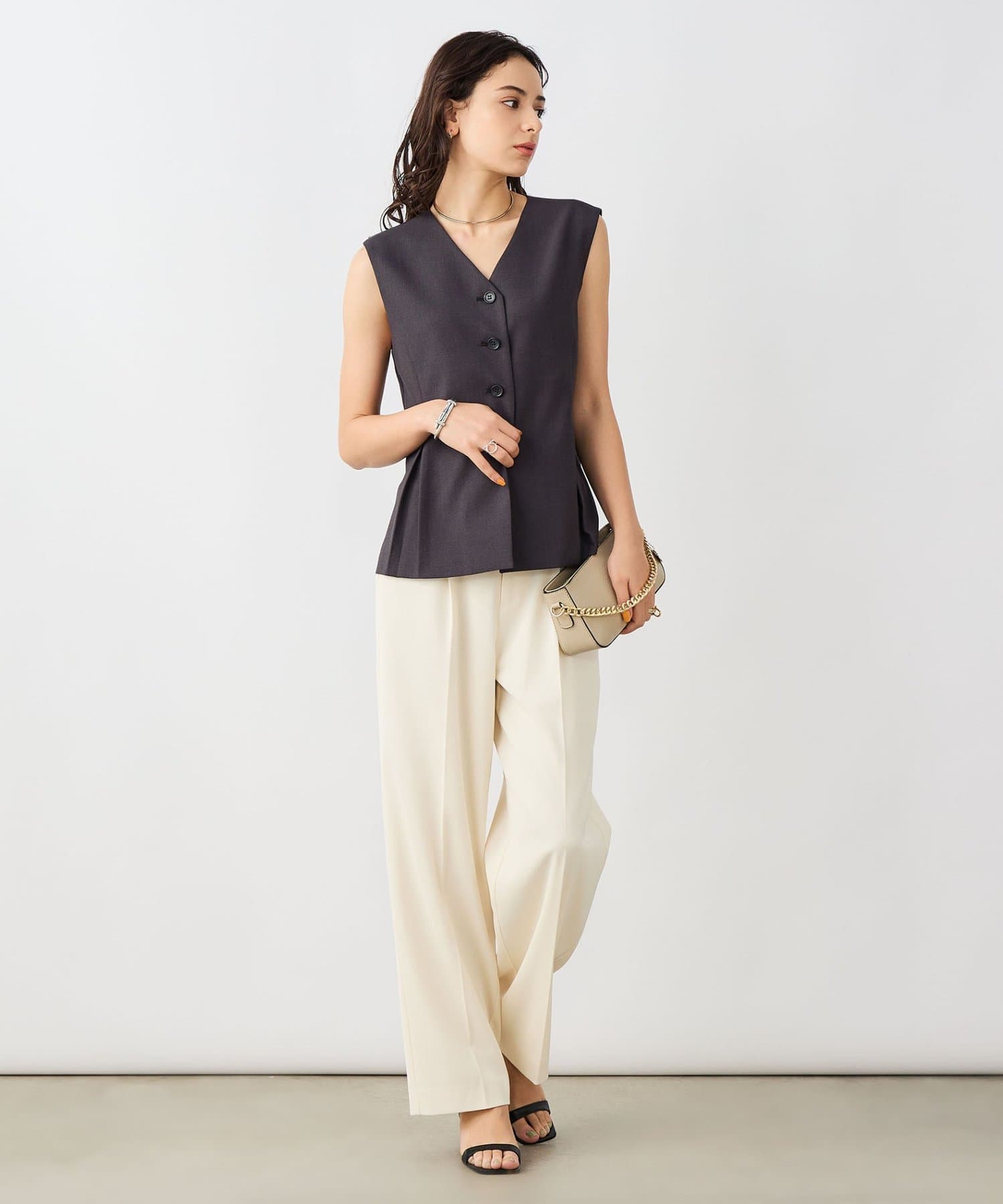 ・ドライなタッチのシャーク素材を使用したタック入りぺプラムジレ