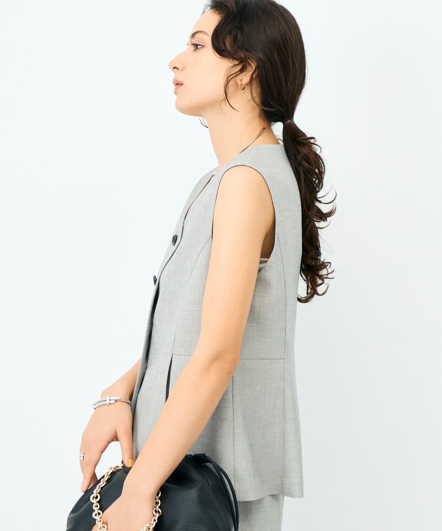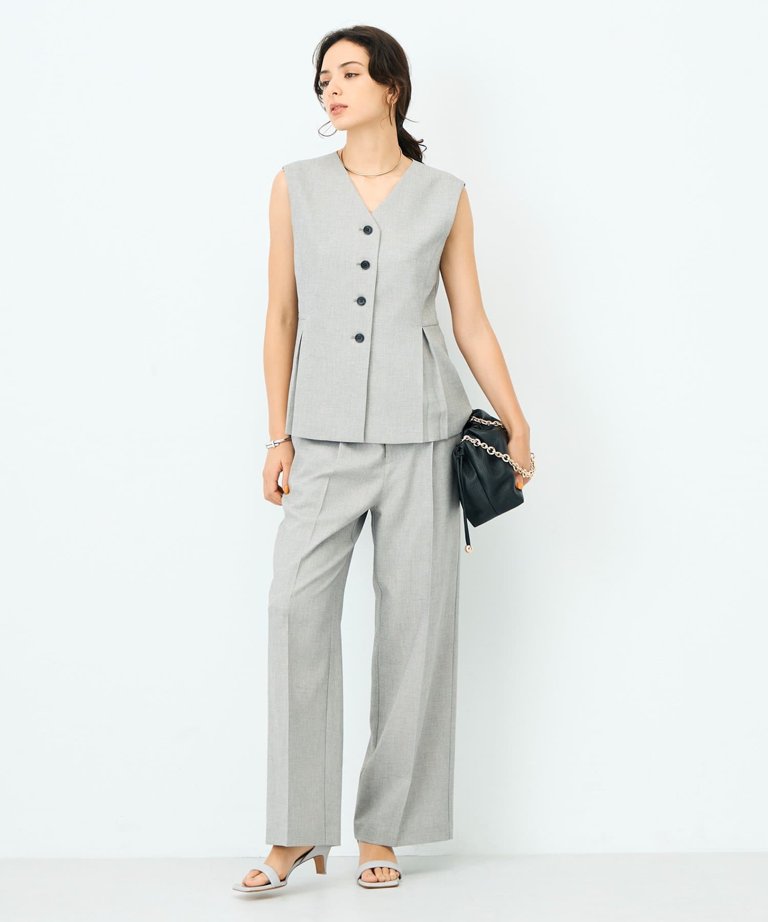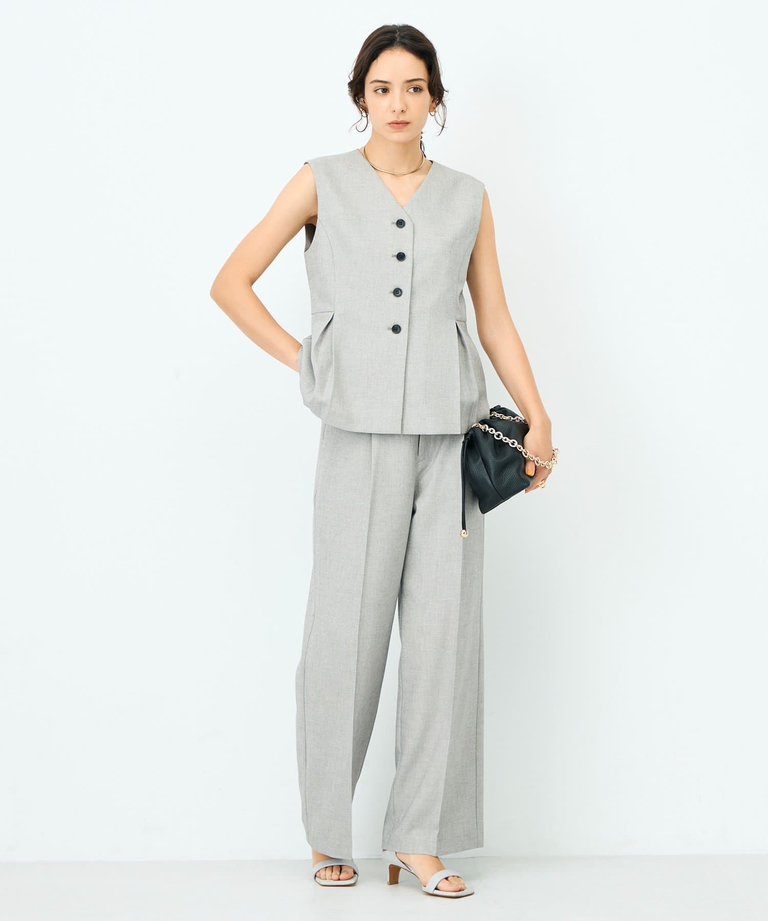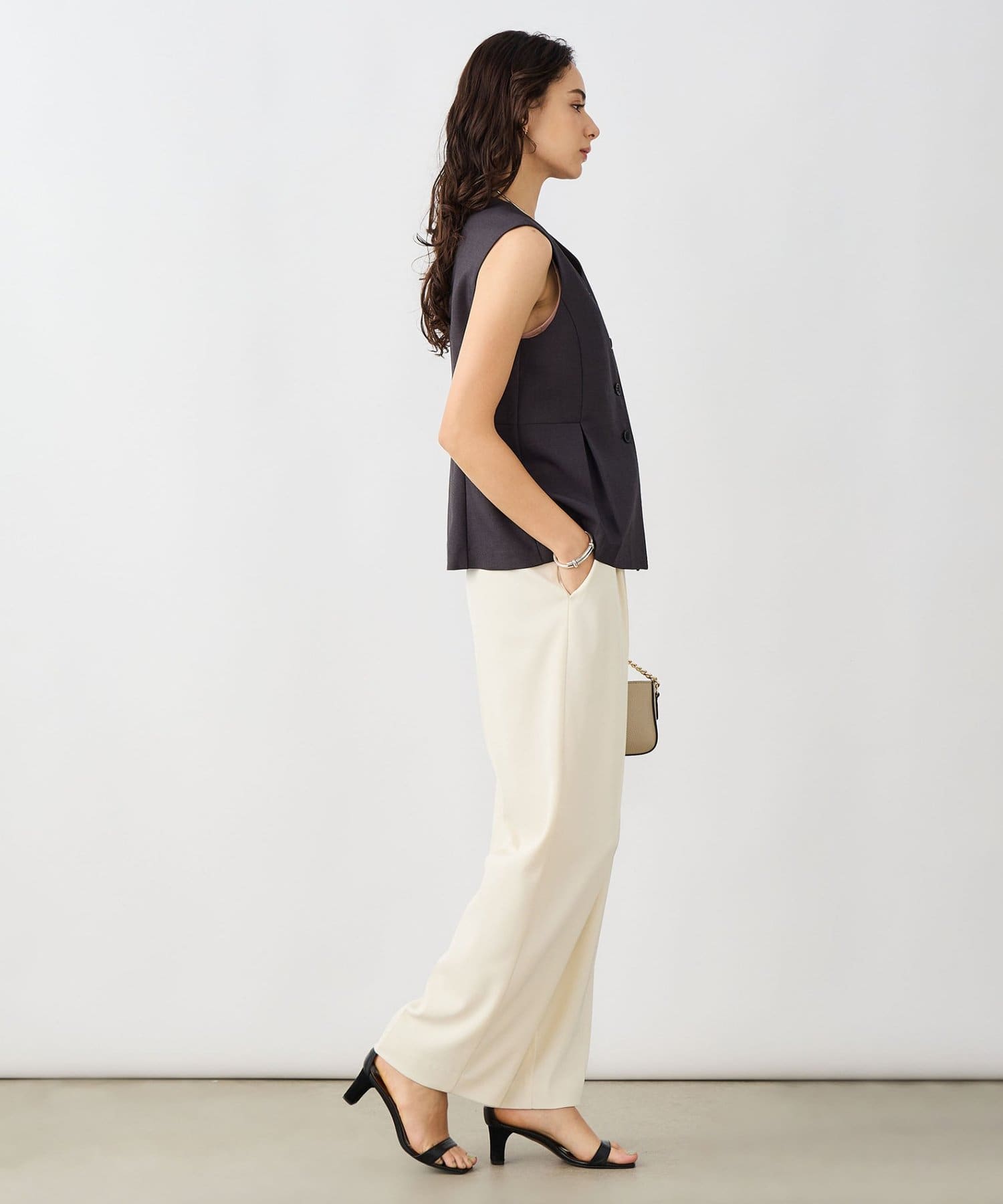 ・ドライなタッチのシャーク素材を使用したタック入りぺプラムジレ