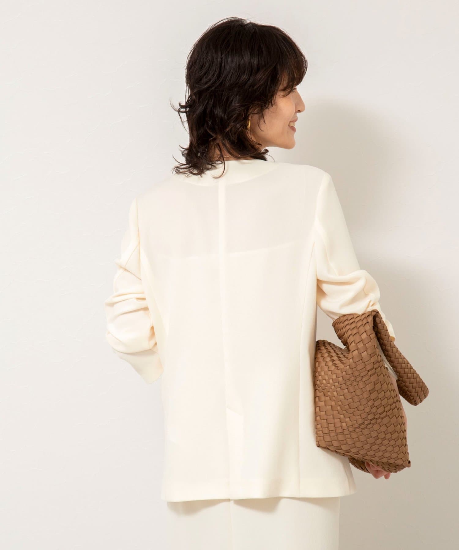 TOP > NOLLEY'S > レディース > ジャケット/アウター > テーラードジャケット > 《セットアップ対応》ウォッシャブルバックサテンノーカラージャケット