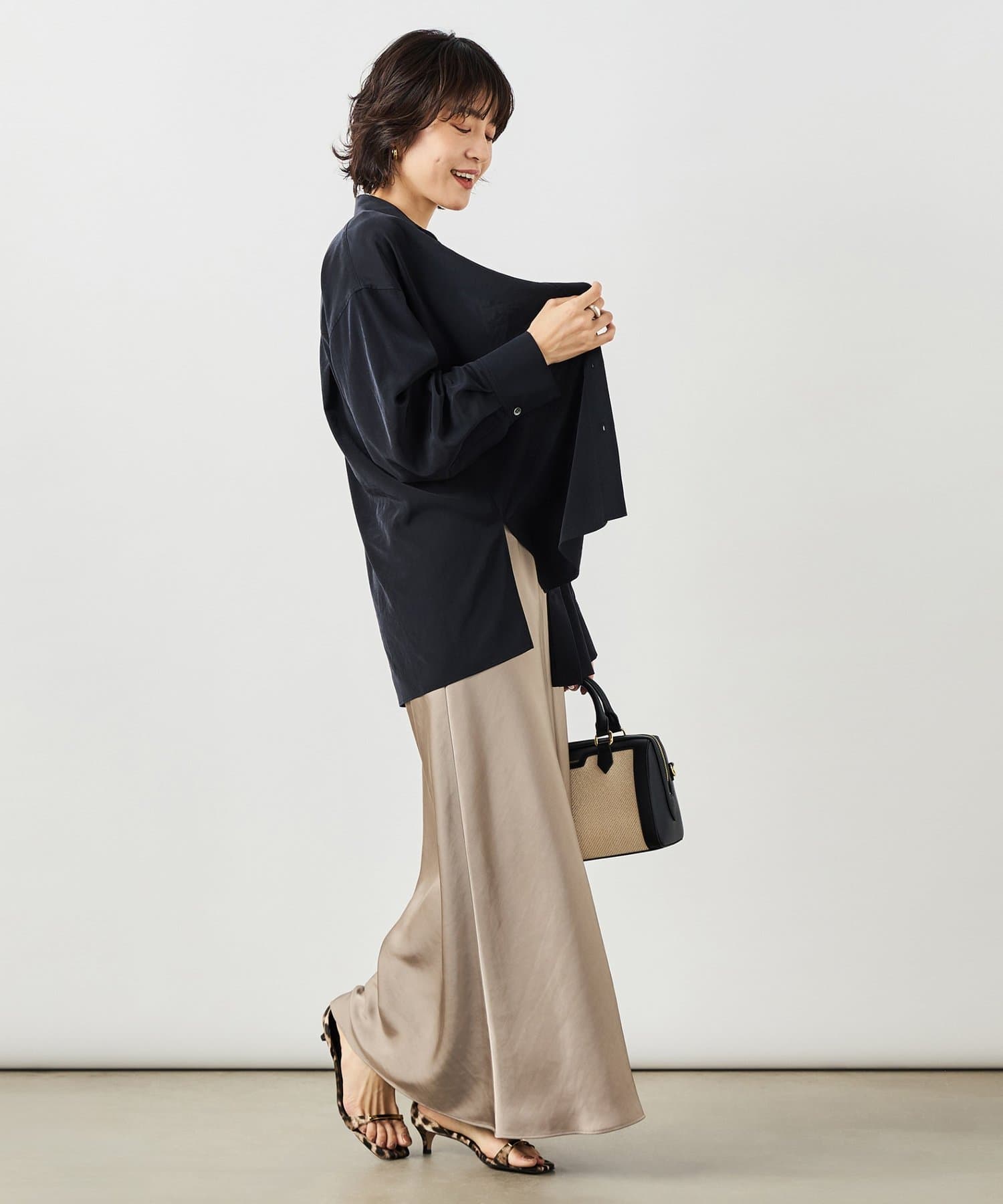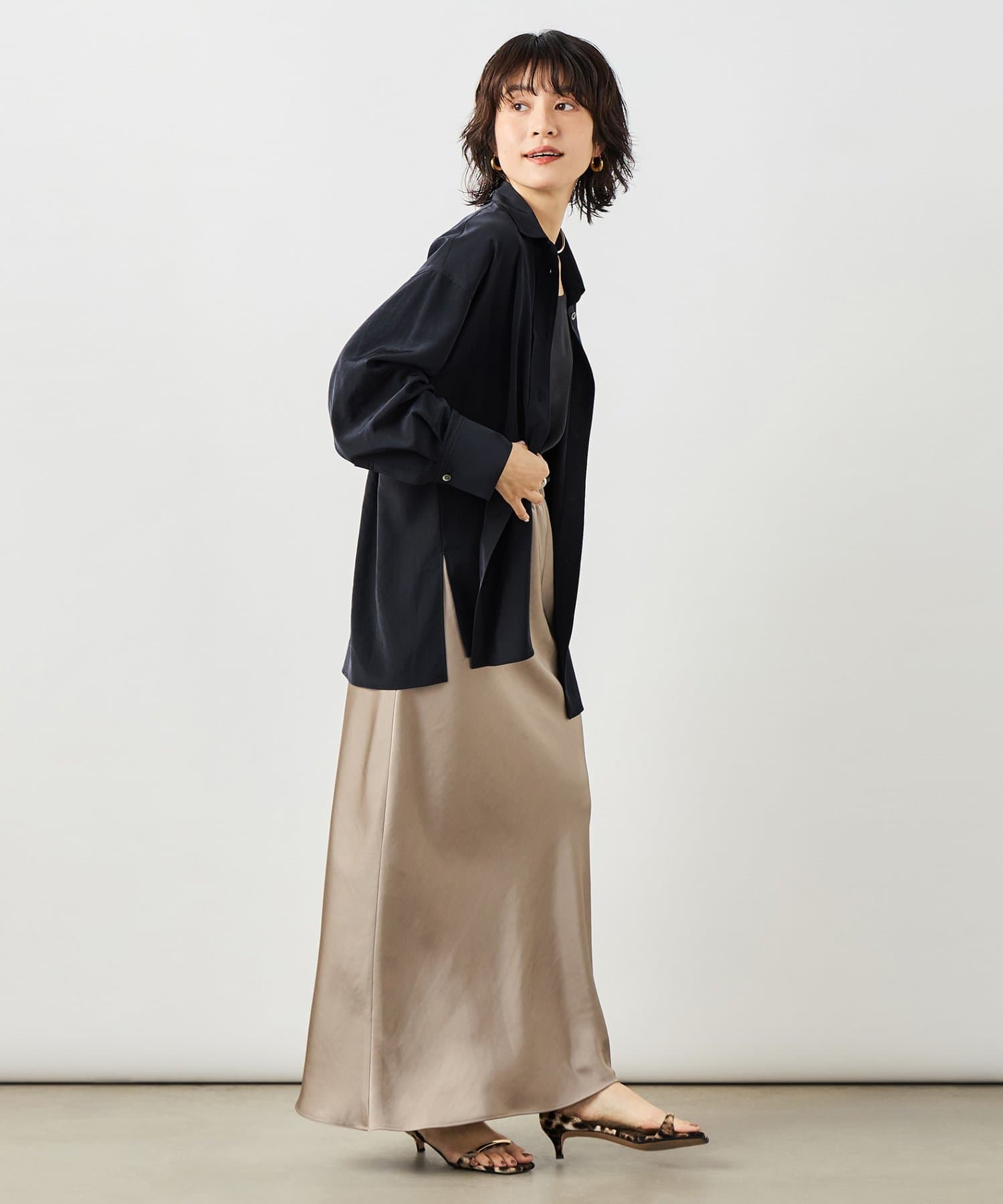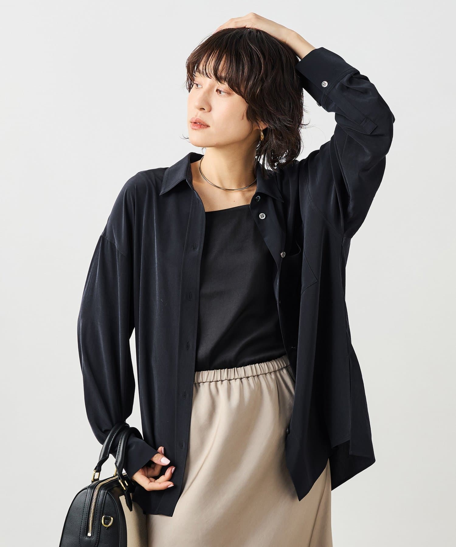 ・ほどよくゆとりのあるサイジングと、長めの着丈で羽織るだけで大人な雰囲気に