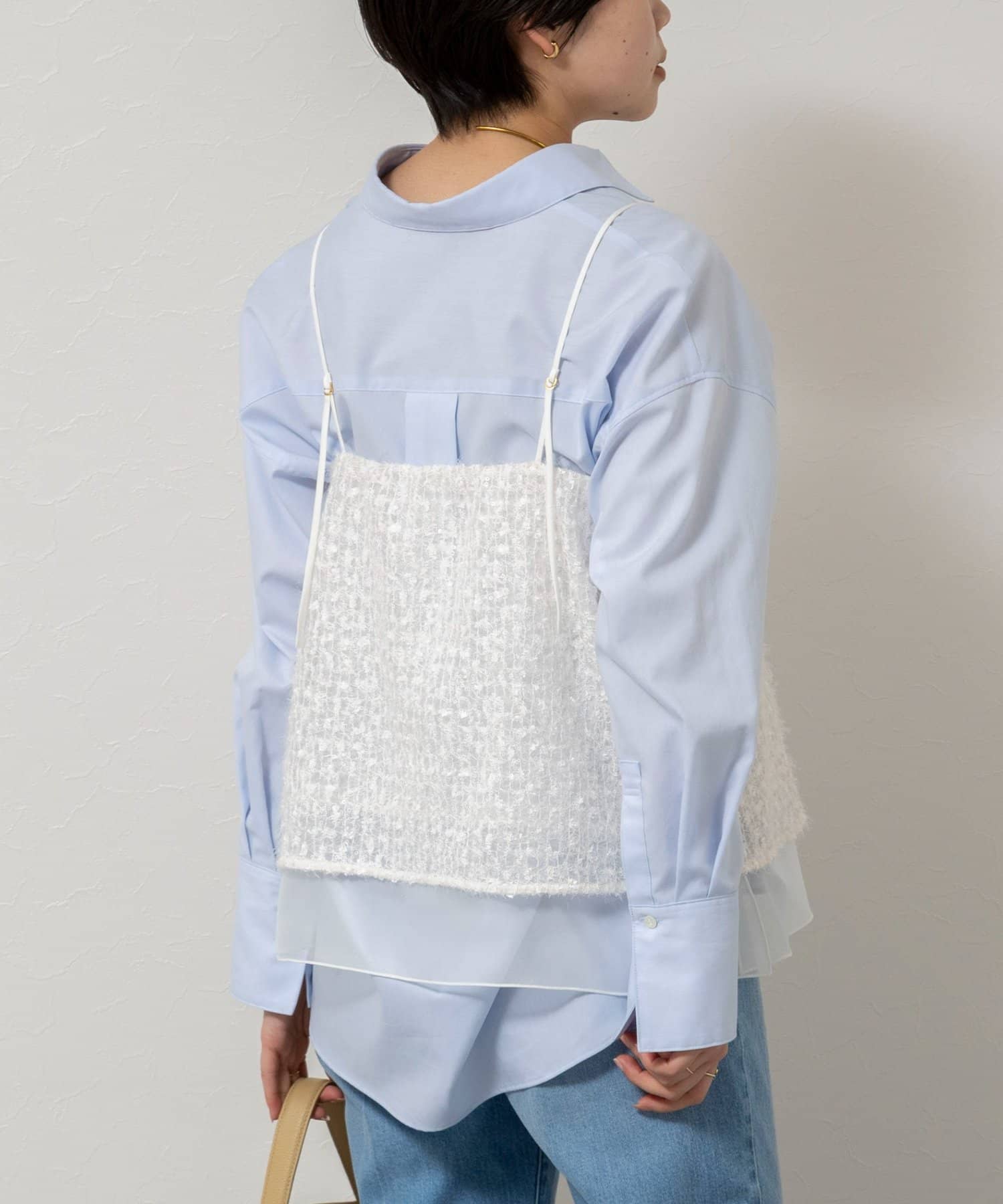 ウォッシャブルフェザースパンコールチュールキャミブラウス